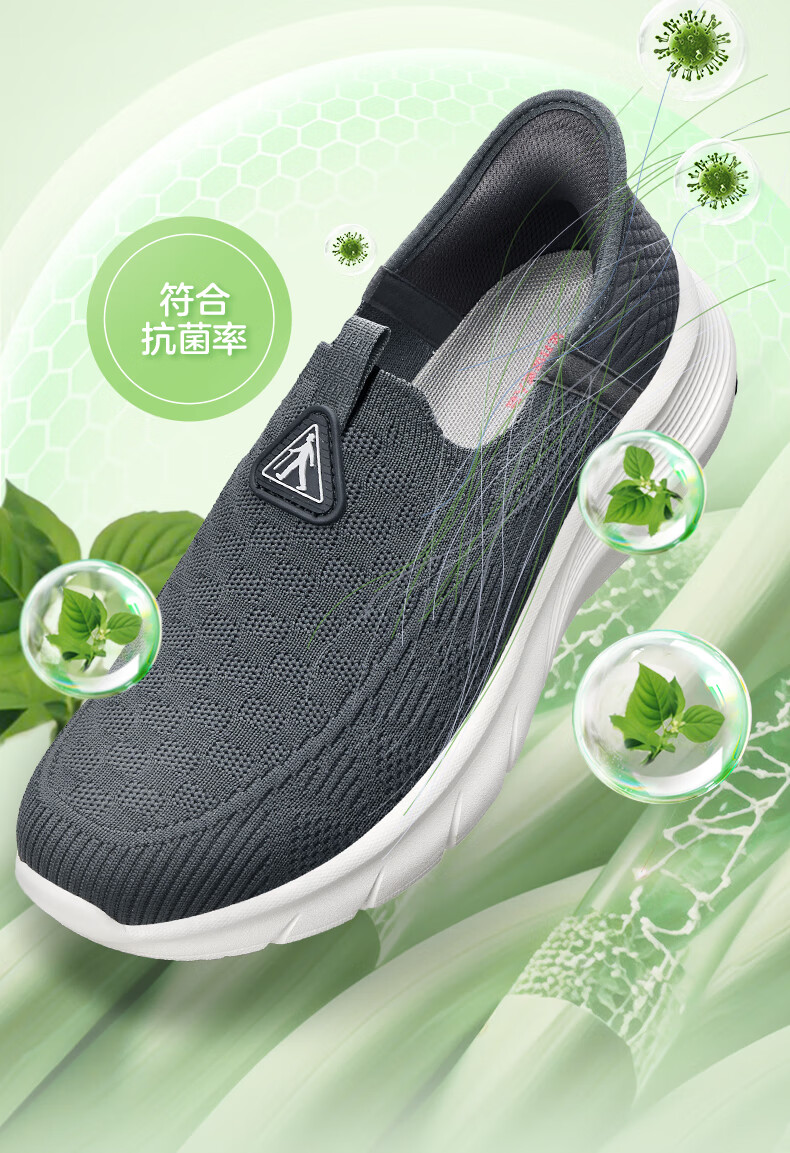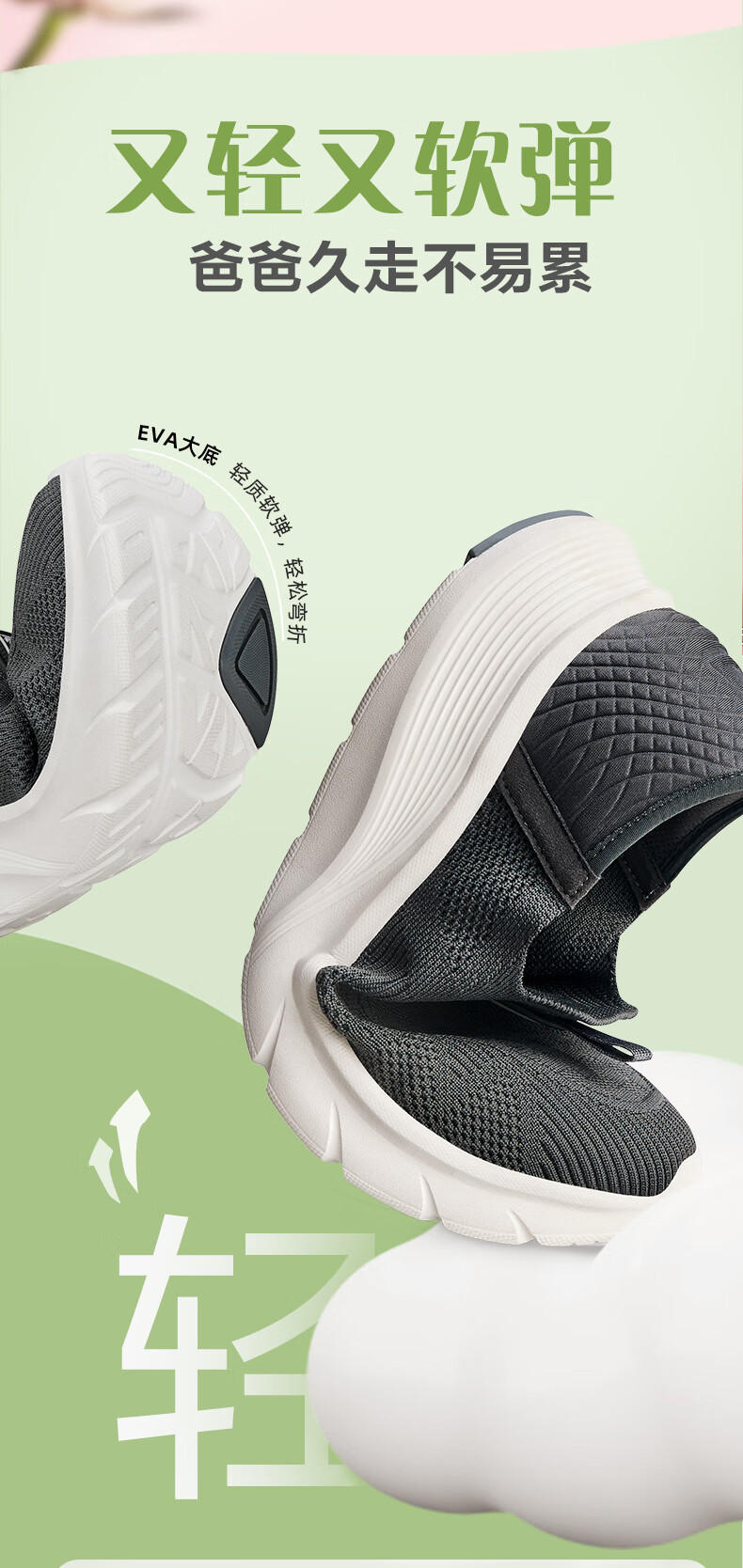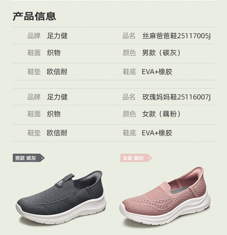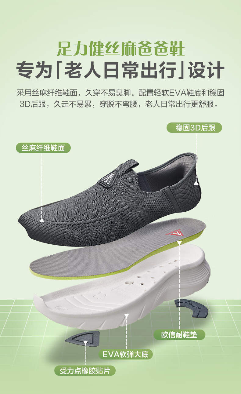足力健老人鞋一脚蹬中老年轻便休闲鞋丝麻爸爸鞋25117005J 碳灰-42
