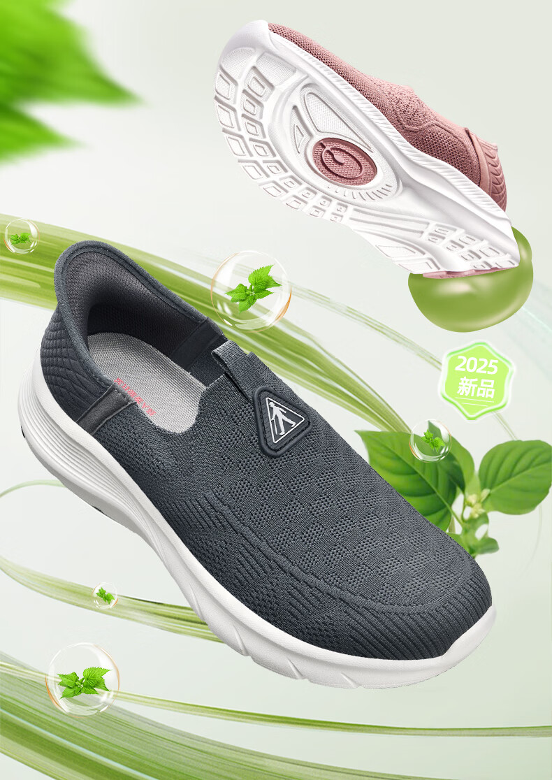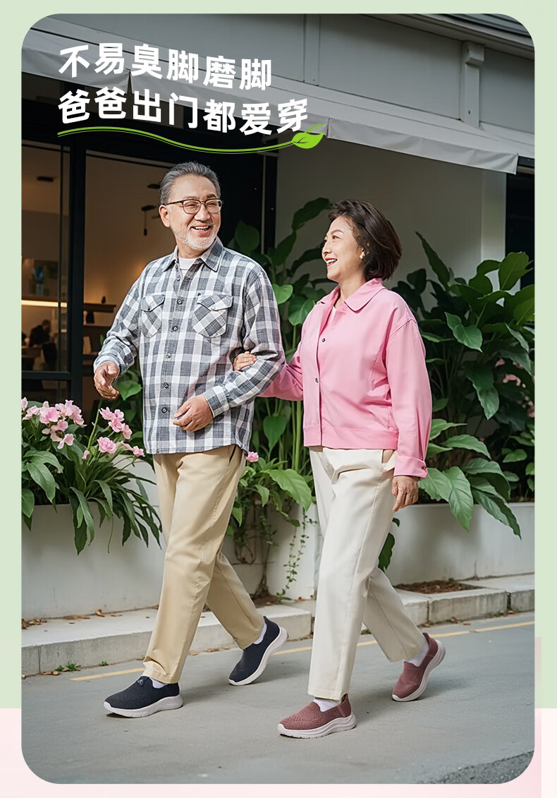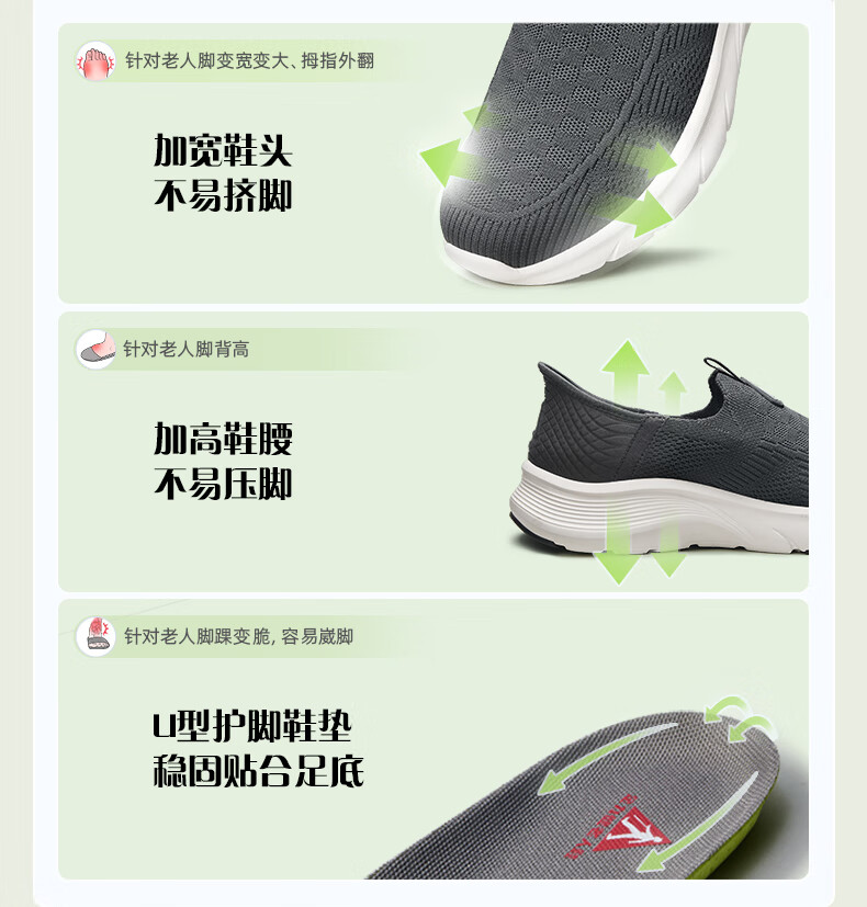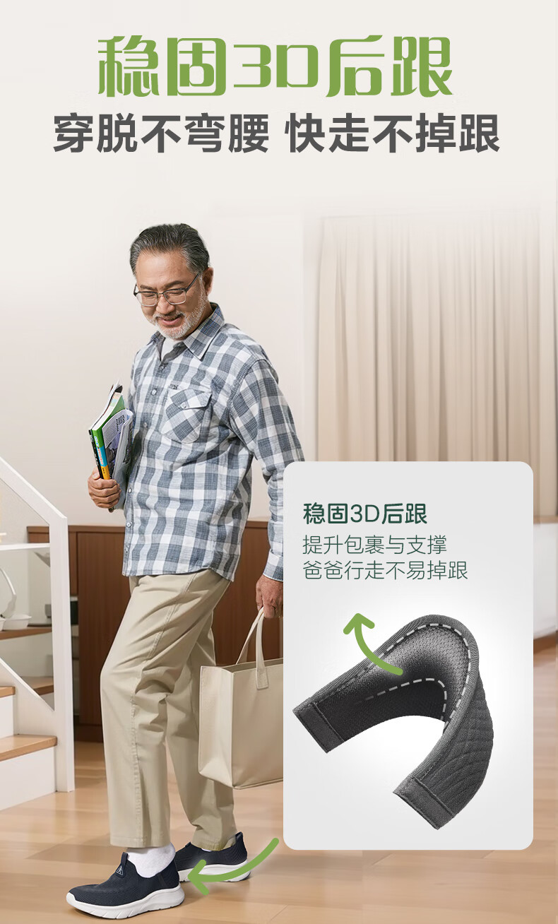 足力健老人鞋一脚蹬中老年轻便休闲鞋丝麻爸爸鞋25117005J 碳灰-42