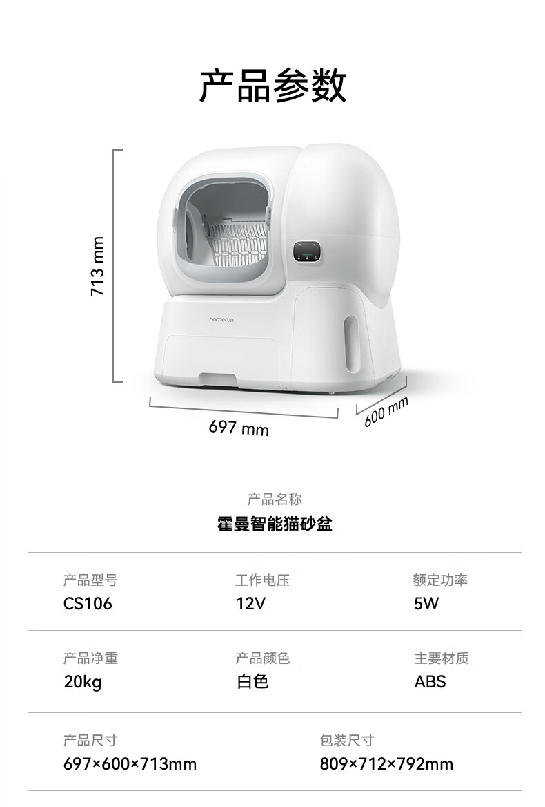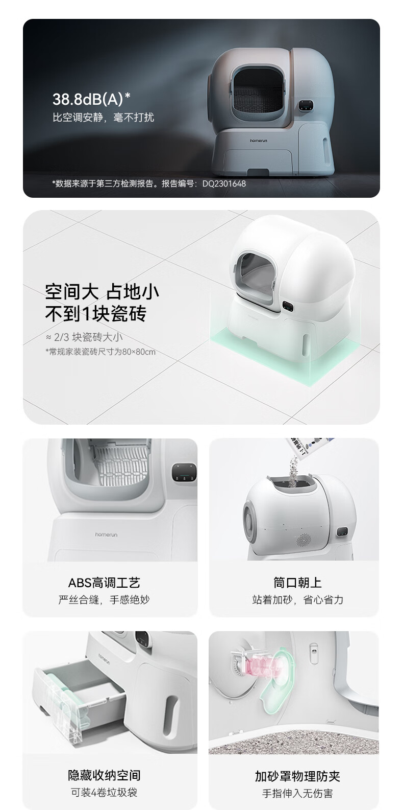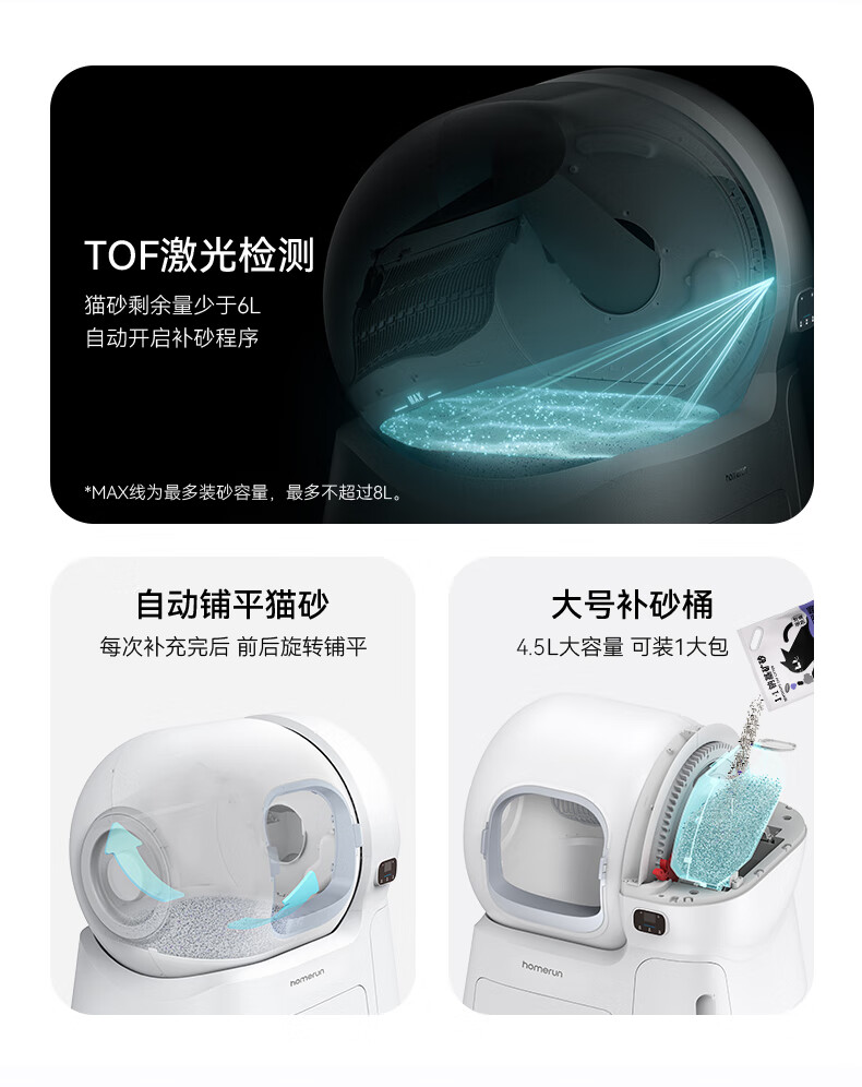 霍曼(Homerun)智能自动猫砂盆猫厕所全封闭自动铲屎机一键补砂清砂特大号
