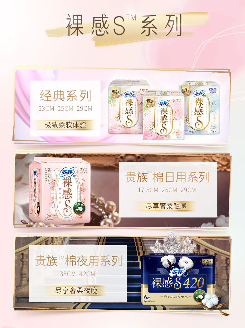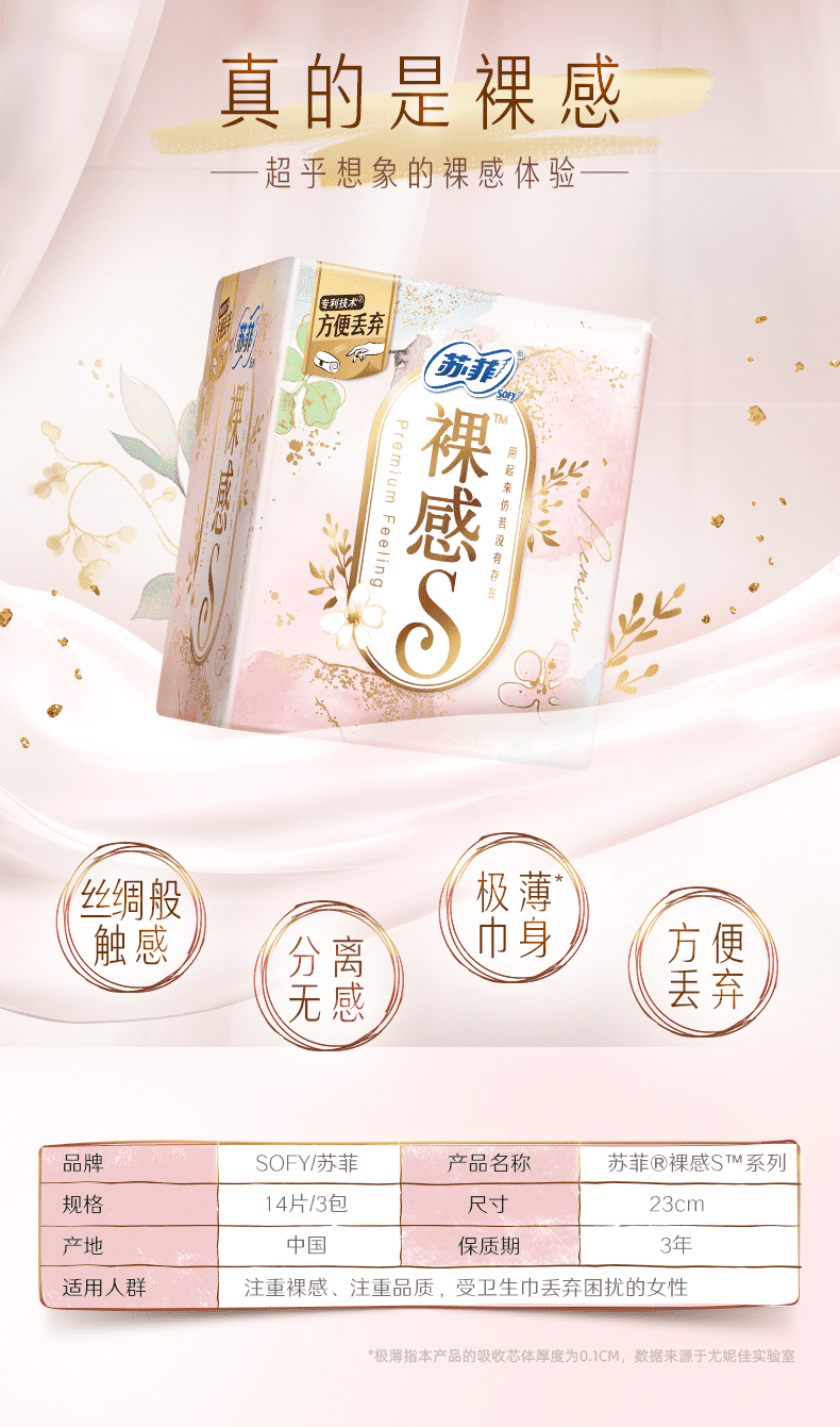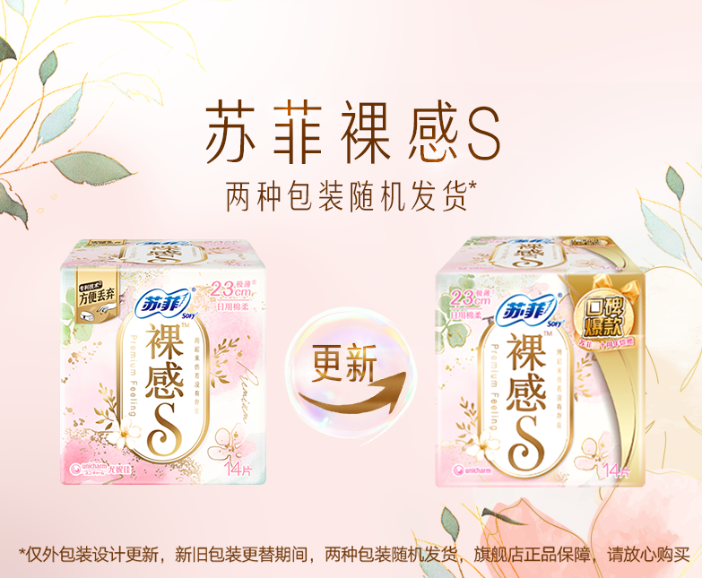 苏菲卫生巾裸感S极薄230/290日用夜用无感姨妈巾官方旗舰店 裸感s230 28片+250 2片【爆款】