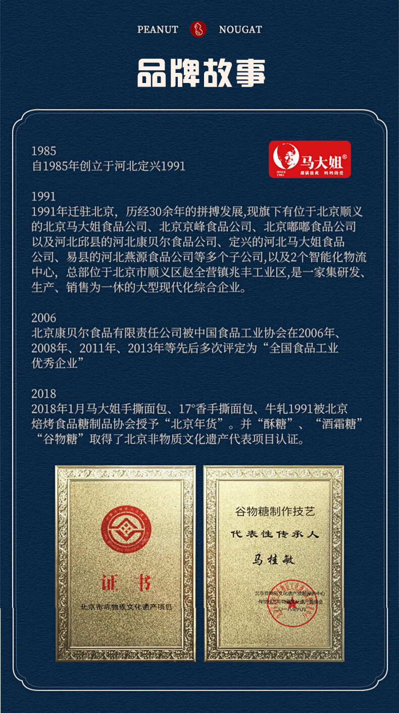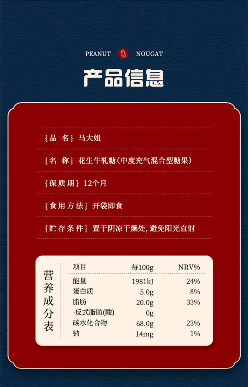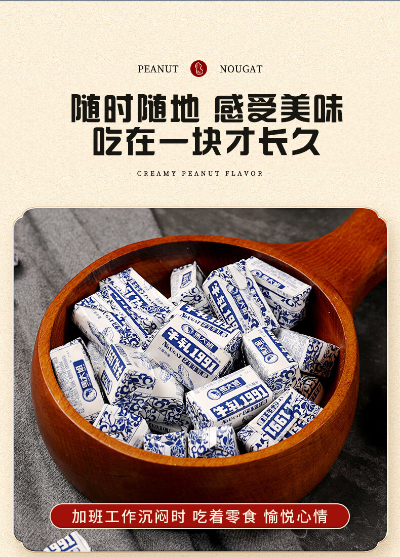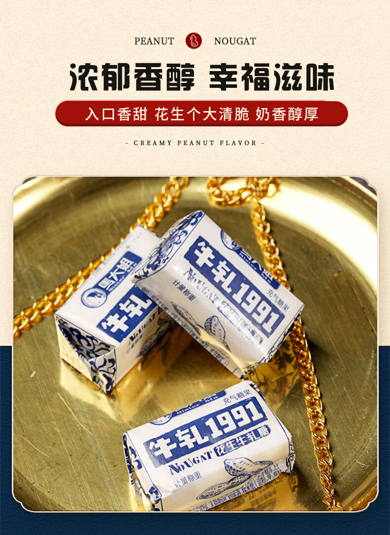 马大姐 花生牛轧糖 518g约58颗 喜糖 老式硬牛轧 北京特产休闲糖果