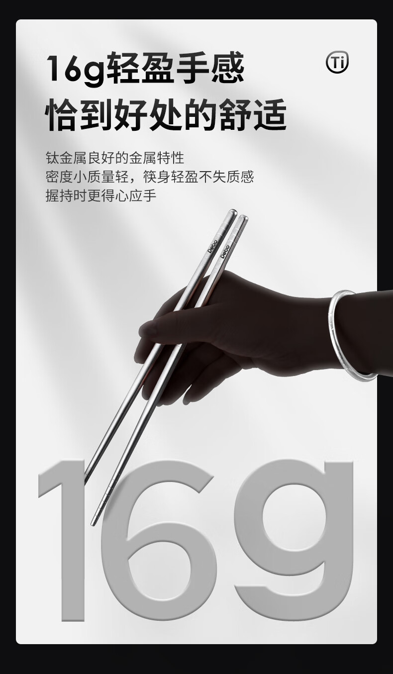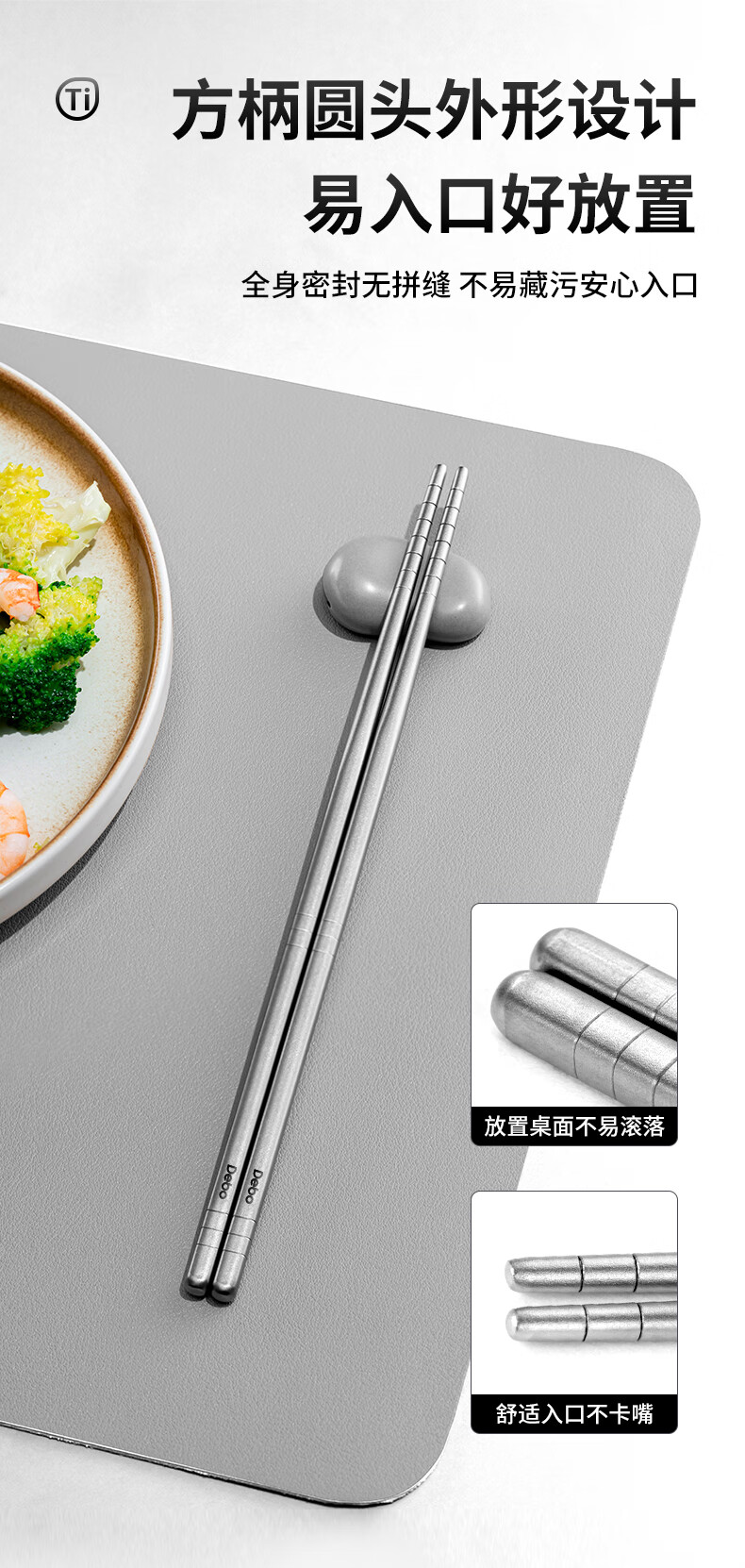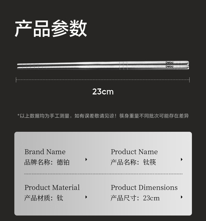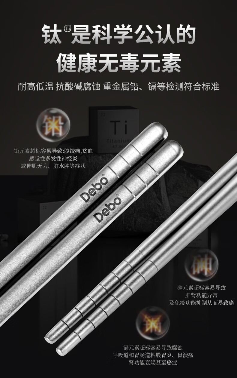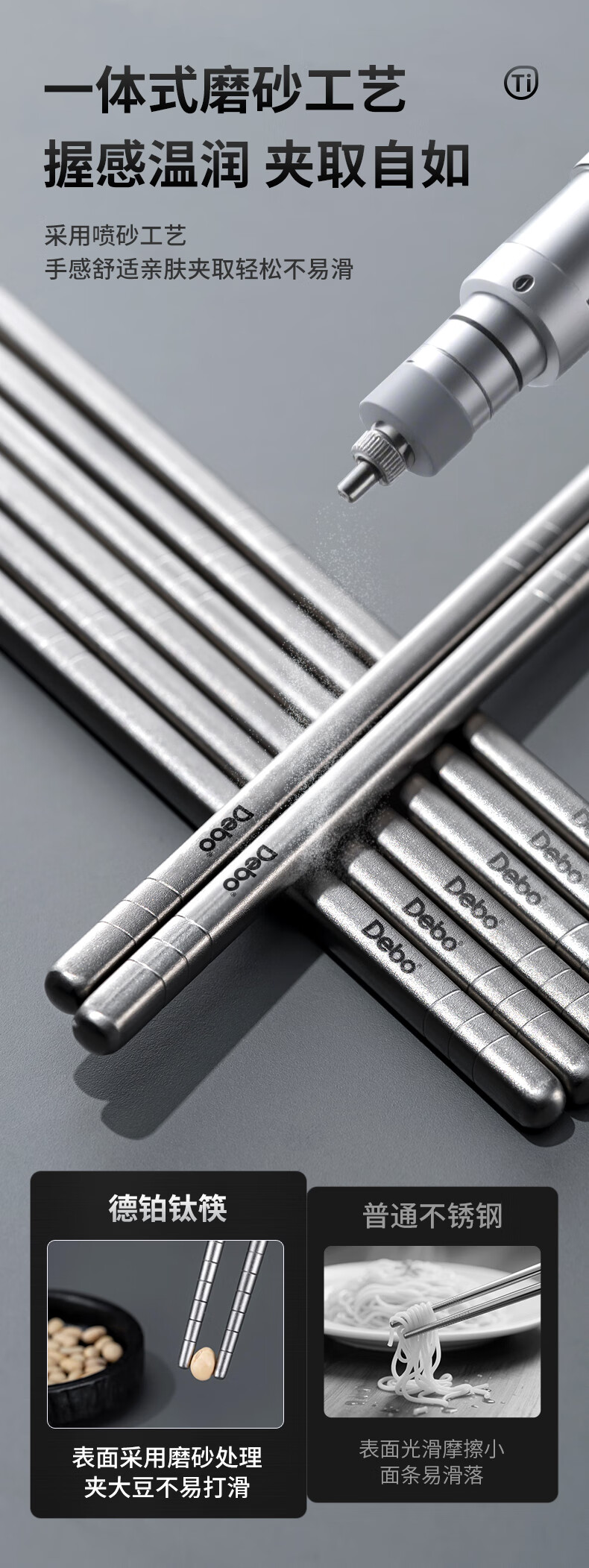 Debo德铂100%纯钛筷子家用高档分餐筷抗菌防霉磨砂防滑一人一筷专用 100%纯钛筷子1双