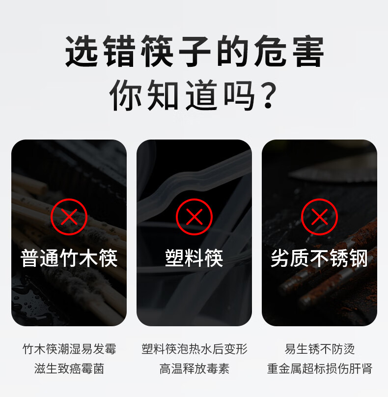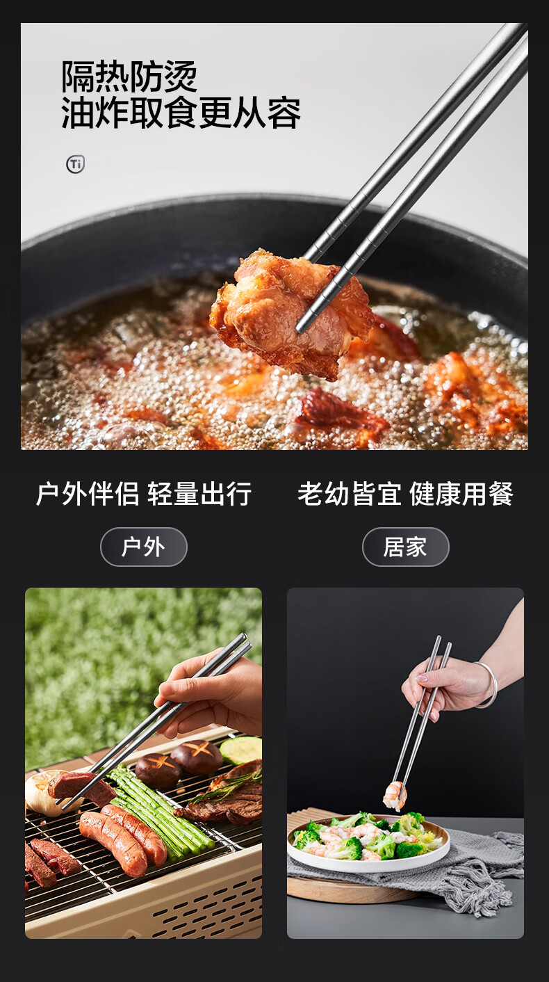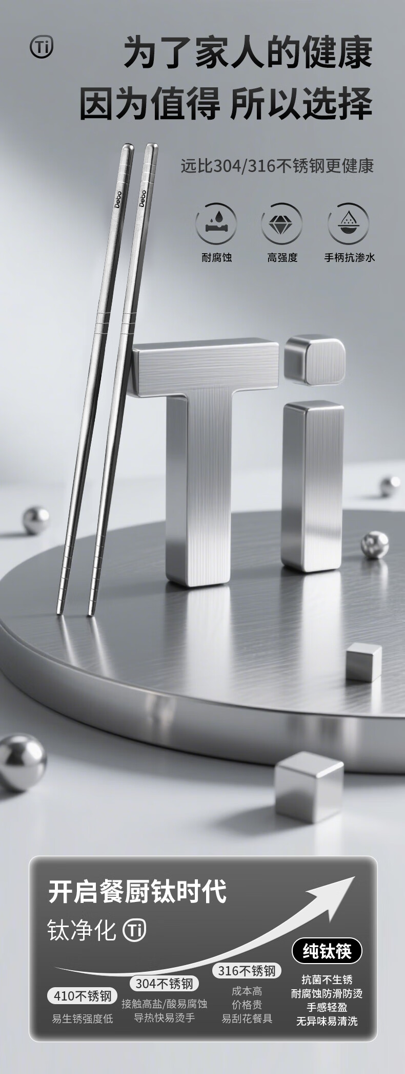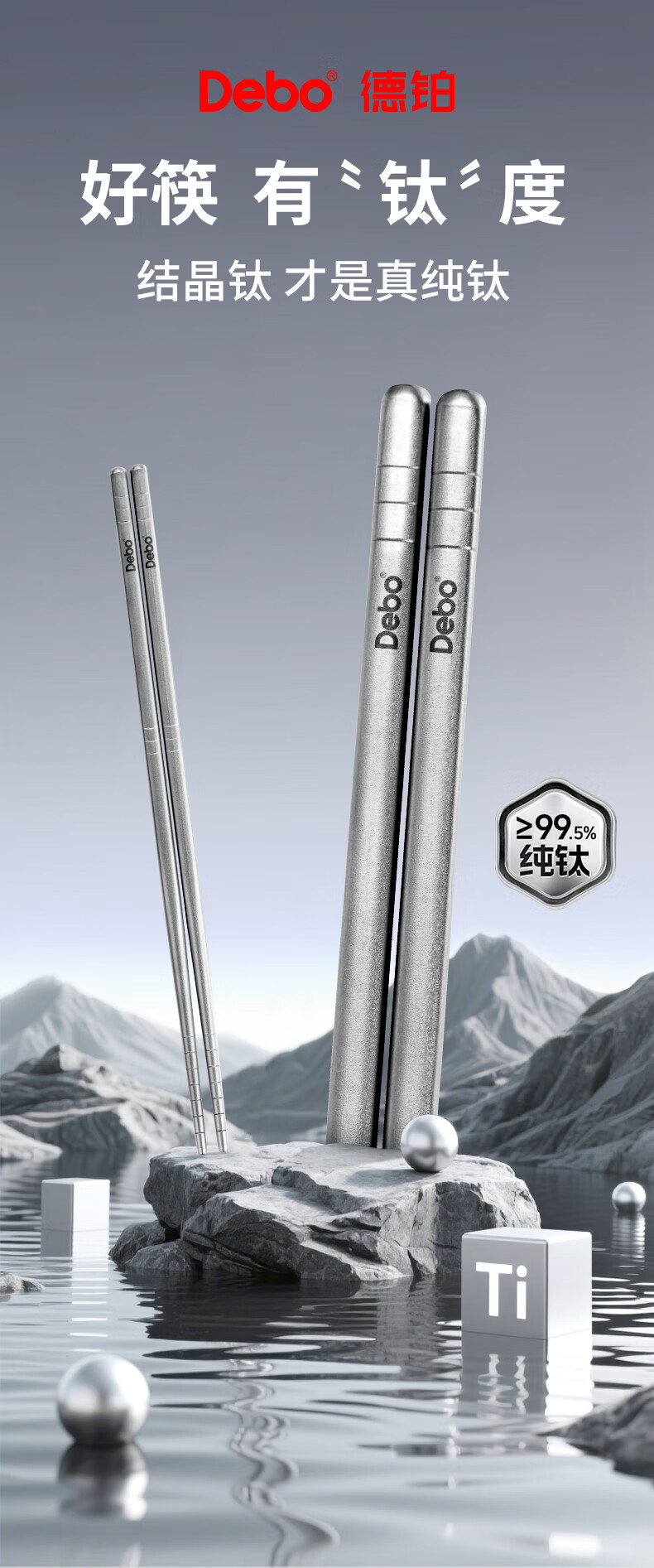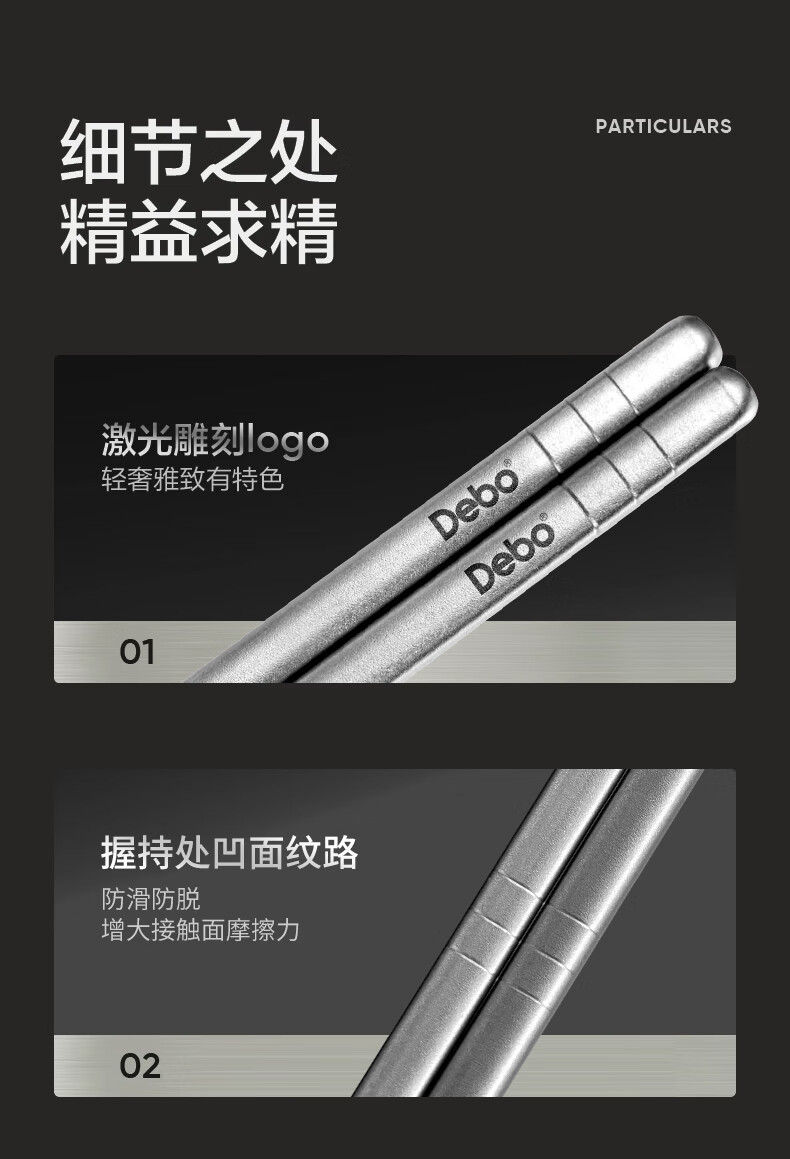 Debo德铂100%纯钛筷子家用高档分餐筷抗菌防霉磨砂防滑一人一筷专用 100%纯钛筷子1双
