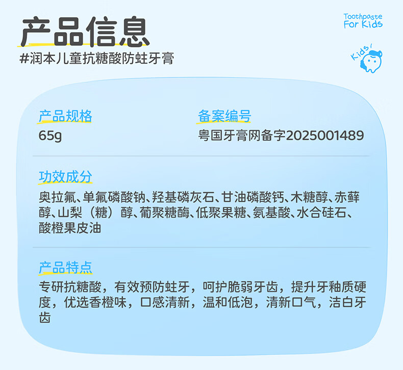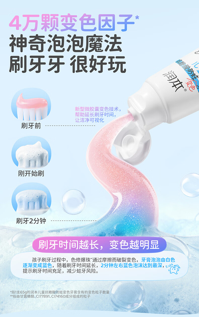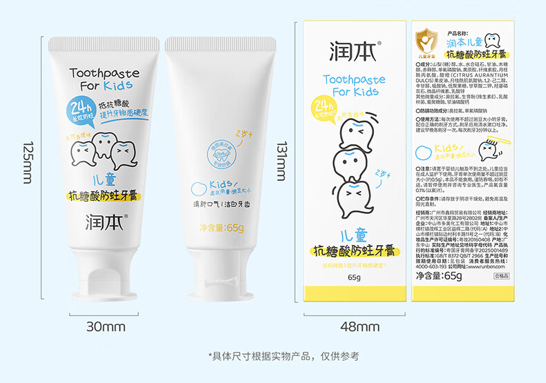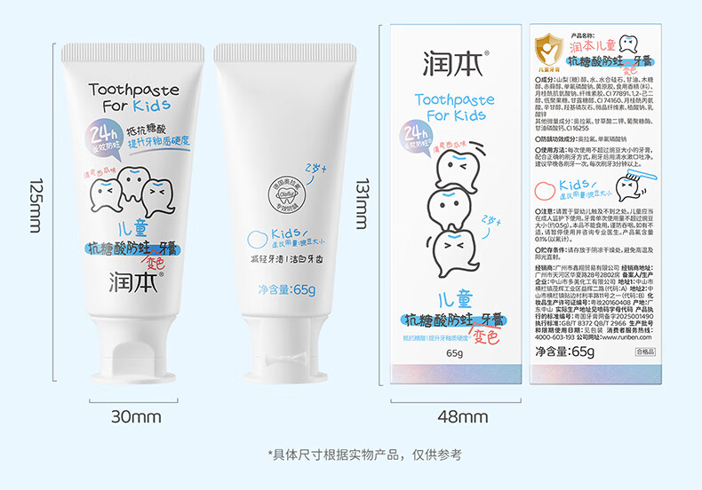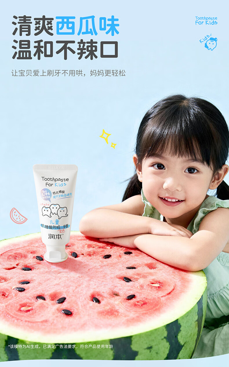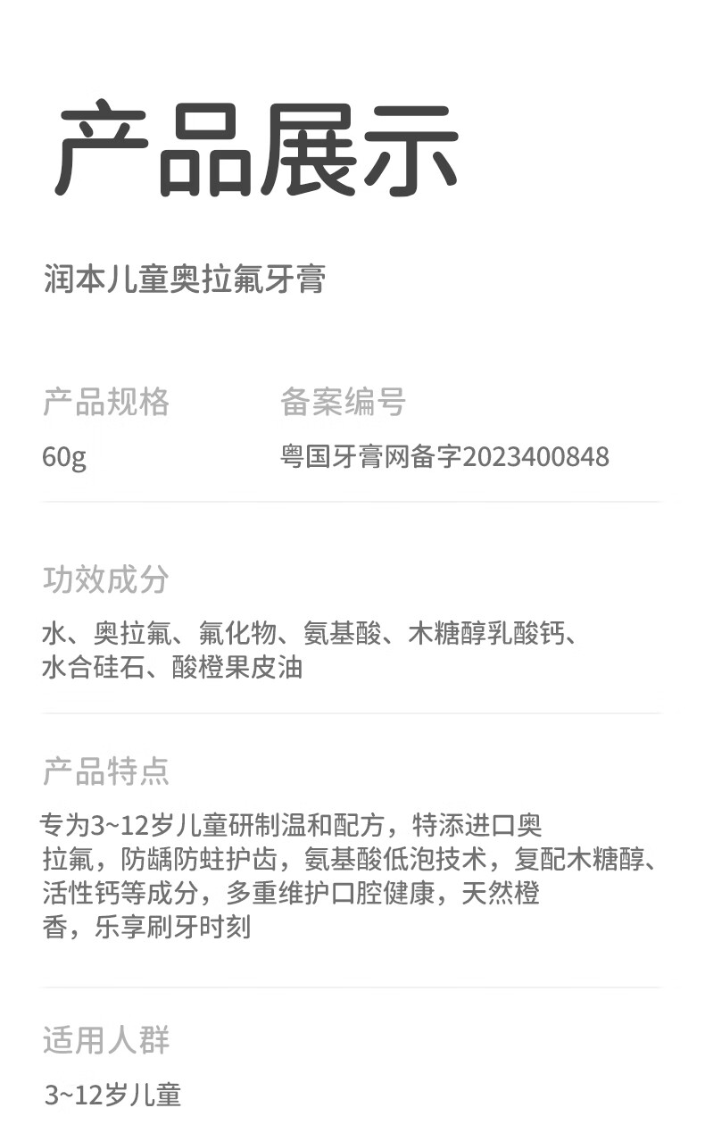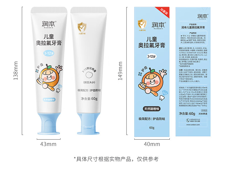 润本(RUNBEN)儿童牙膏3到6到12岁婴幼儿含氟换牙期防蛀奥拉氟牙膏 【3-12岁】 60g 2支 含氟防蛀儿童牙膏