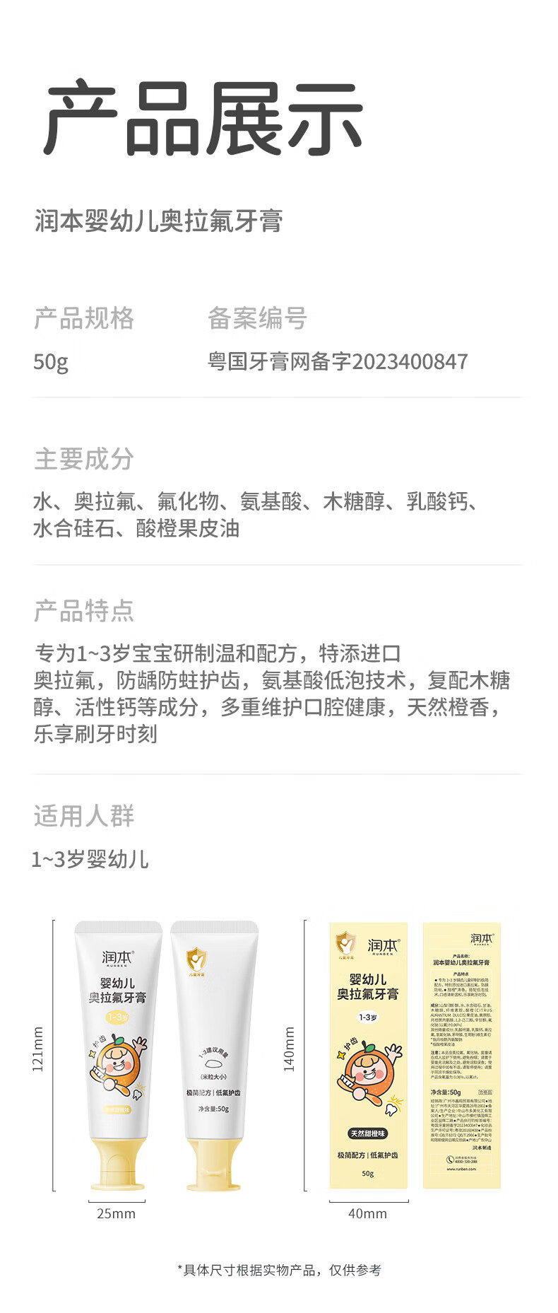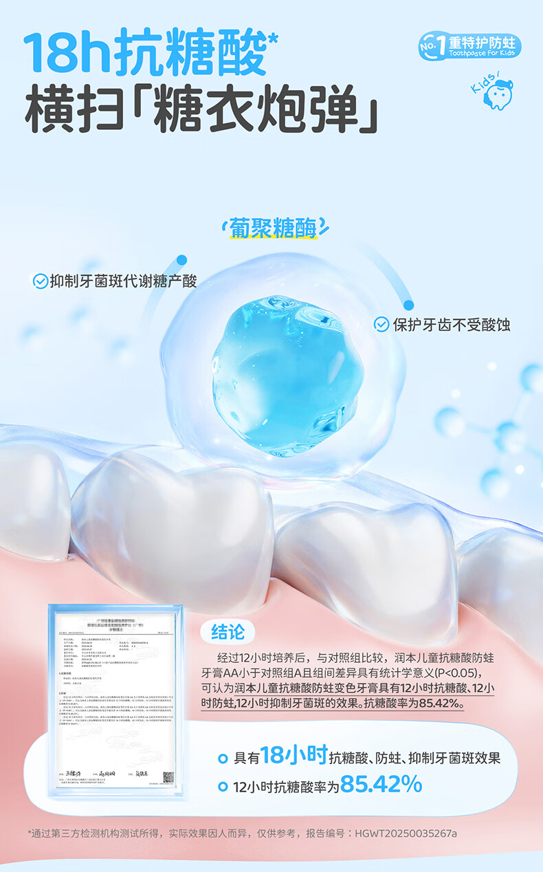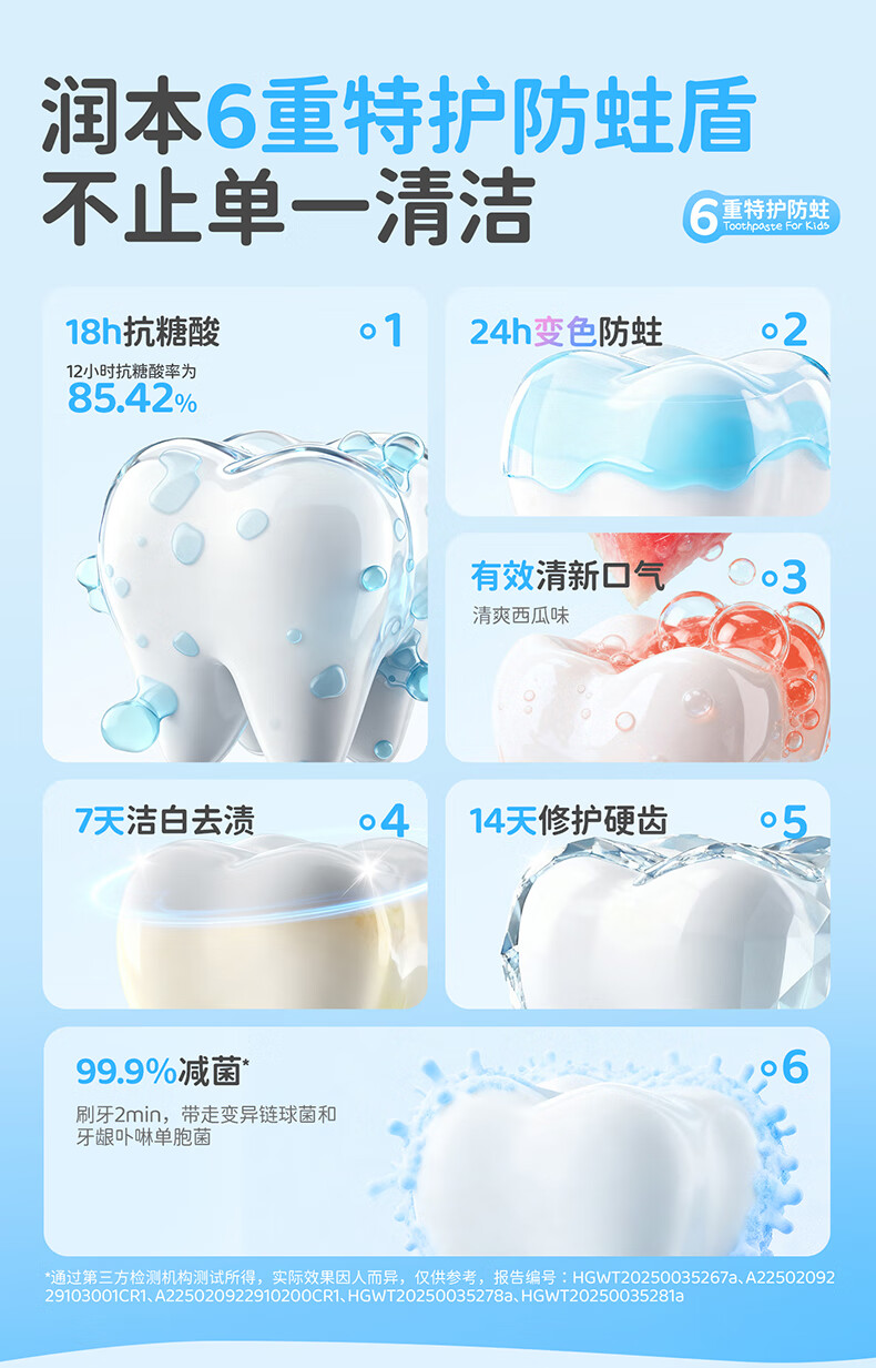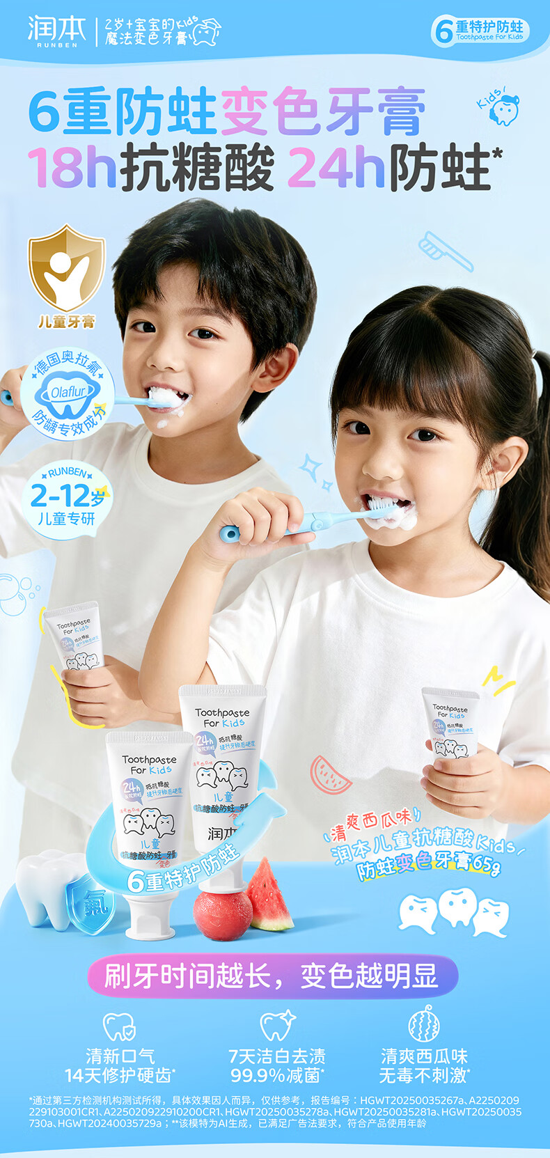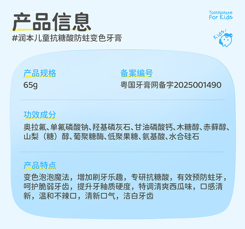 润本(RUNBEN)儿童牙膏3到6到12岁婴幼儿含氟换牙期防蛀奥拉氟牙膏 【3-12岁】 60g 2支 含氟防蛀儿童牙膏