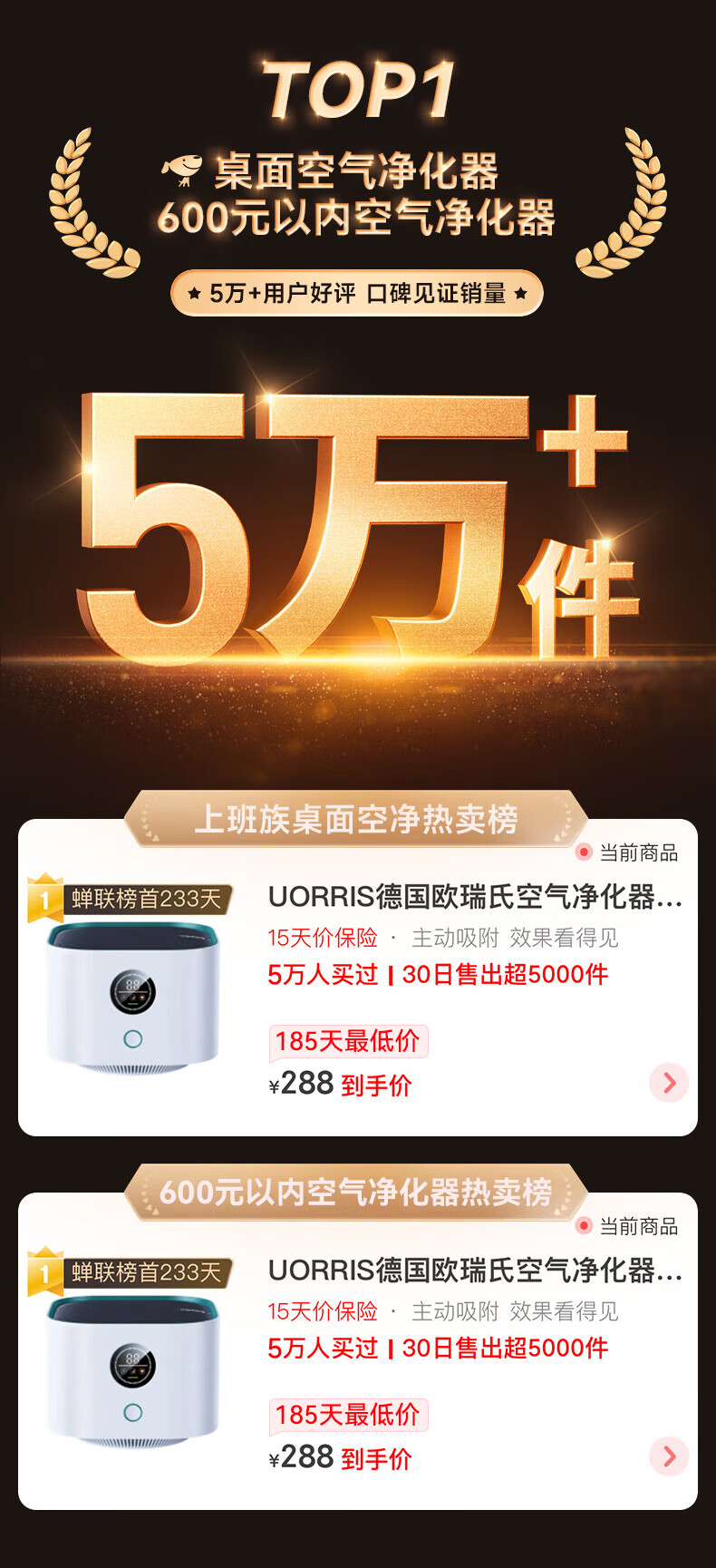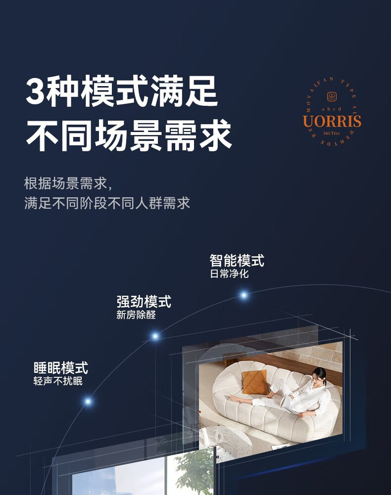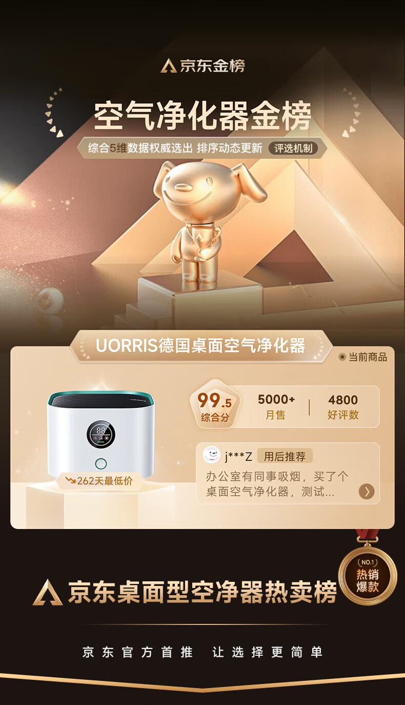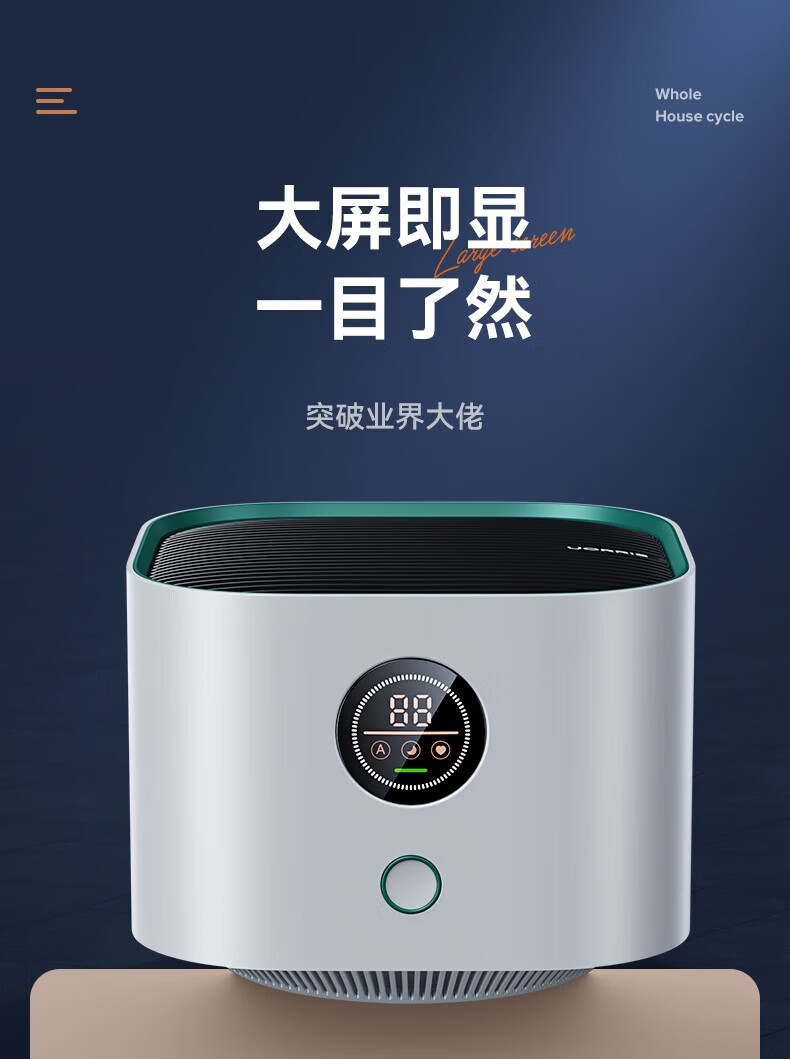 UORRIS德国欧瑞氏空气净化器除甲醛除烟味新房家用桌面办公室小型负离子除异味过敏原鼻炎哮喘花粉神器 清新白 【含耗材丨除醛率99%】 实时检测丨主动捕捉丨效果可视化