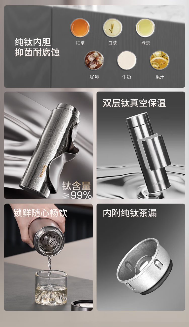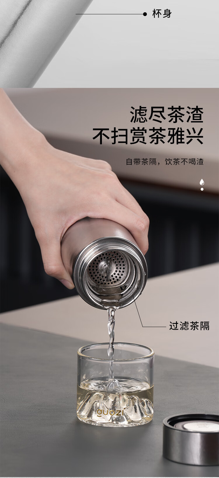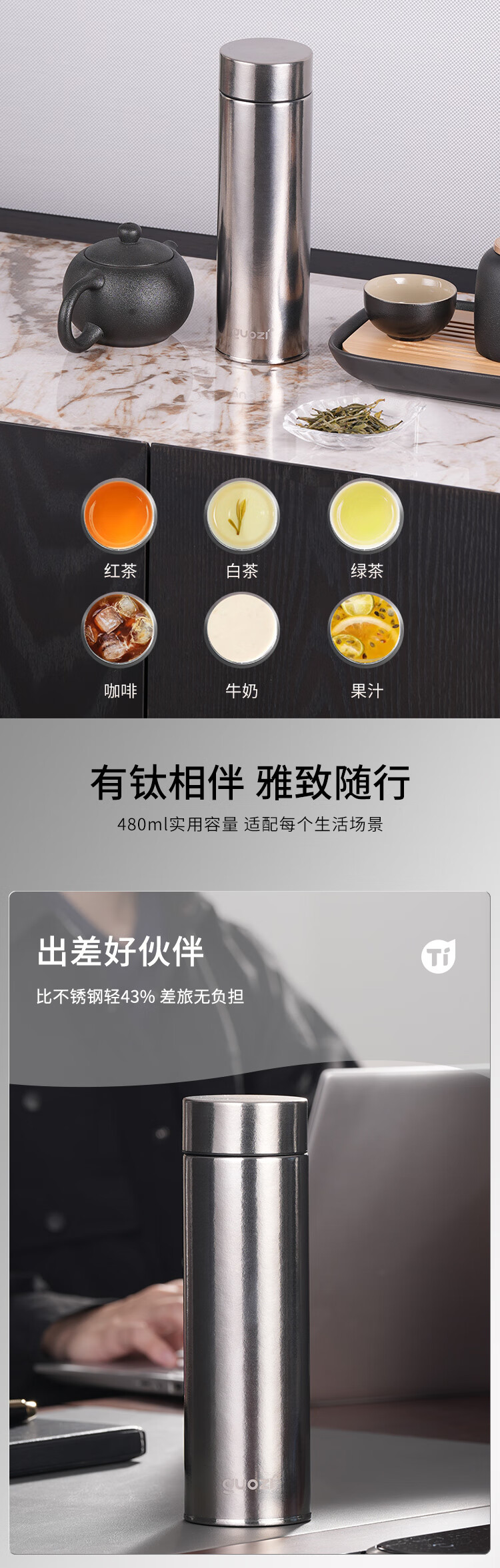 果兹(GUOZI)内外纯钛保温杯商务钛杯茶水分离车载高端商务男士焖泡茶杯480ml