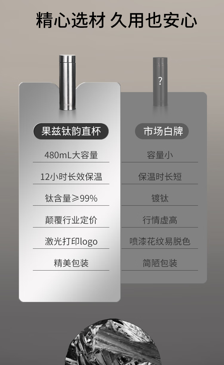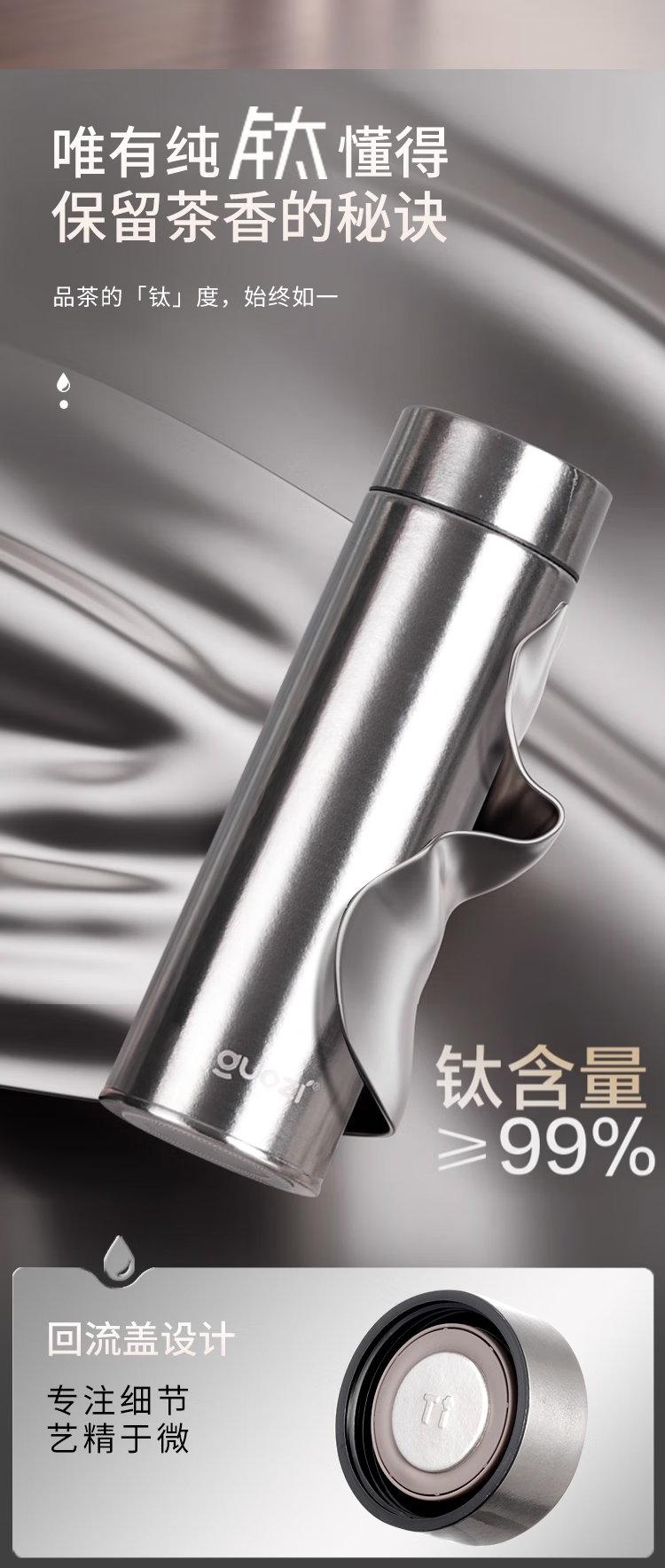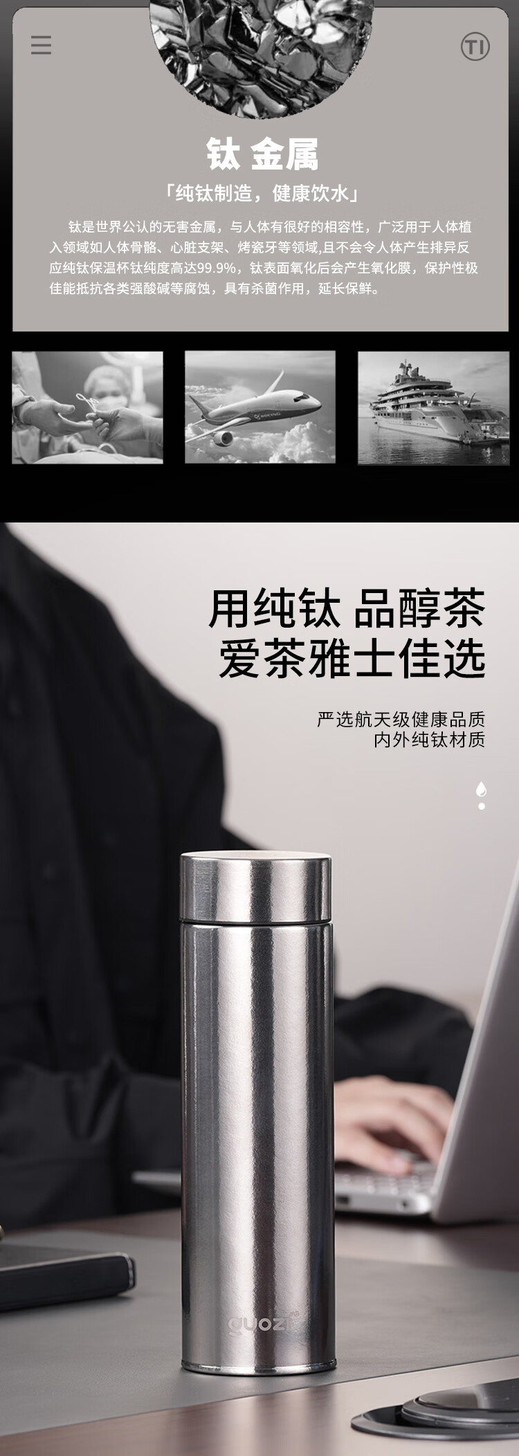 果兹(GUOZI)内外纯钛保温杯商务钛杯茶水分离车载高端商务男士焖泡茶杯480ml