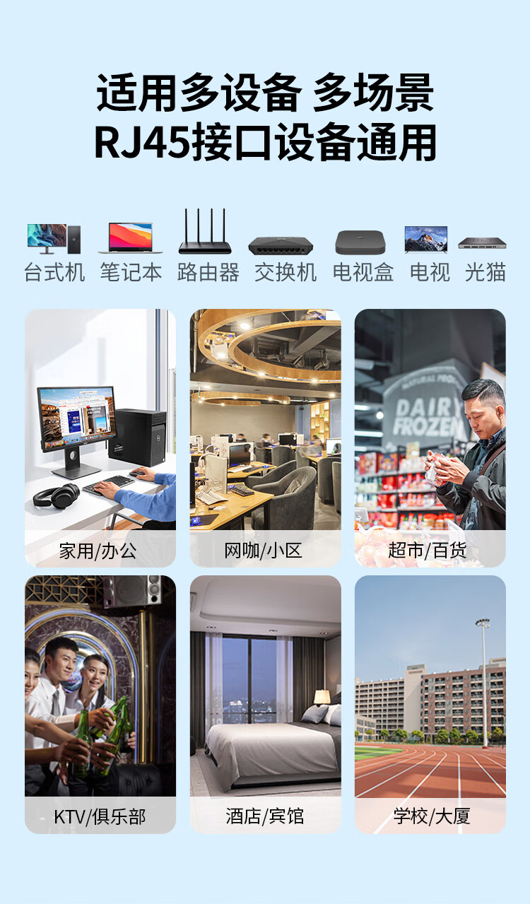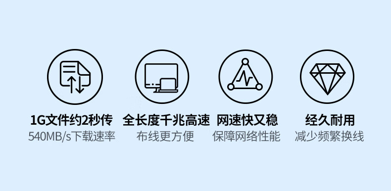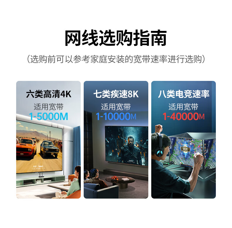 绿联 六类网线 千兆高速网络宽带线 CAT6类家用电脑笔记本路由器双接头线 八芯成品跳线灰白1米20174