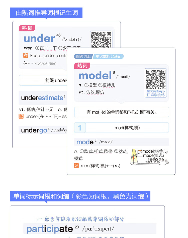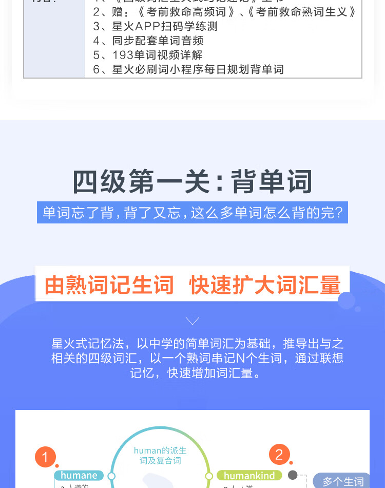 星火英语四级词汇书四级单词书乱序版大学英语四六级词汇单词书cet4大学英语四级备考资料2025年12月考试英语4级英语词汇真题试卷星火式巧记速记词根联想记忆法 四级词汇巧记速记【赠视频课程+小程序背词