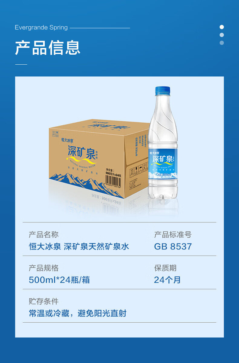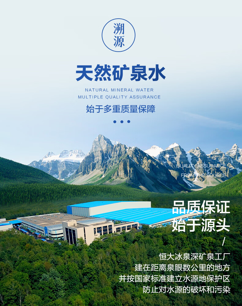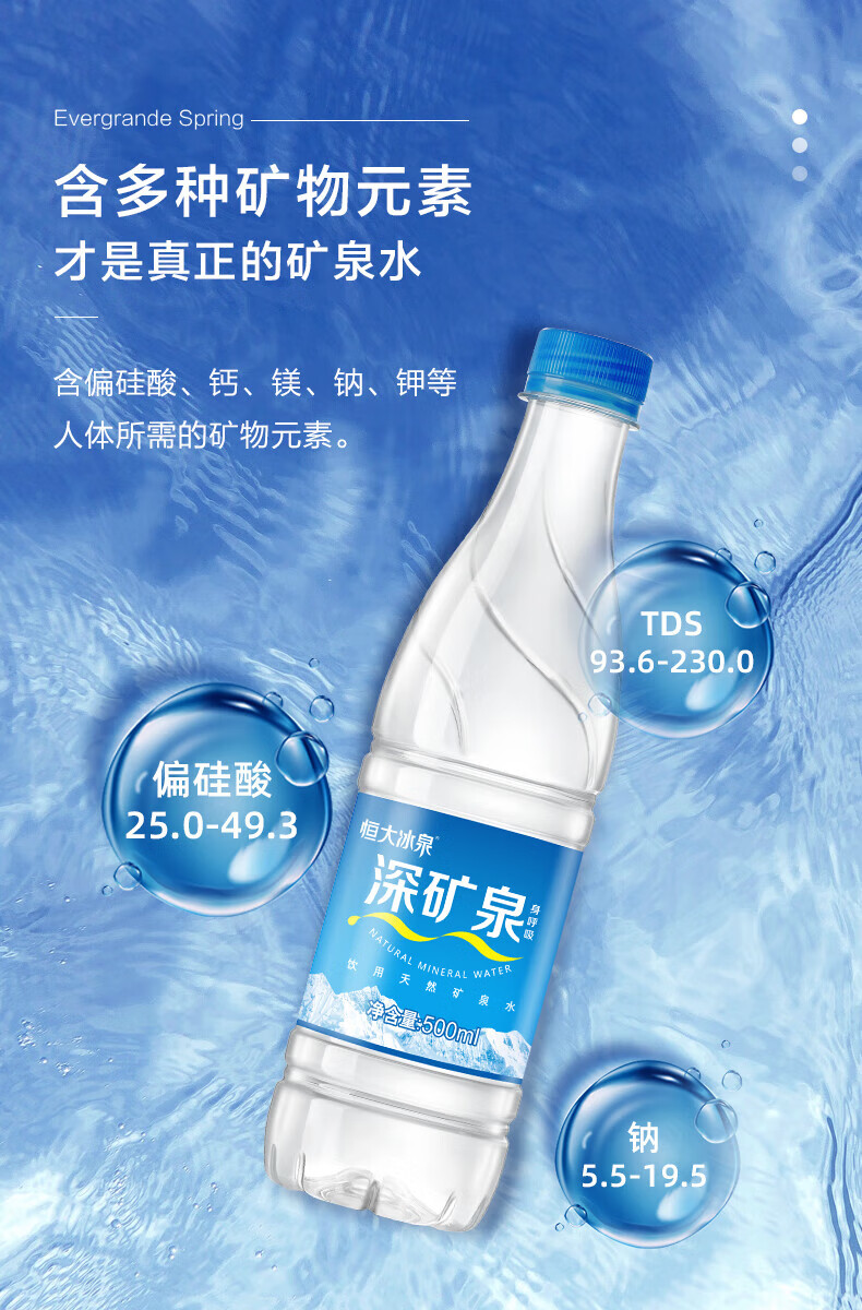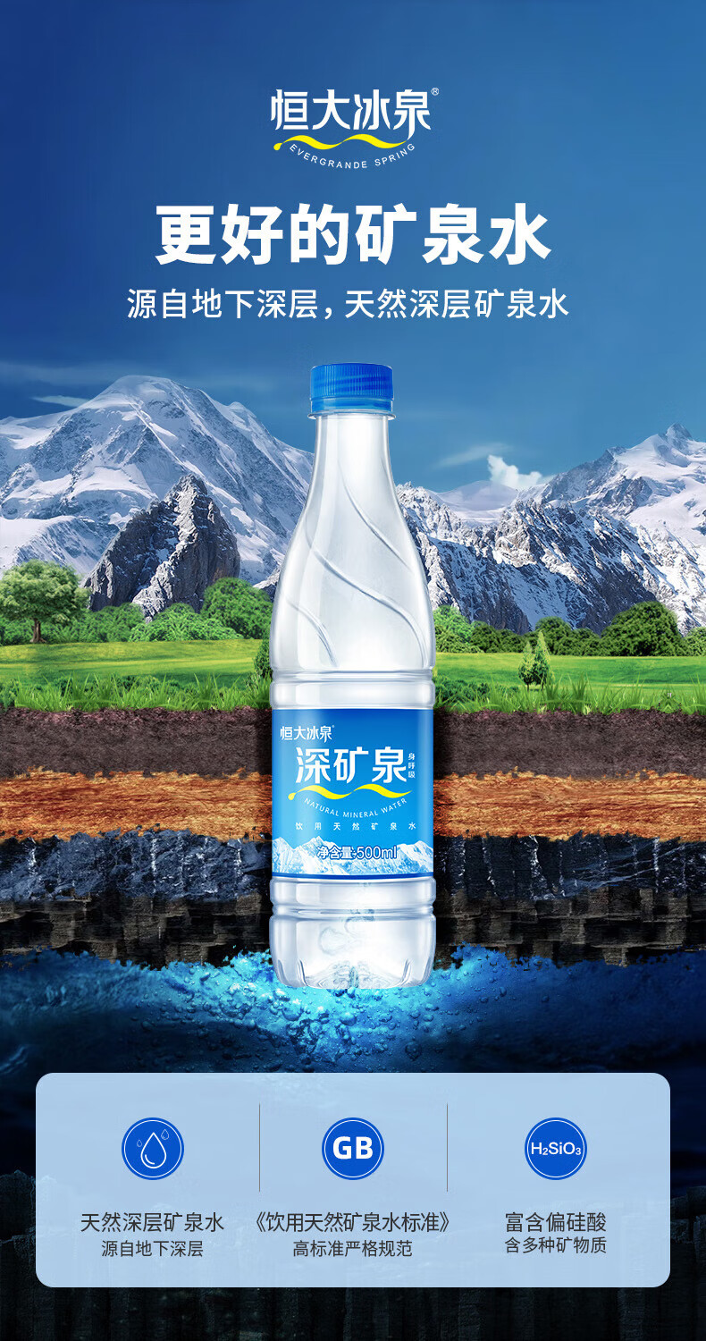 恒大冰泉长白山深矿泉天然矿泉水 家庭生活饮用水 500ML*24瓶整箱装