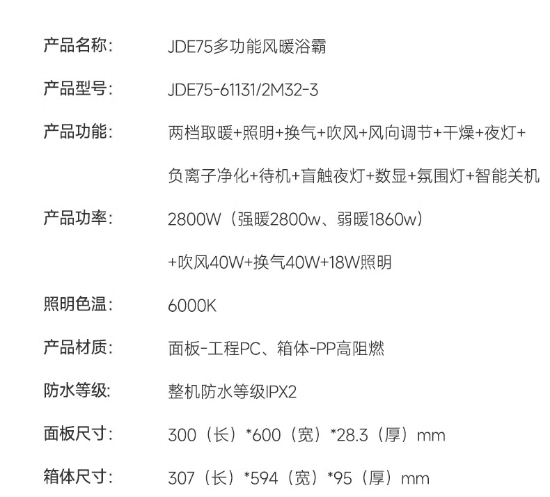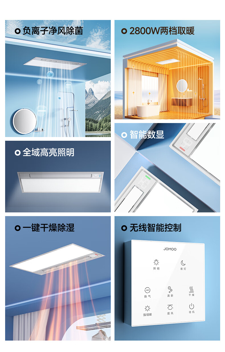 九牧(JOMOO)浴霸暖风照明排气一体集成吊顶除菌换气负离子多功能卫生间浴霸 【多功能负离子净风除菌】JDE75