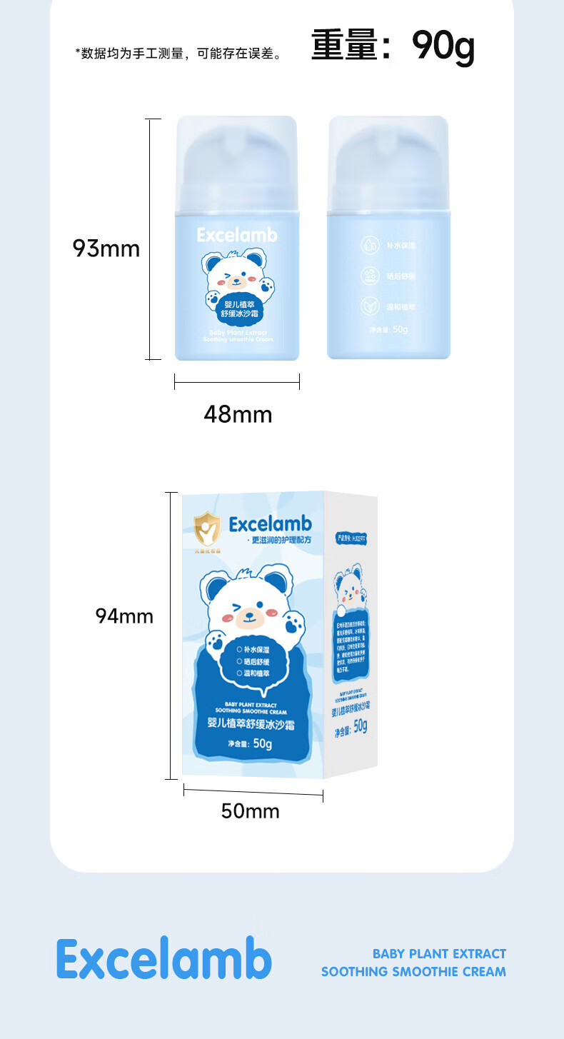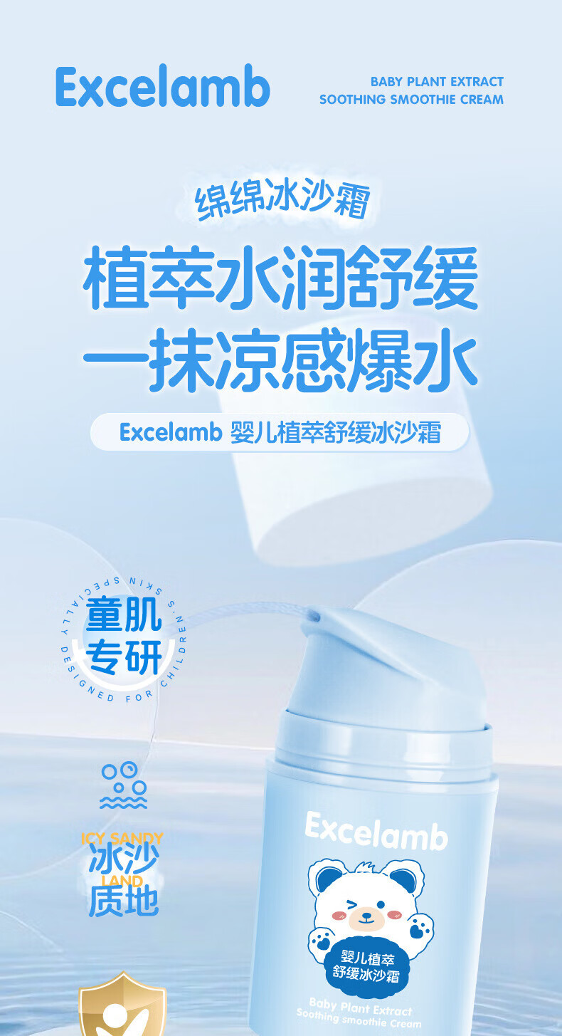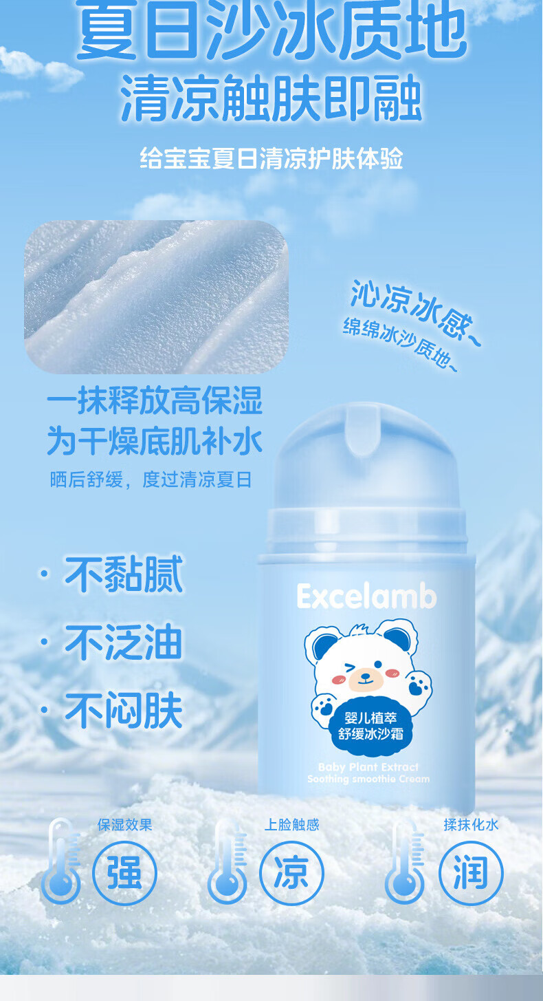 皇家婴童(excelamb)儿植萃积雪草冰沙霜舒缓保湿润肤 婴儿植萃舒缓冰沙霜