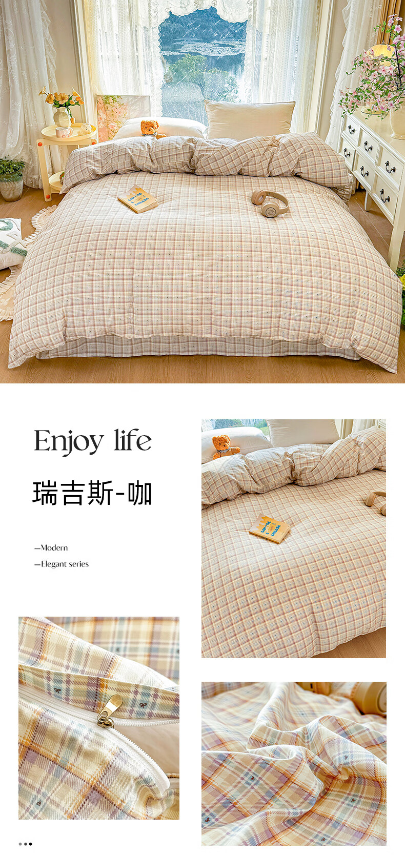 VJEA类大豆纤维被子冬被加厚保暖秋冬被单人被芯宿舍冬季棉被春秋被 熊猫-卡其拼绅士灰 150x200cm【约3斤重】春秋薄被