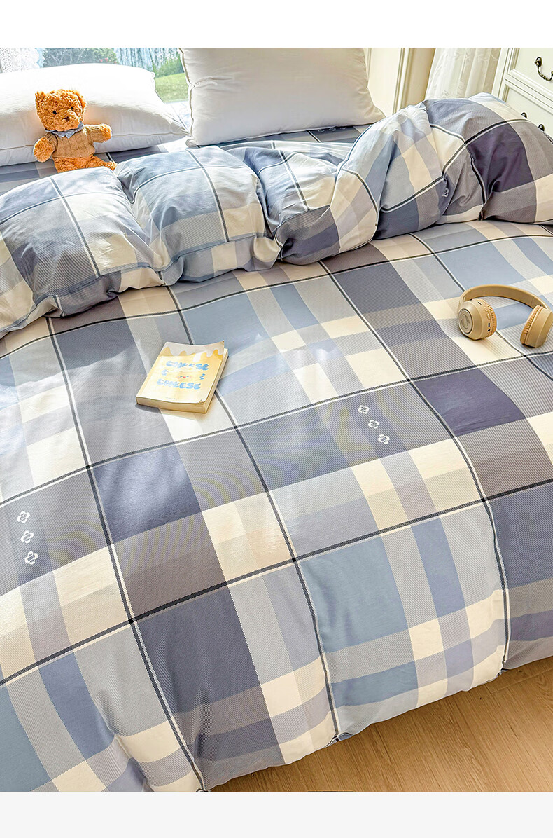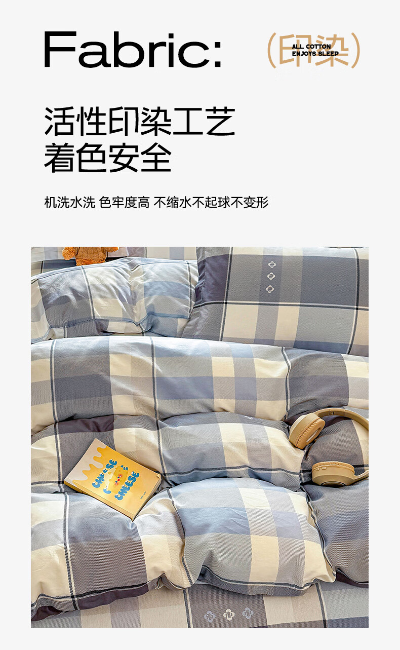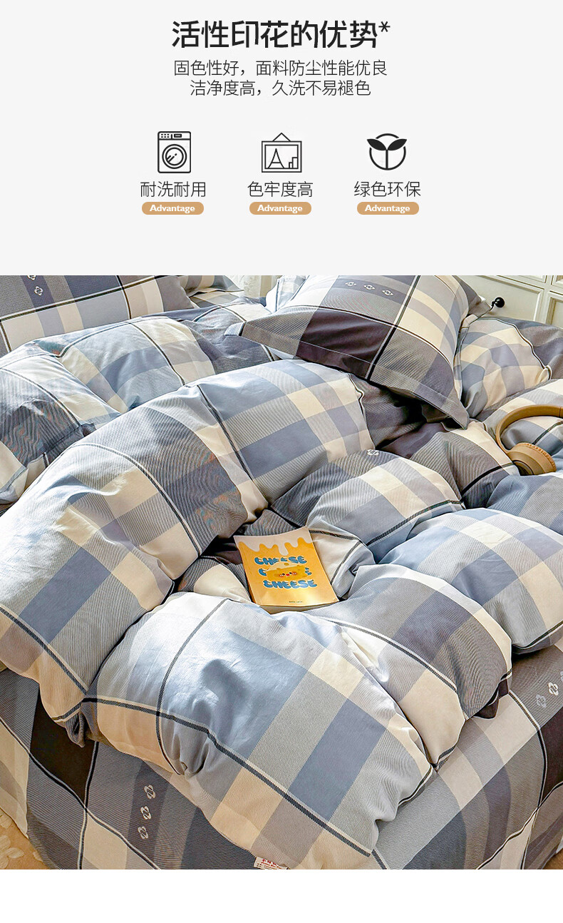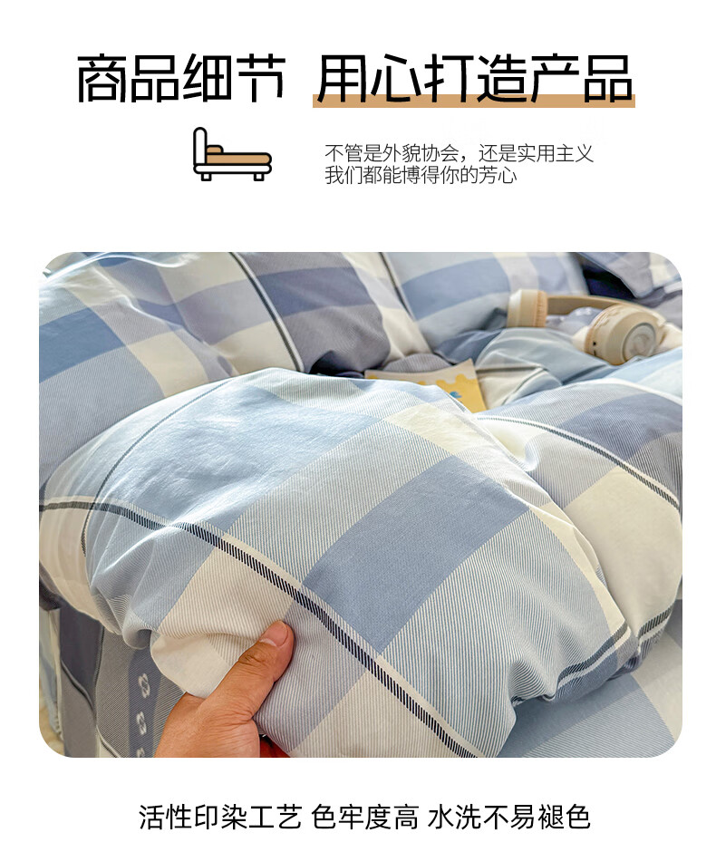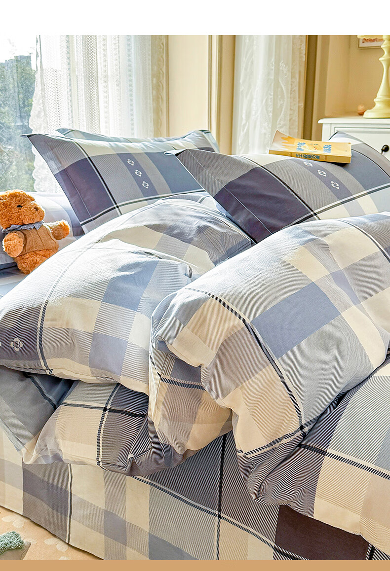 浪莎(LangSha)水洗棉被套单件150x200x230cm非全棉纯棉被罩学生宿舍单人三件套 芝士碎 单被套 150cm*200cm