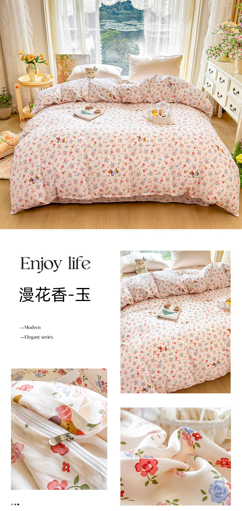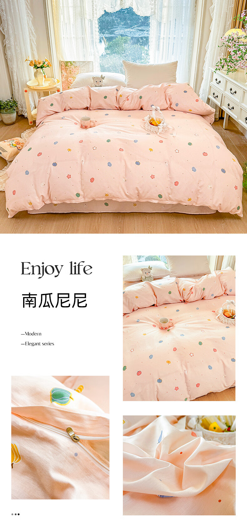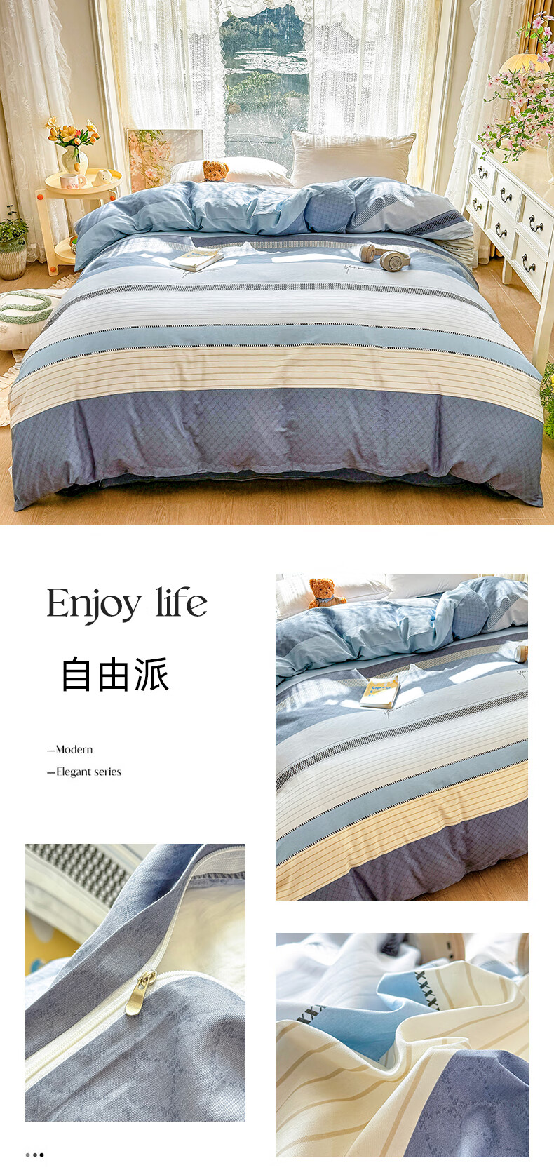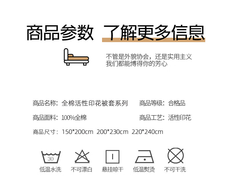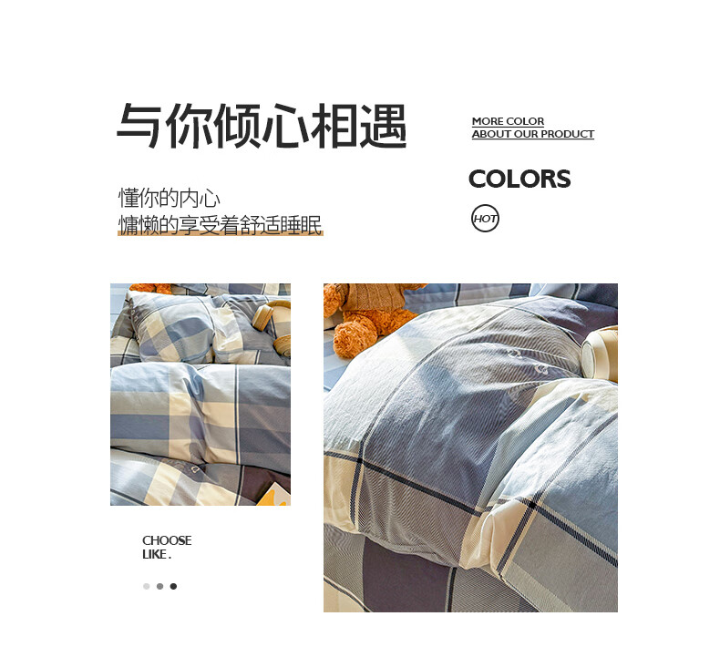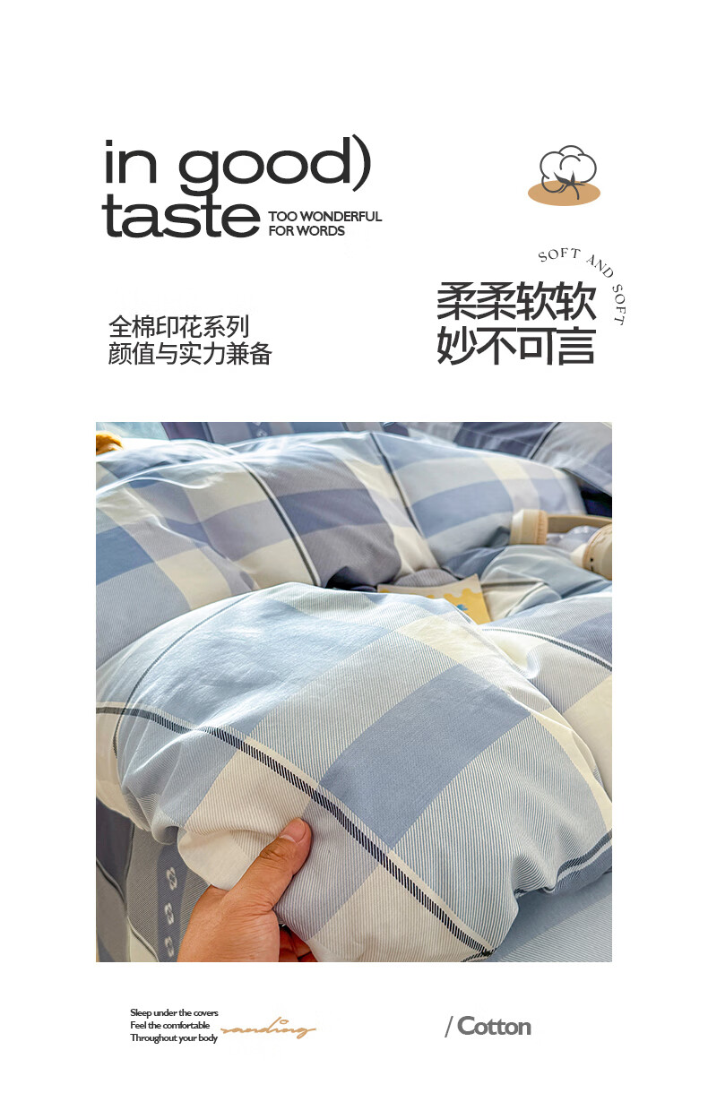 浪莎(LangSha)水洗棉被套单件150x200x230cm非全棉纯棉被罩学生宿舍单人三件套 芝士碎 单被套 150cm*200cm
