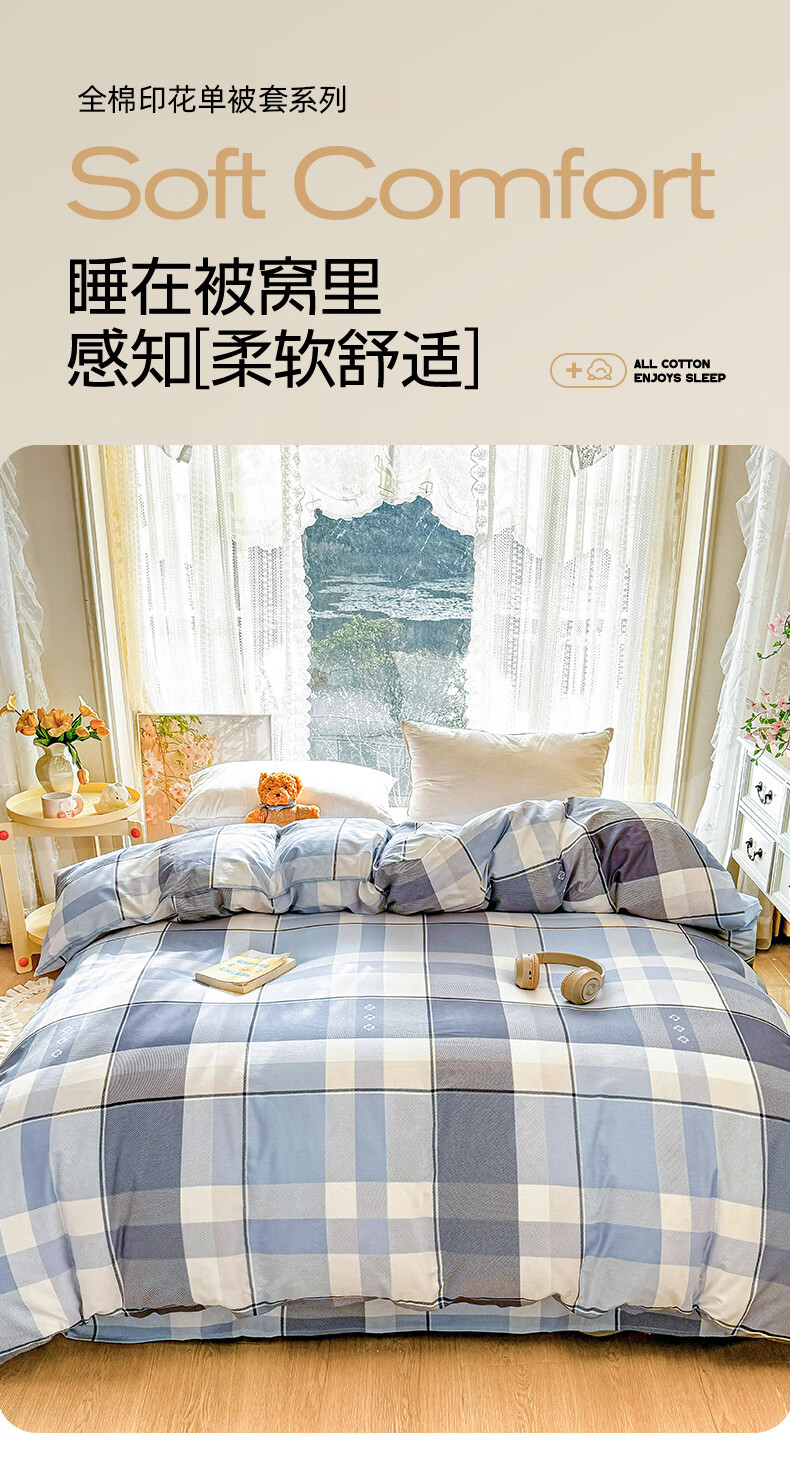 浪莎(LangSha)秋冬全棉被套单件宿舍单人被单被罩纯棉150x200学生宿舍被罩单件 小幸运 单被套 120cm*200cm