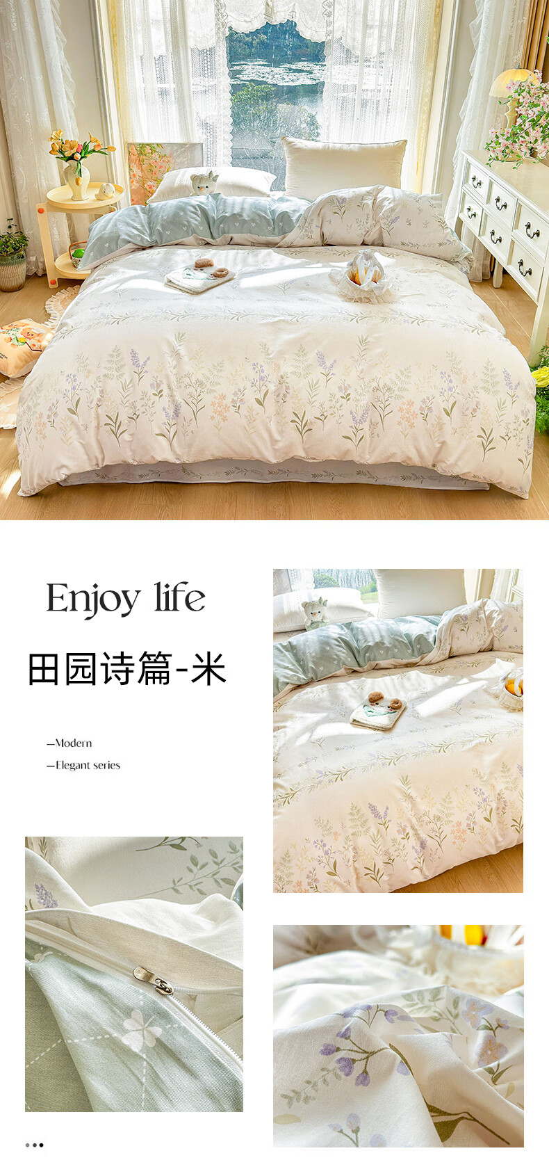 猫人(MiiOW)床上用品四件套全棉纯棉2025新款床单被套三件套高端轻奢高级感 米黄+豆绿【100%亲肤精梳棉 适合裸睡】 床单款 1.2m床三件套-适合150x200cm被子