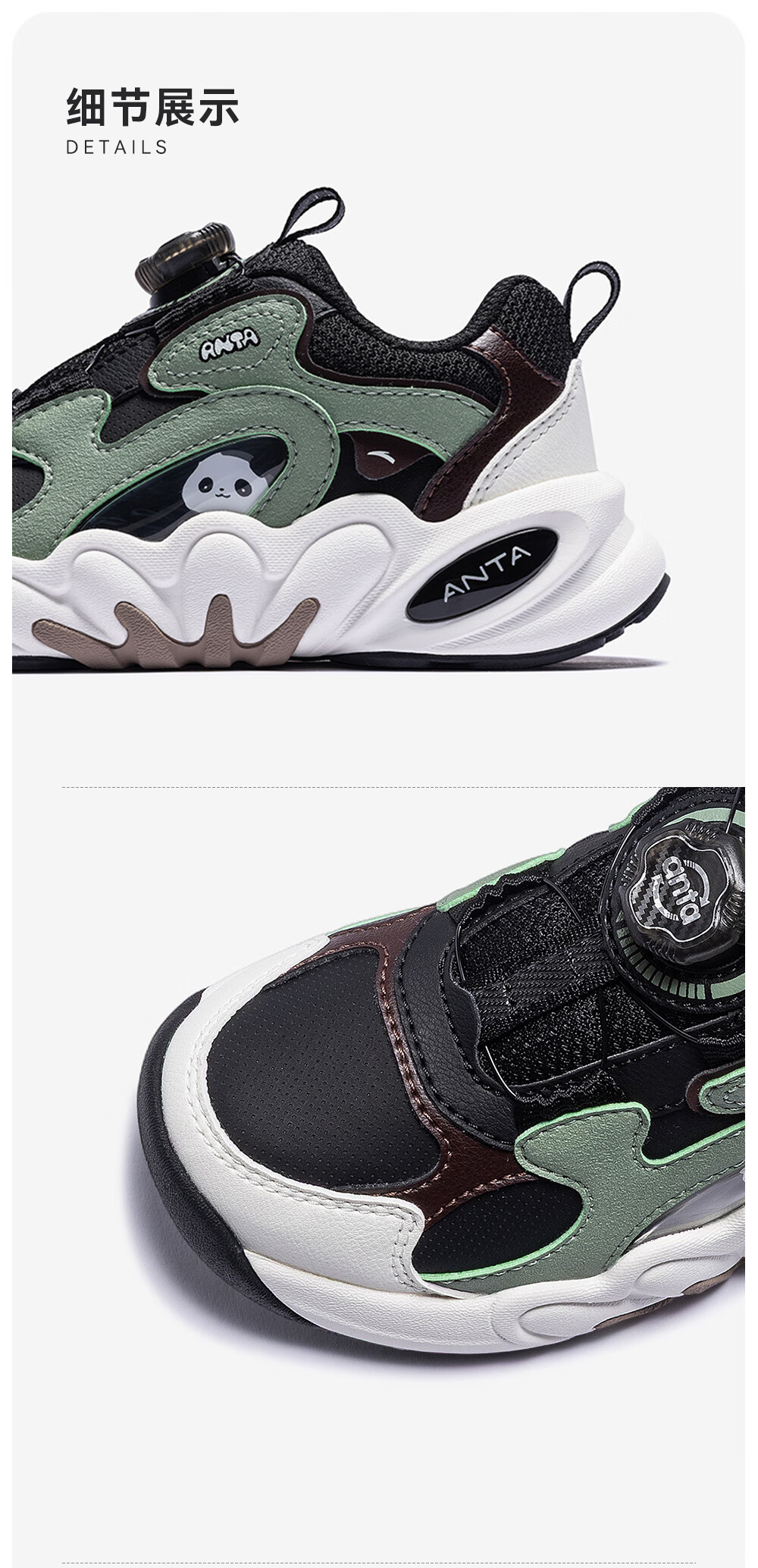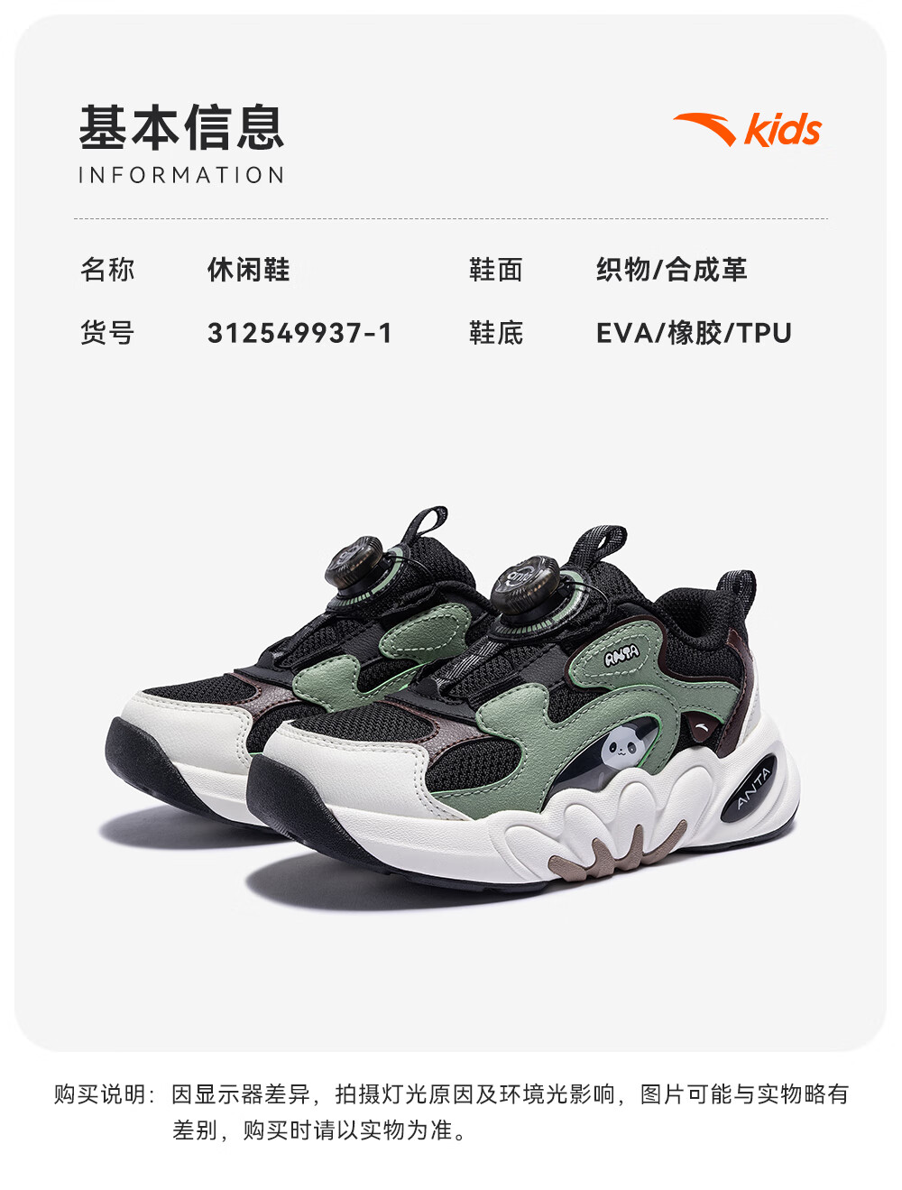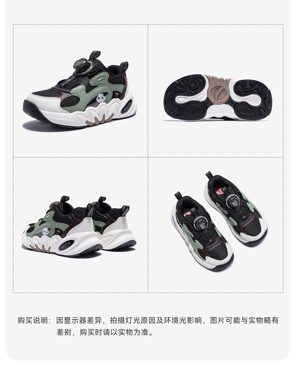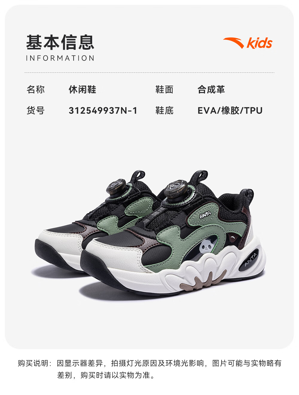 安踏儿童运动鞋墩墩熊猫男小童25秋季新品犟弹厚底休闲鞋312549937N 【店长推荐丨革面男款】黑/绿N-1 30