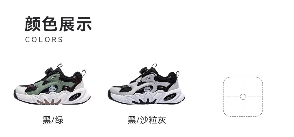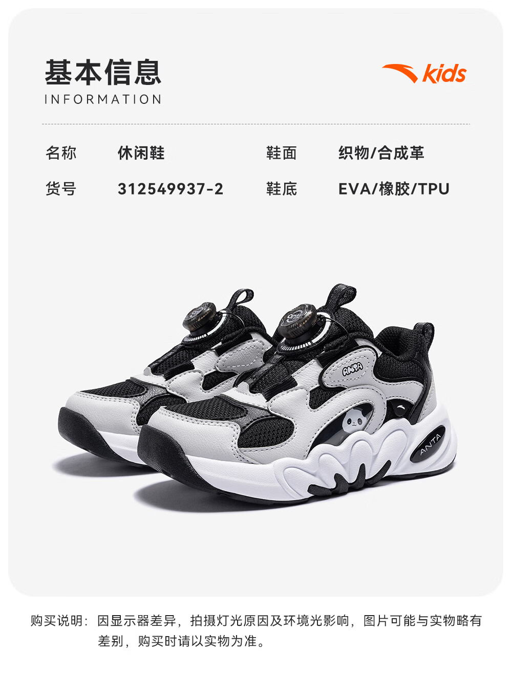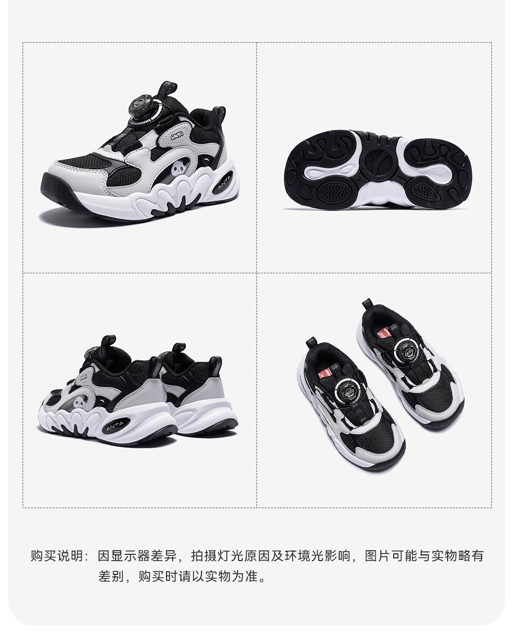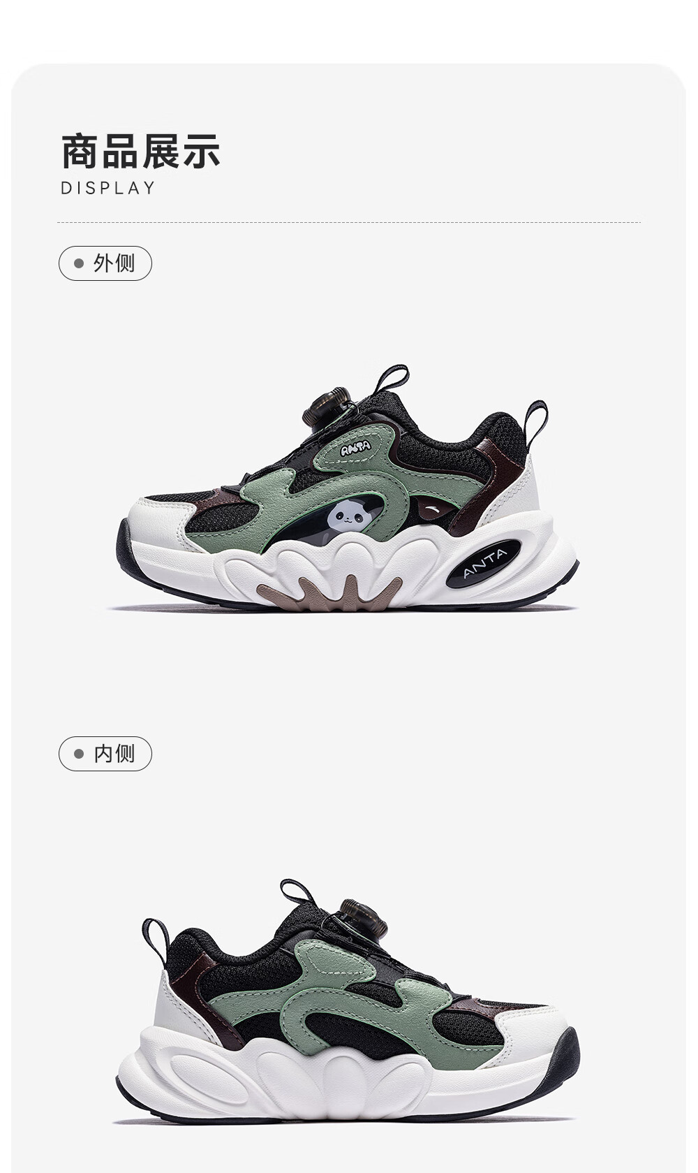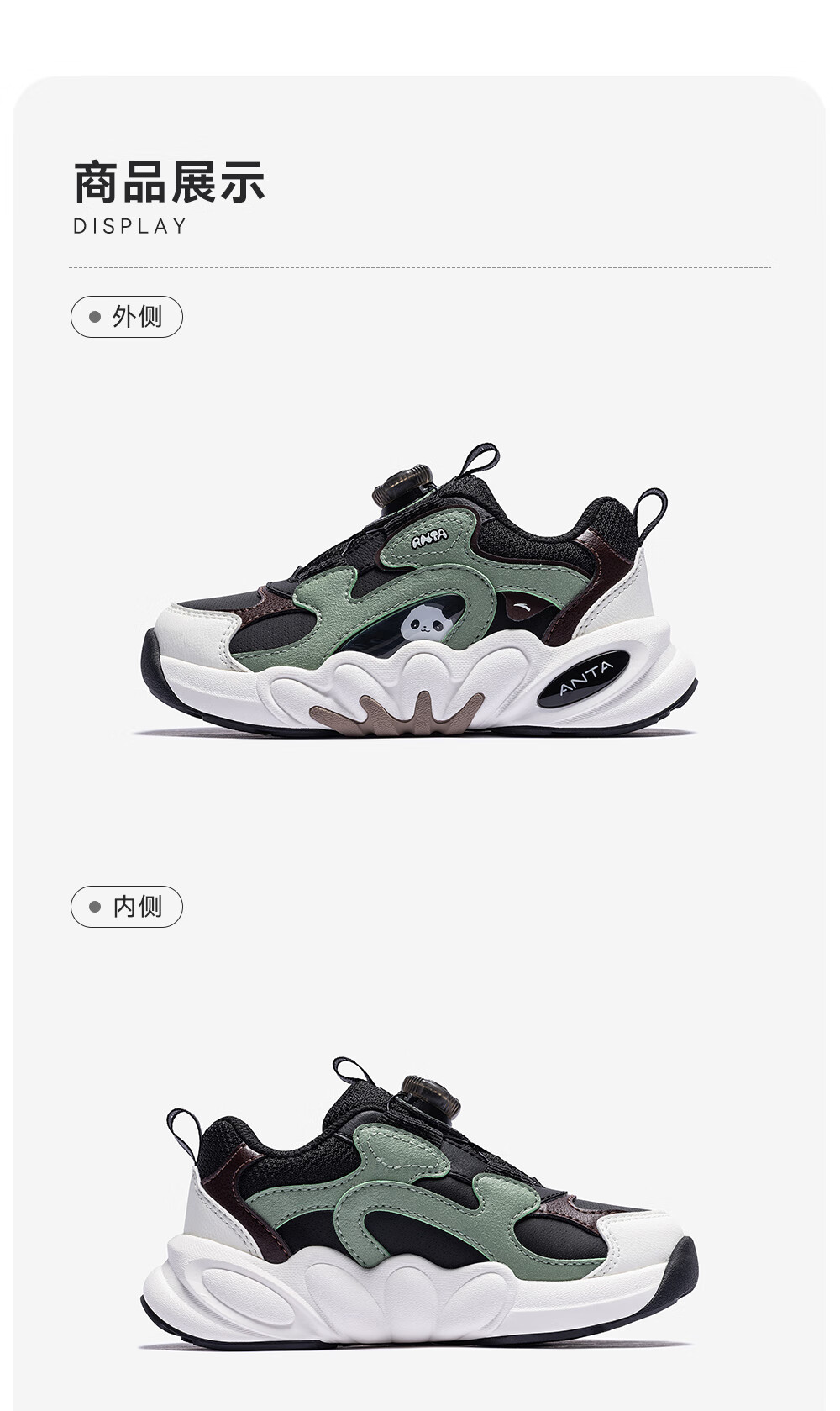 安踏儿童运动鞋墩墩熊猫男小童25秋季新品犟弹厚底休闲鞋312549937N 【店长推荐丨革面男款】黑/绿N-1 30