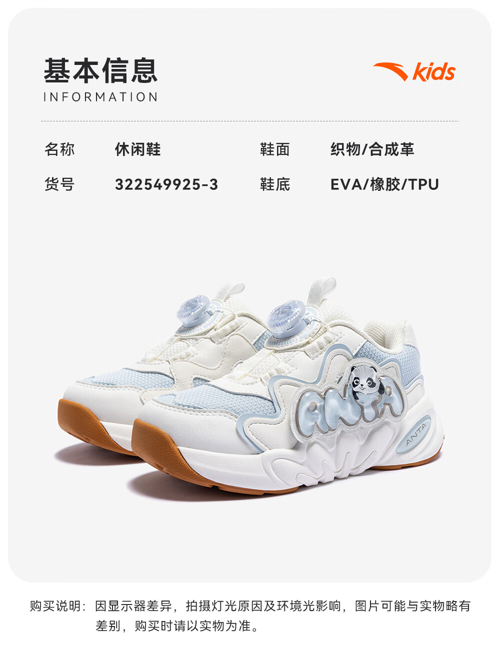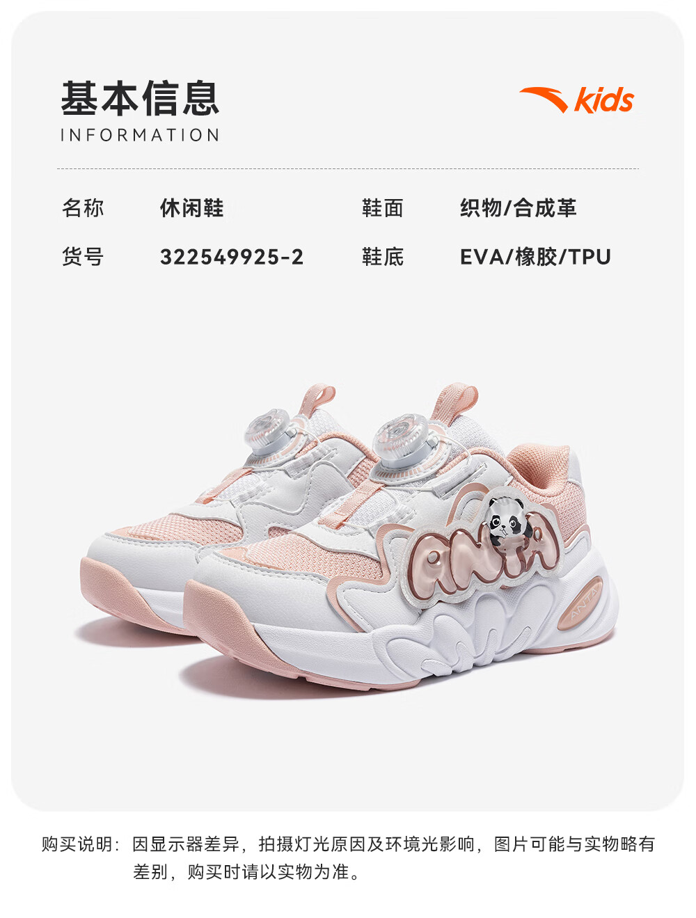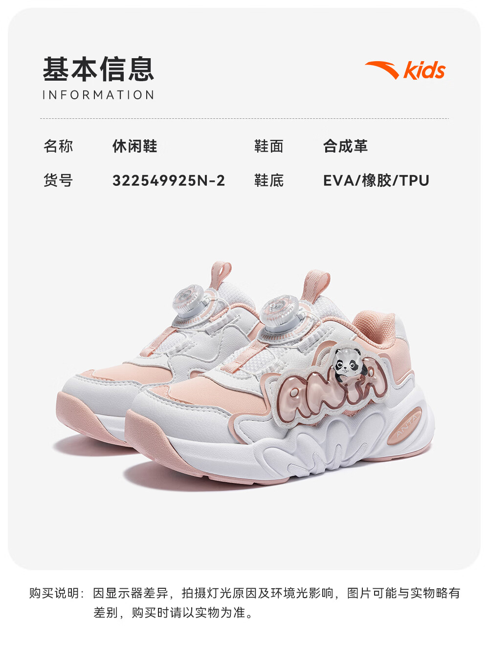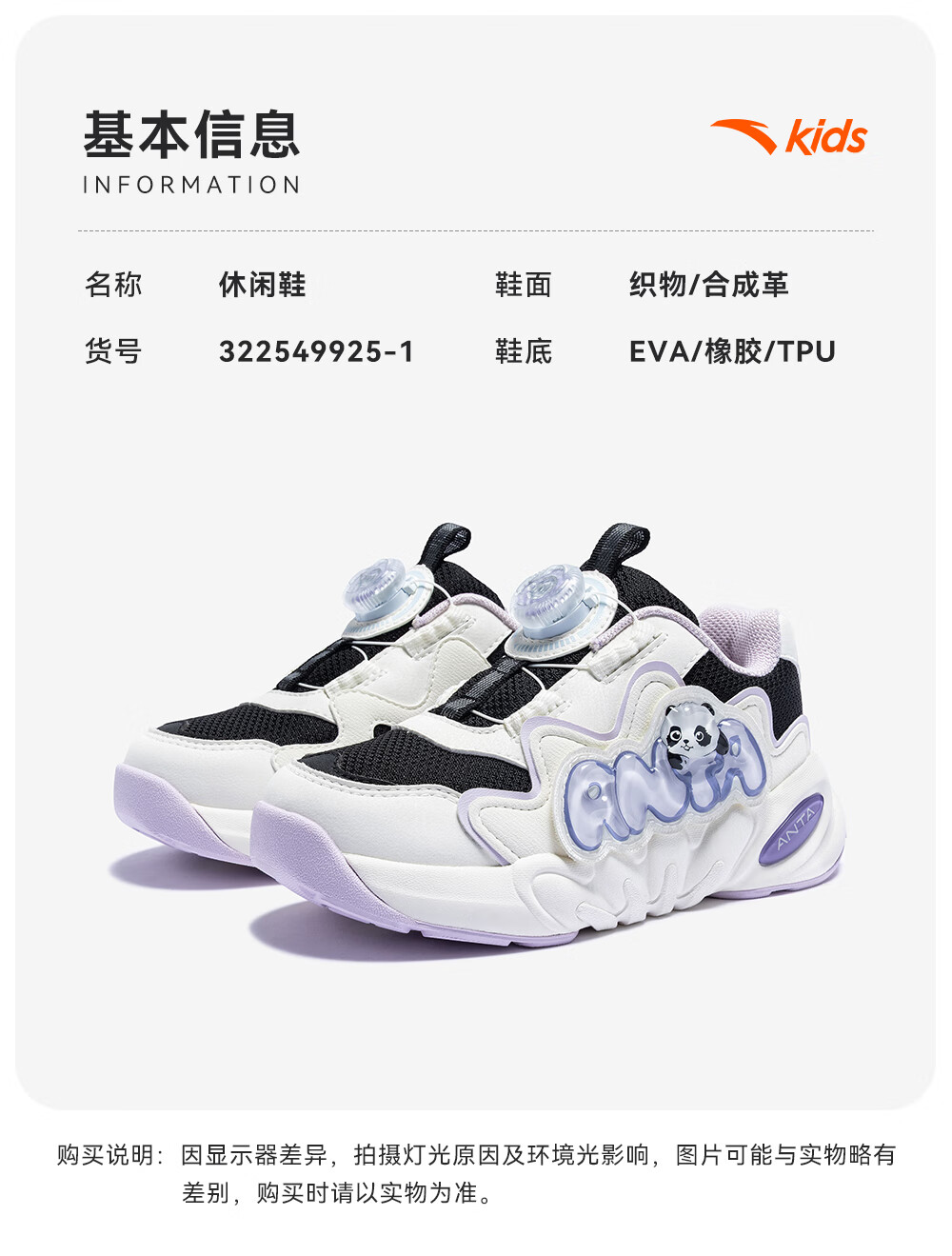 安踏儿童运动鞋墩墩熊猫男小童25秋季新品犟弹厚底休闲鞋312549937N 【店长推荐丨革面男款】黑/绿N-1 30