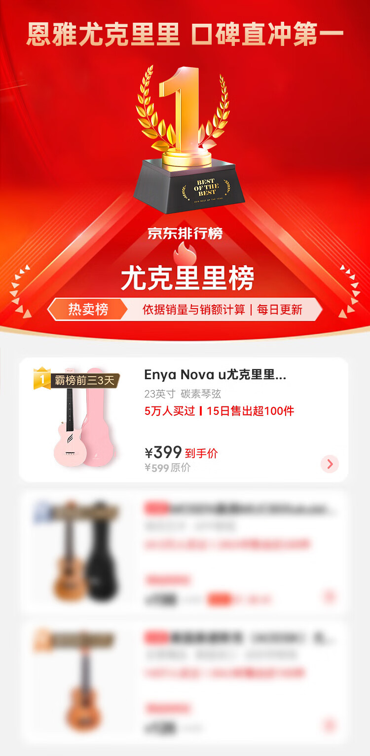 enya恩雅Nova u碳纤维入门级尤克里里成人儿童初学者乌克丽丽小吉他 23英寸太空黑原声+专属礼包