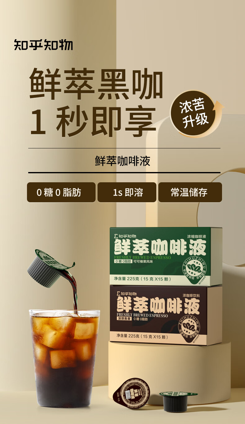 知乎知物咖啡液鲜萃黑咖啡浓缩液榛果可可0糖0脂肪速溶冲饮咖啡美式拿铁 【尝鲜6颗】鲜萃咖啡液