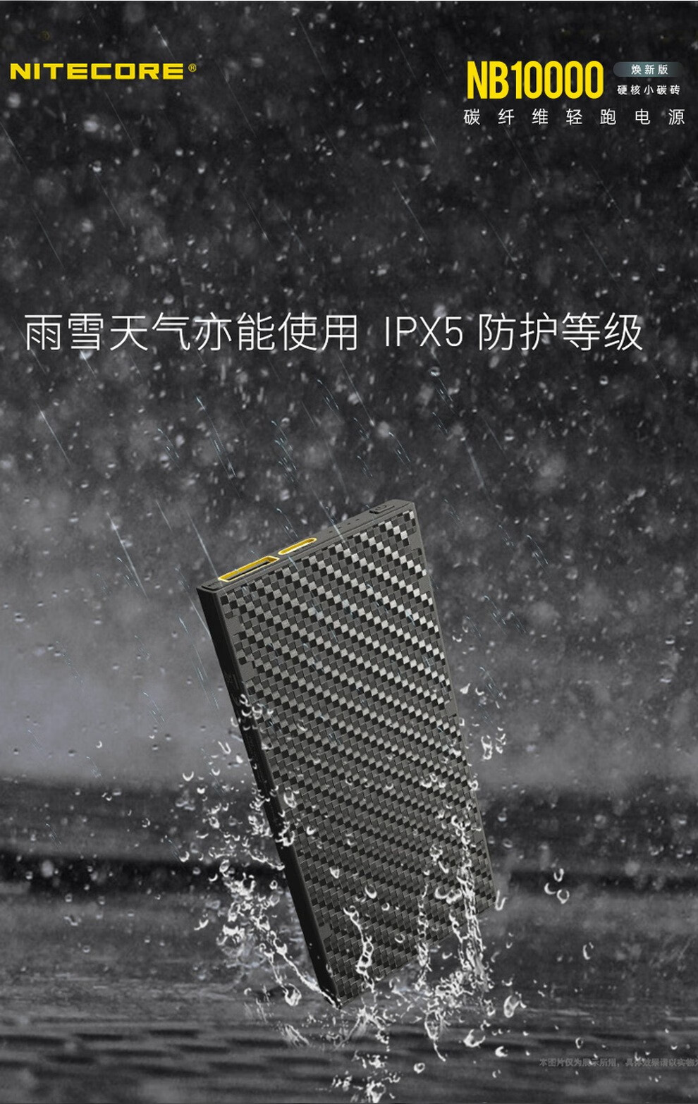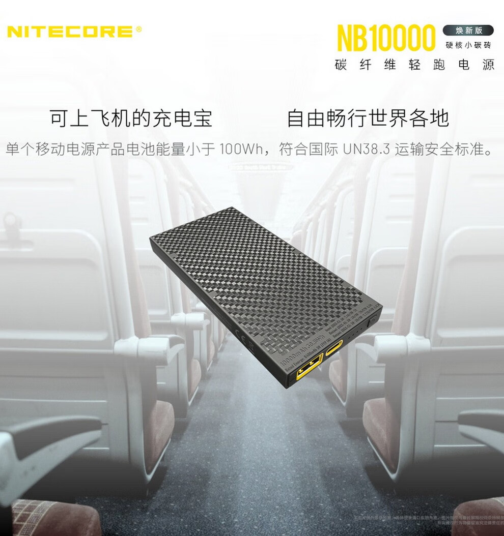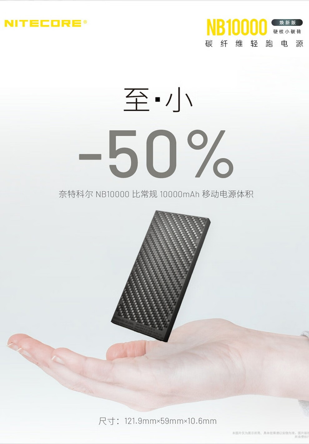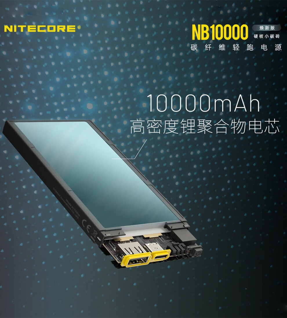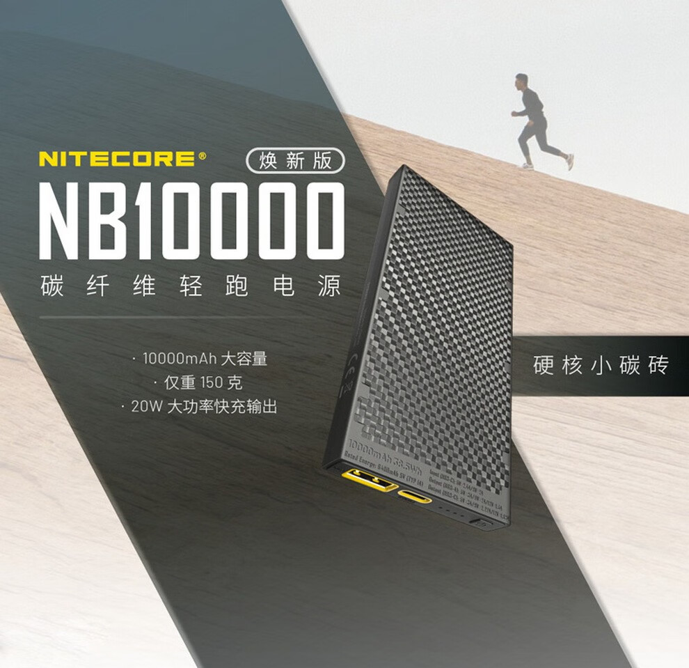 奈特科尔(NITECORE) 新3C认证NB10000 碳纤维户外轻跑18W快充移动电源轻薄便携充电宝 NB10000 焕新版轻跑充电宝