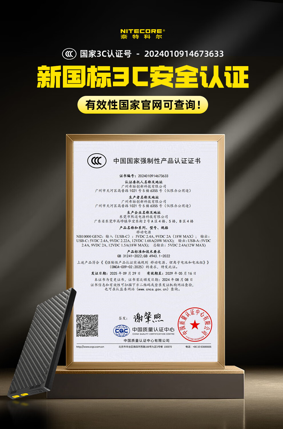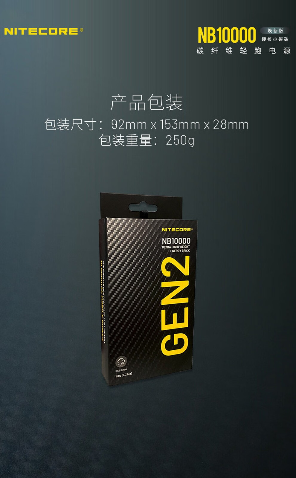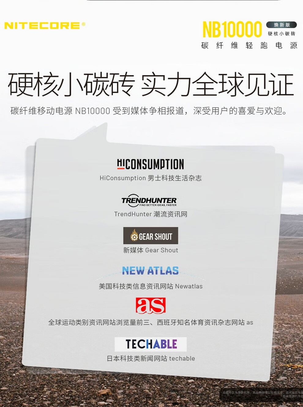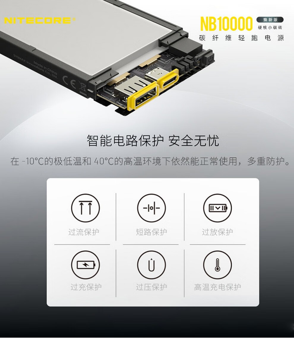 奈特科尔(NITECORE) 新3C认证NB10000 碳纤维户外轻跑18W快充移动电源轻薄便携充电宝 NB10000 焕新版轻跑充电宝
