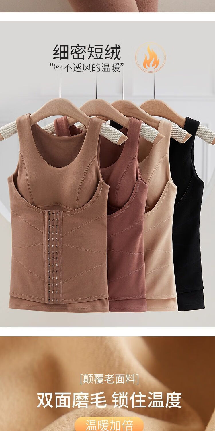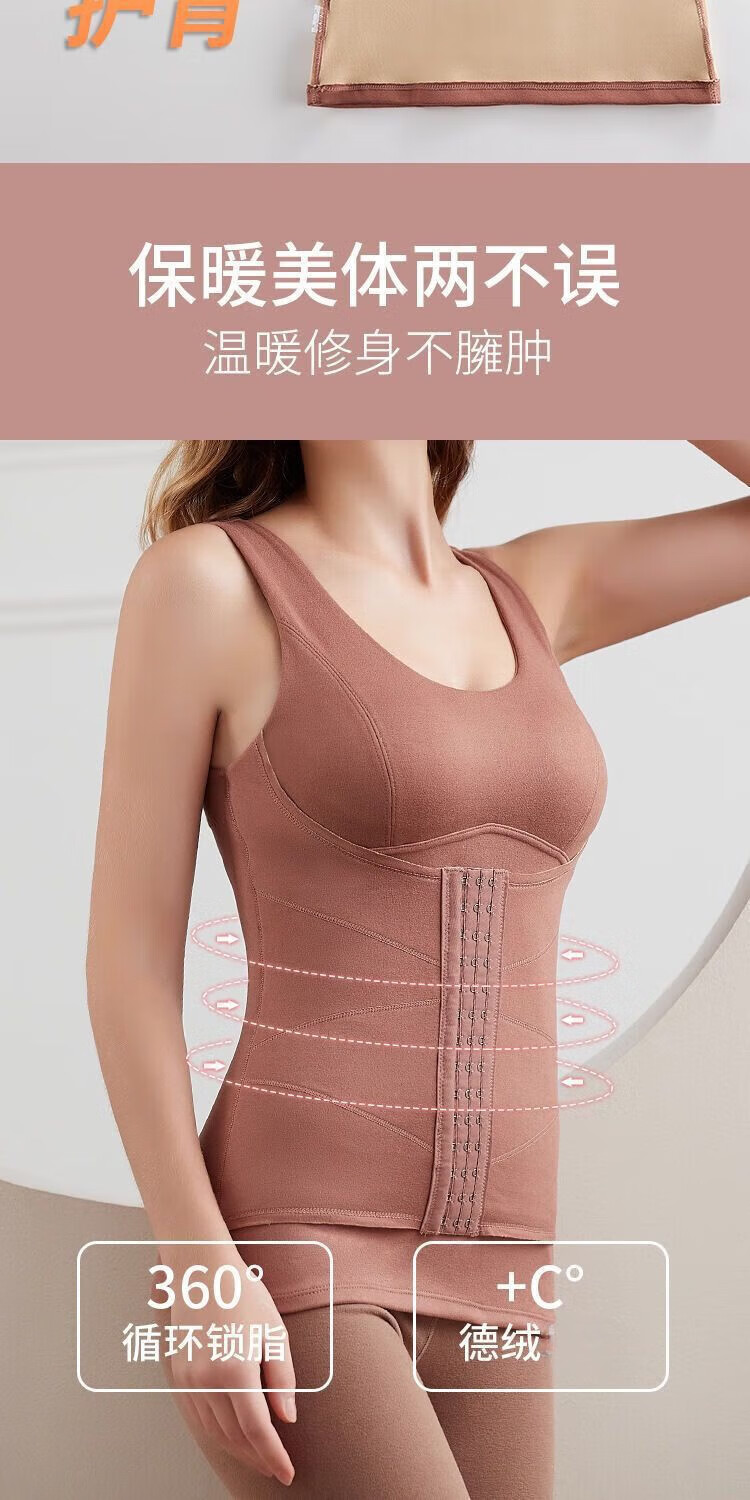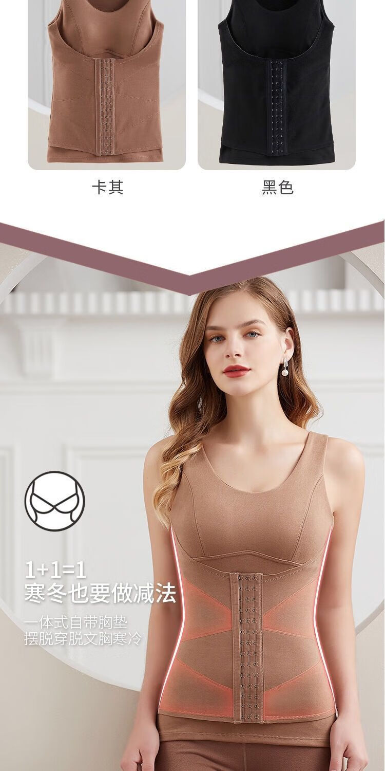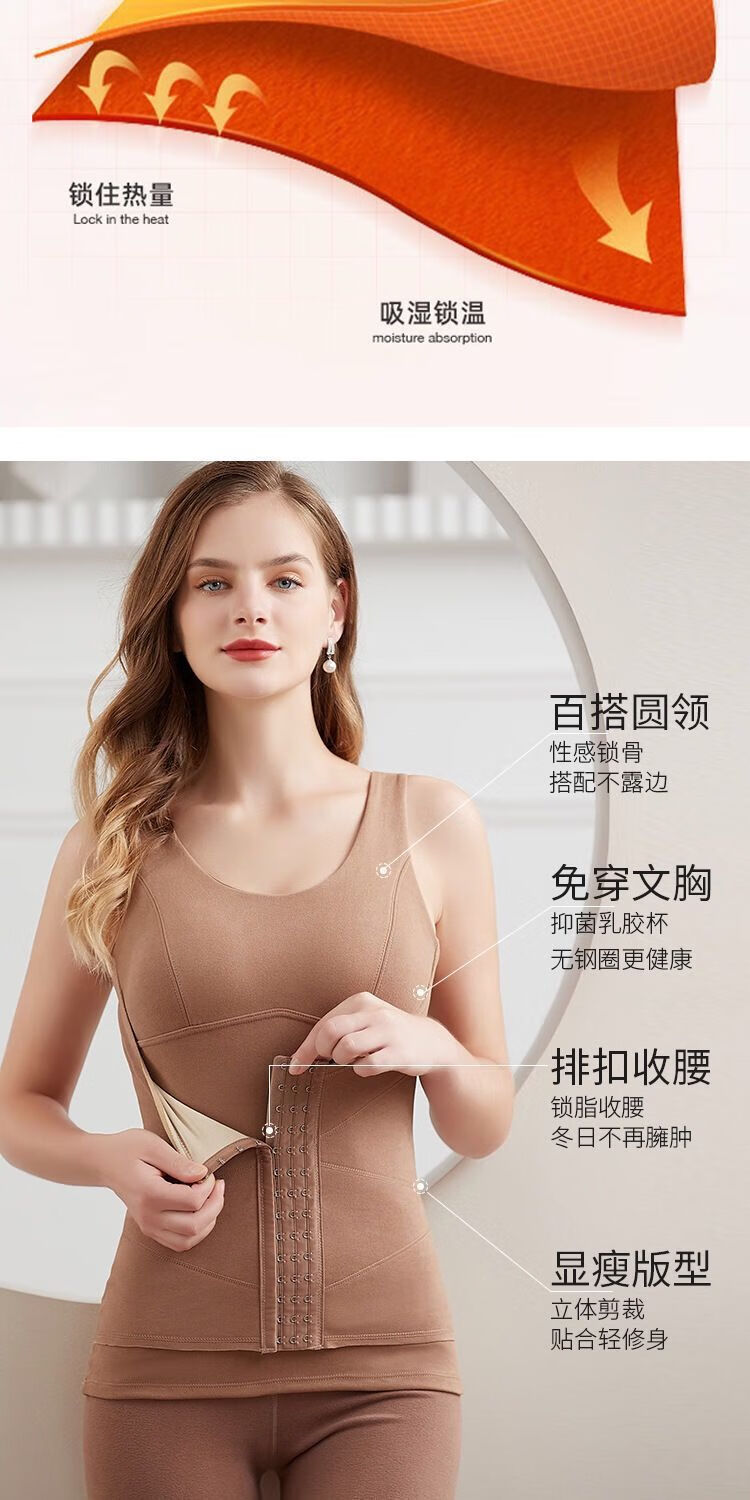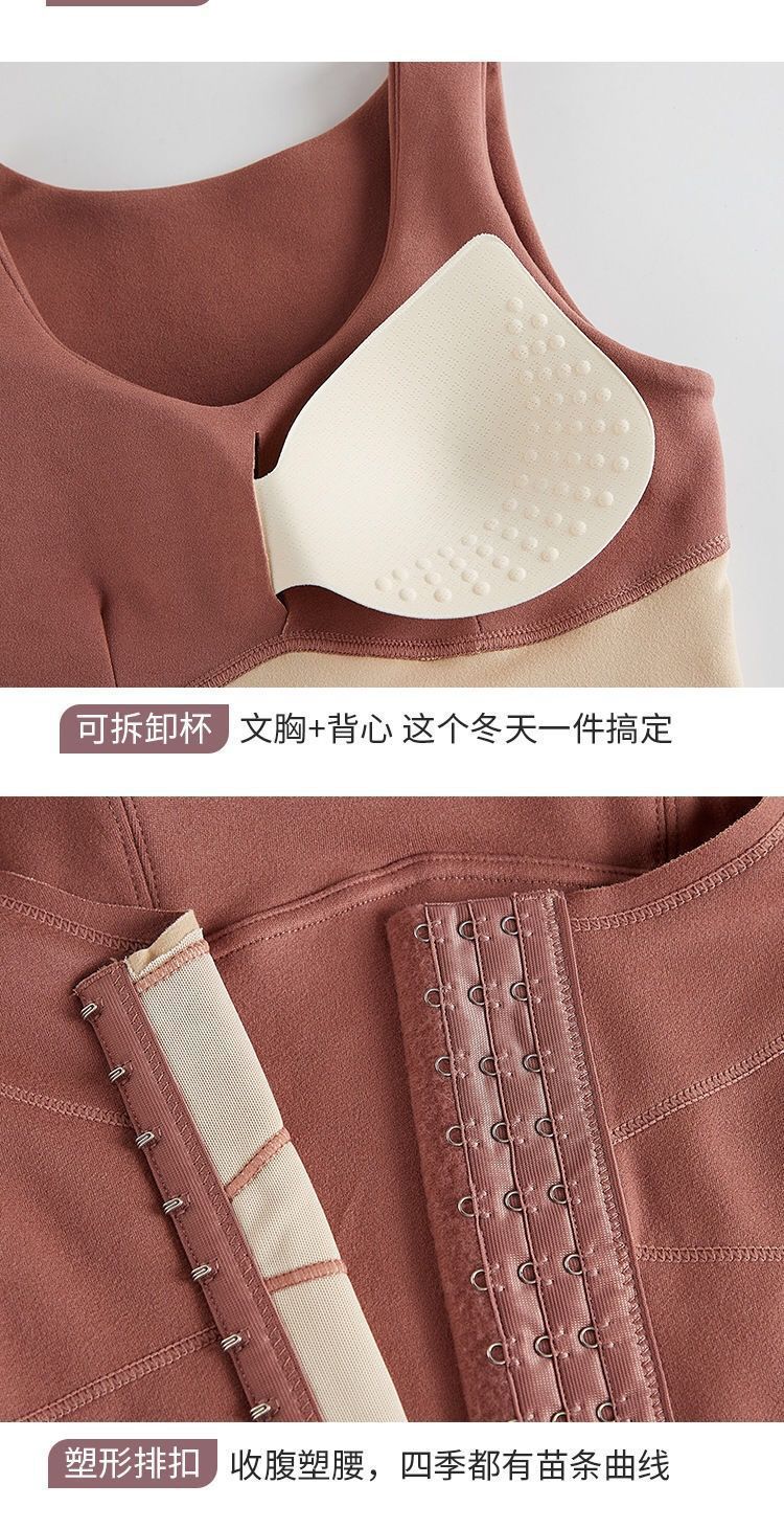 欧伦黛保暖内衣女束身德绒无痕加绒加厚背心带胸垫塑身收腹秋冬季显瘦 肤色 3XL 【120-140斤】