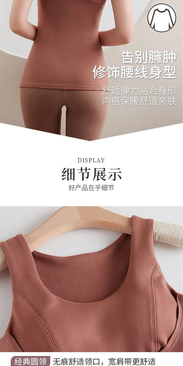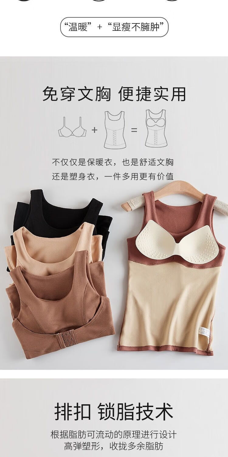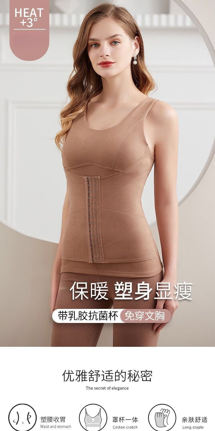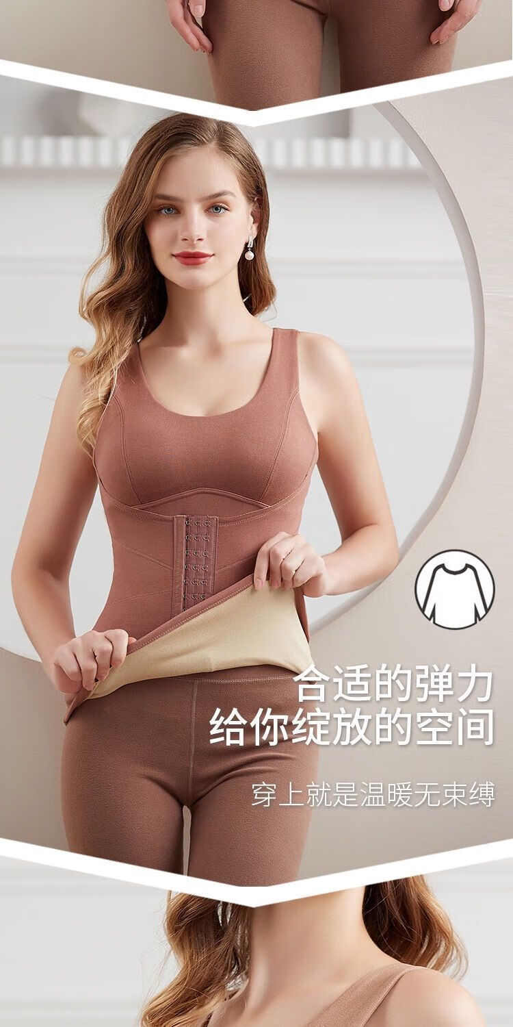 欧伦黛保暖内衣女束身德绒无痕加绒加厚背心带胸垫塑身收腹秋冬季显瘦 肤色 3XL 【120-140斤】