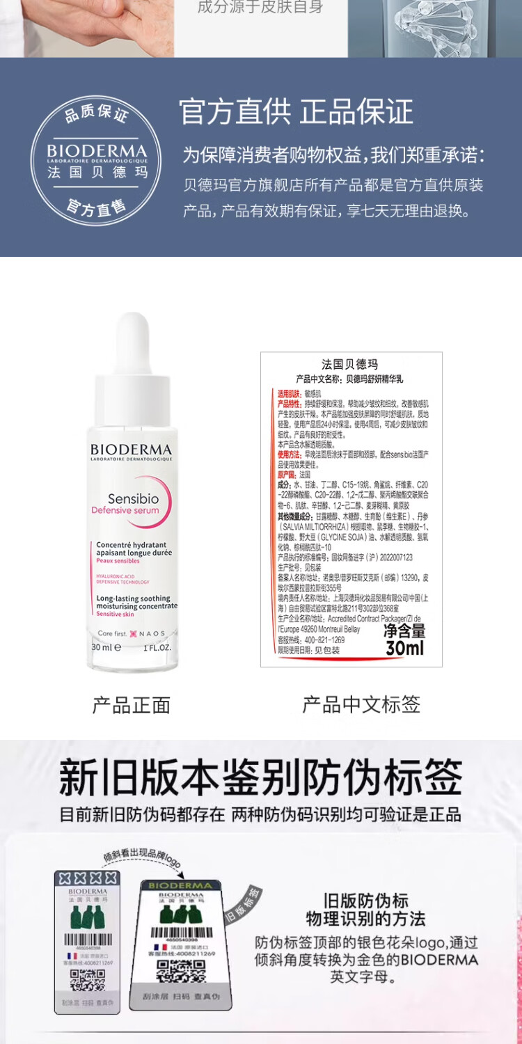 BIODERMA 贝德玛特护精华舒妍精华乳舒缓泛红修护屏障补水敏感肌可用 【26年8月21日效期】30ml