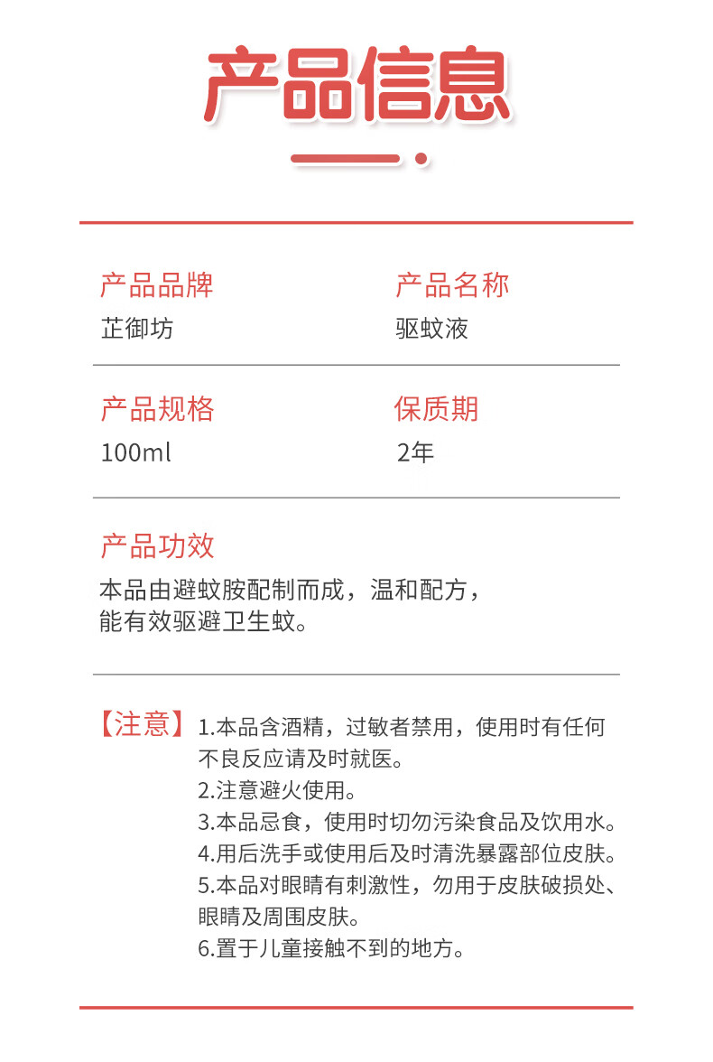 芷御坊驱蚊液室内驱蚊喷雾100ml便携式蚊不叮防蚊子喷雾驱蚊虫叮咬水 100ml*2瓶