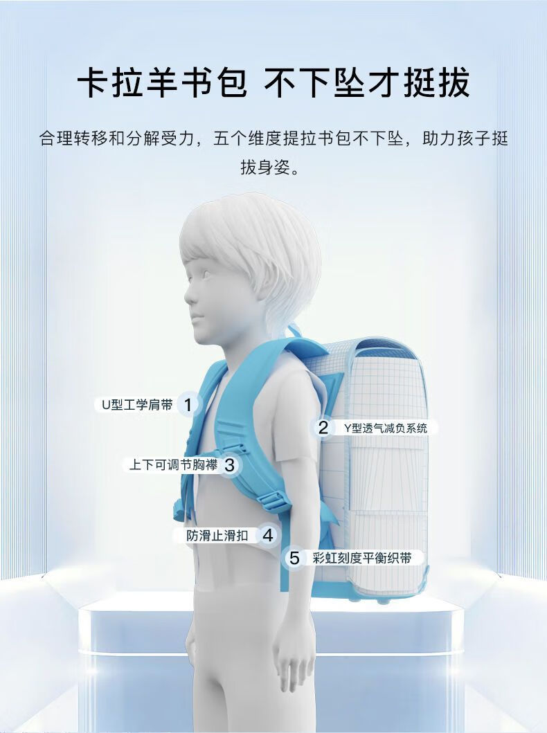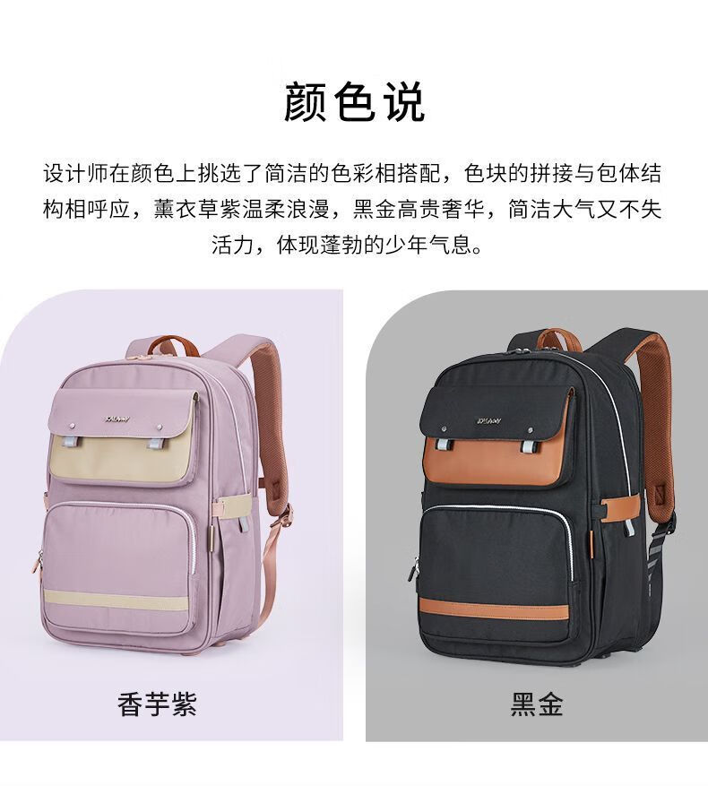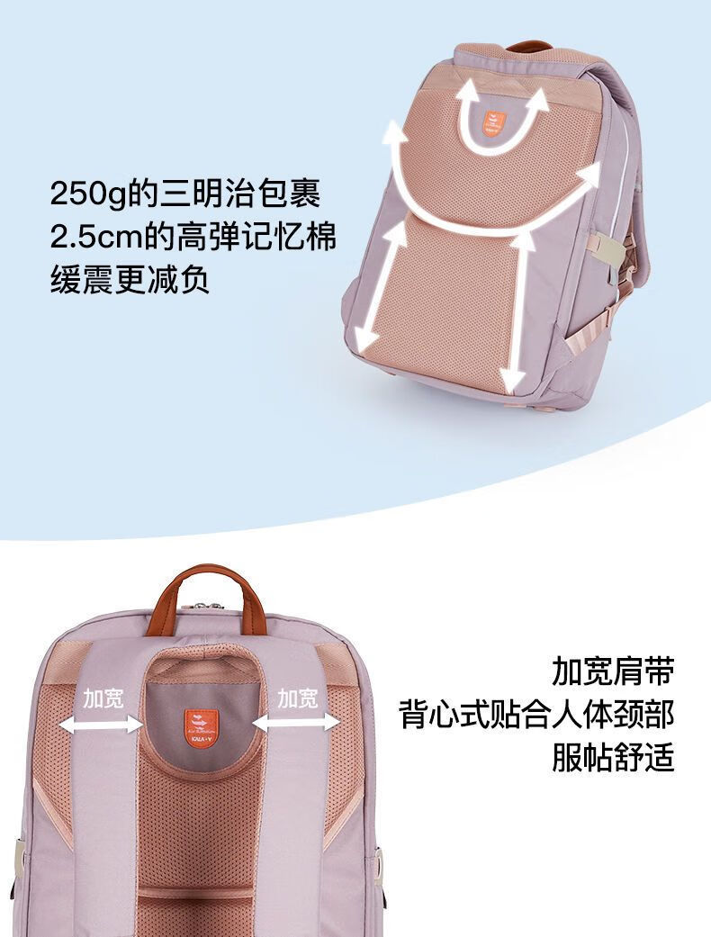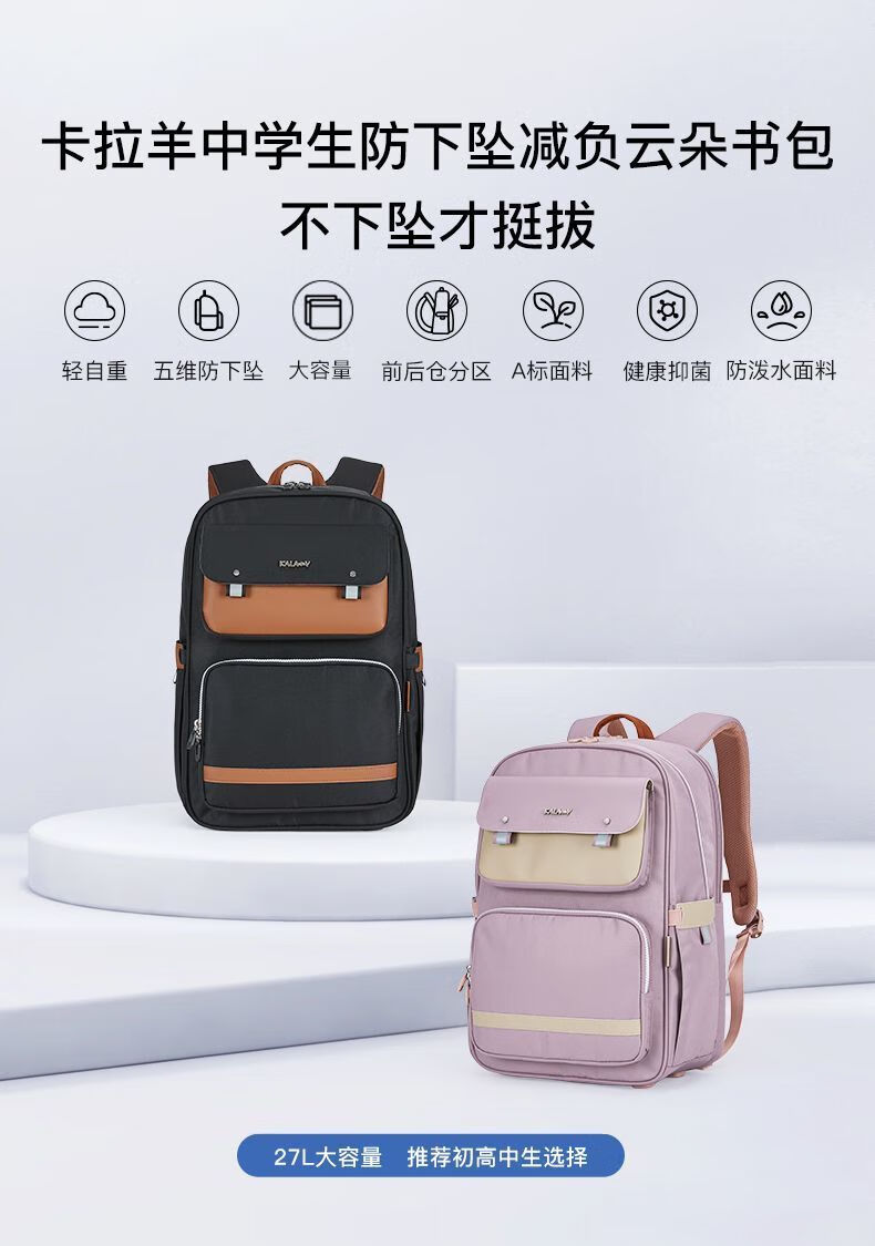 卡拉羊中学生减负超轻云朵书包大容量双肩包男女轻便背包TX2626-1 黑金