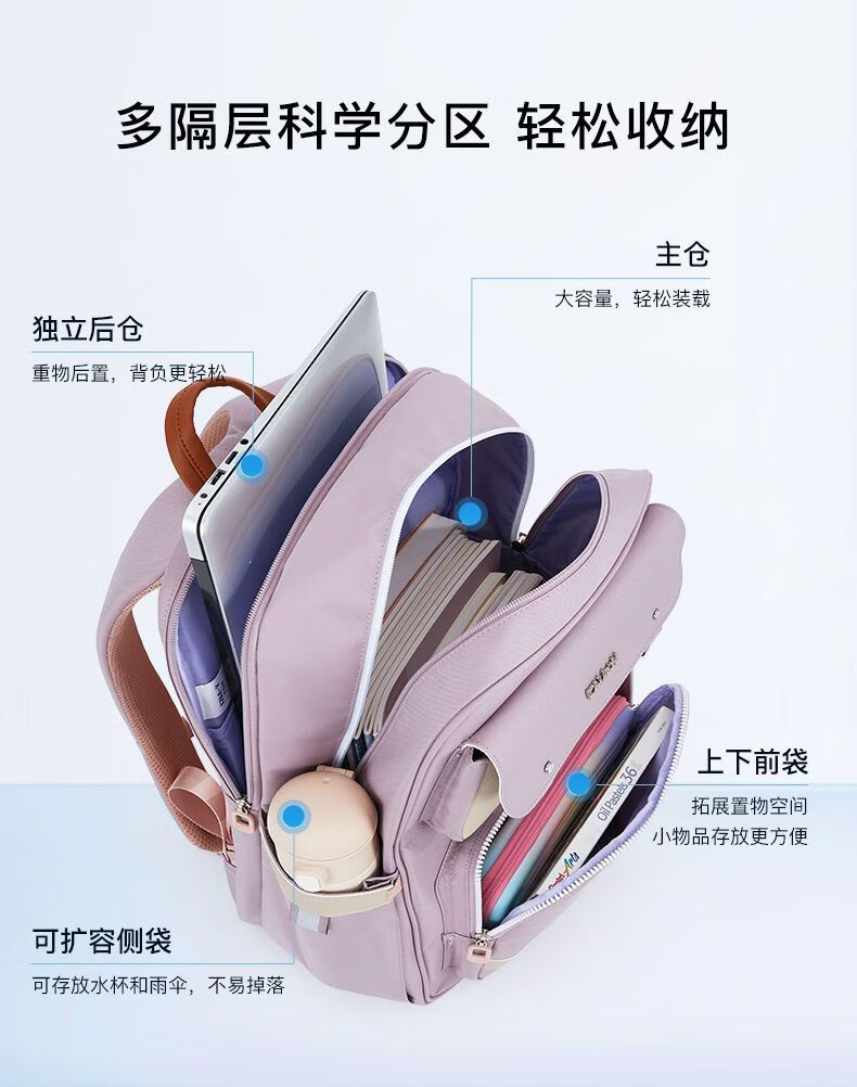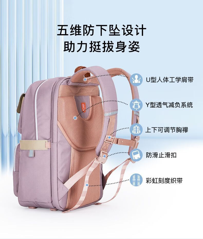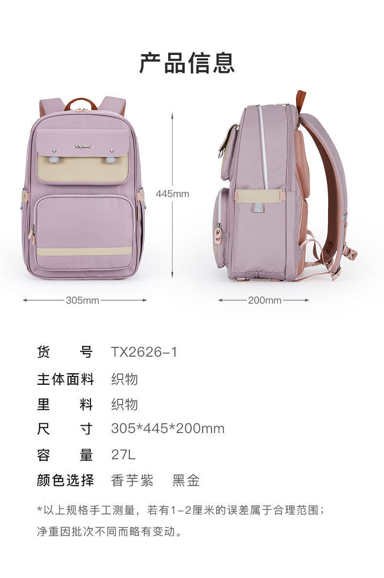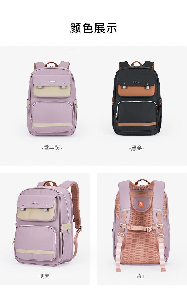 卡拉羊中学生减负超轻云朵书包大容量双肩包男女轻便背包TX2626-1 黑金