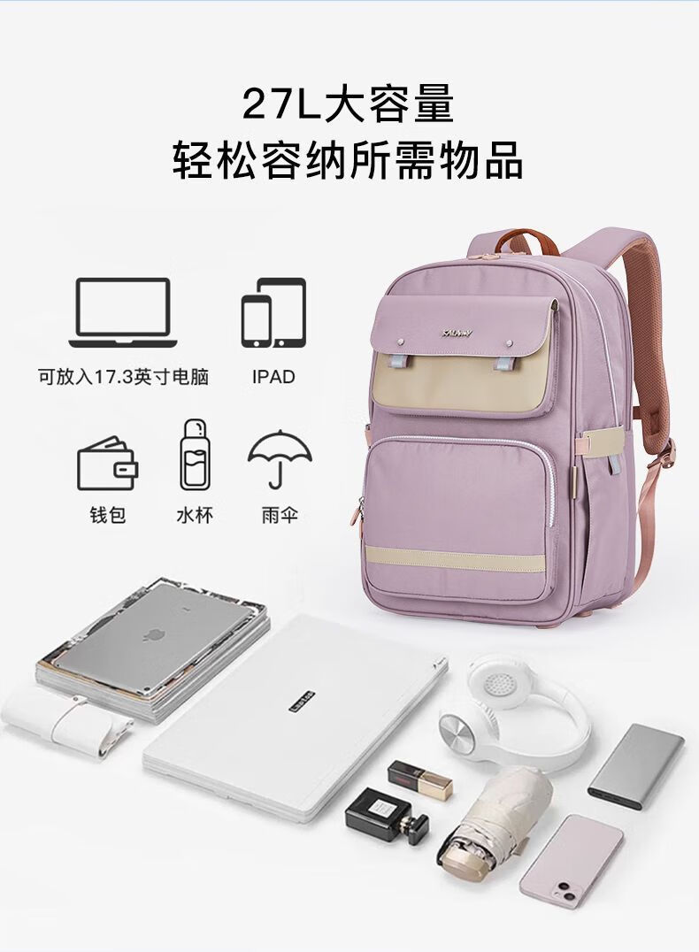 sun earth&u日系双肩包女通勤背包电脑包大容量学生书包旅行包休闲时尚防泼水 湖绿色