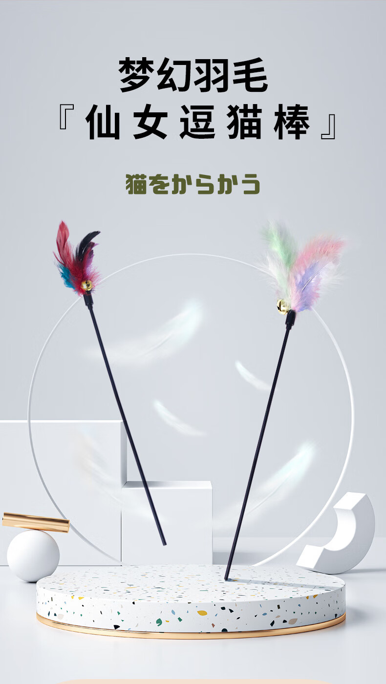 GP羽毛逗猫棒厂家批发猫咪宠物用品逗猫产品长杆超长杆铃铛发声 随机颜色 50公分