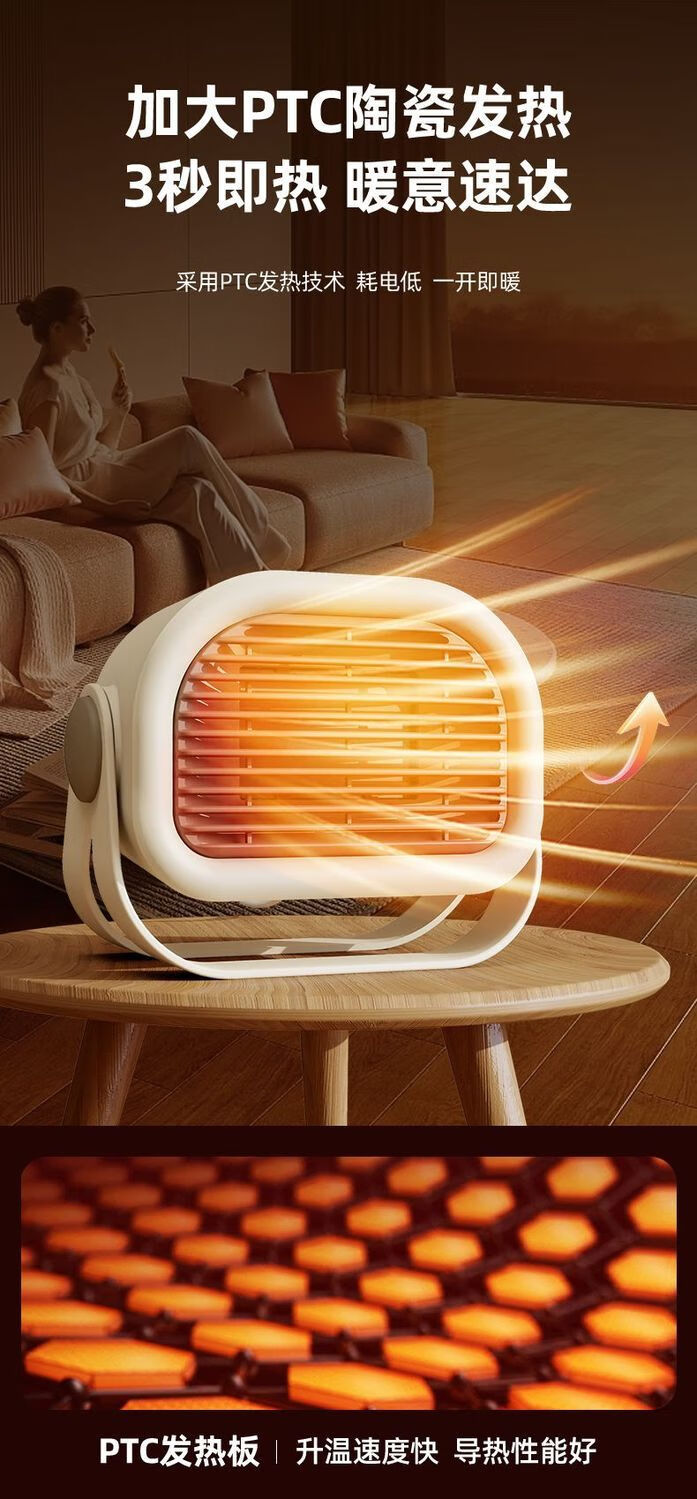 OUIO取暖器电暖器暖风机电暖气家用电热取暖电暖风小型暖风取暖器迷你暖脚神器三重保护 【PTC陶瓷】3S速热+轻音无光+智能过热保护