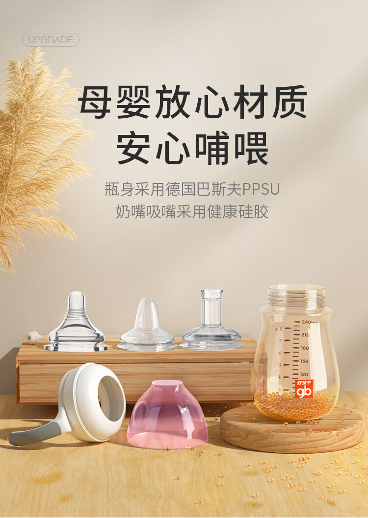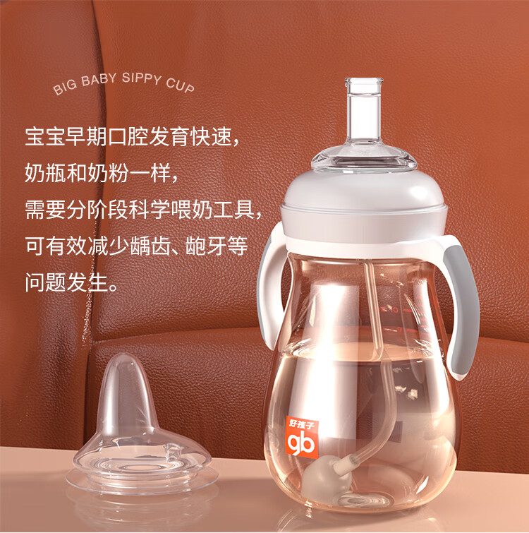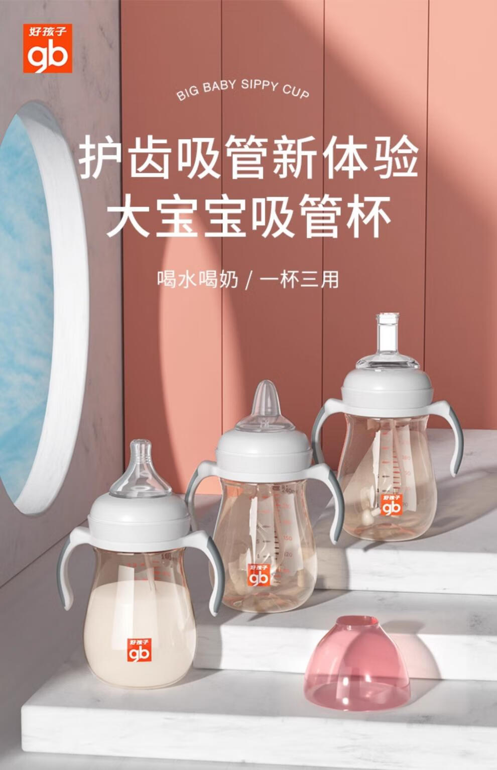 好孩子Goodbaby好孩子吸管奶瓶1-3岁以上大宝宝PPSU吸嘴儿童喝水喝奶直 [奶瓶]蓝色 300ml