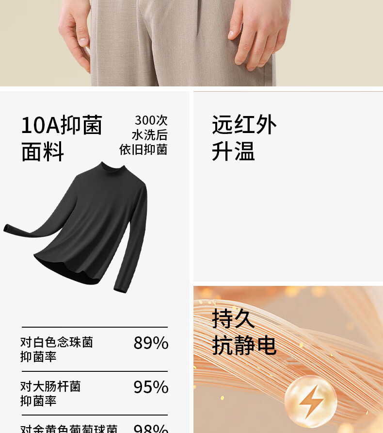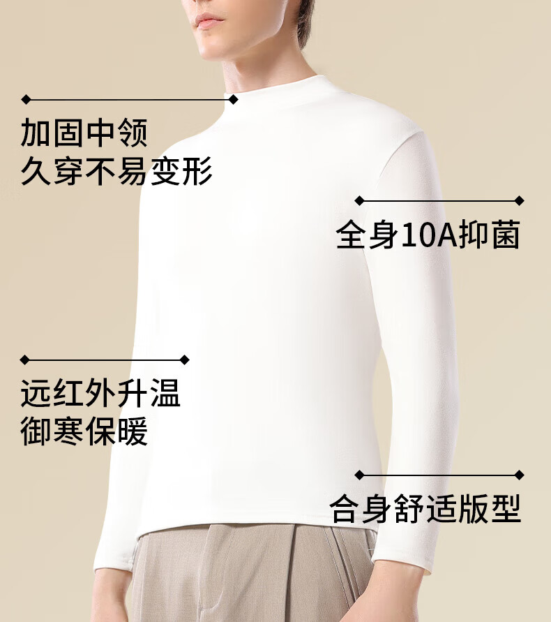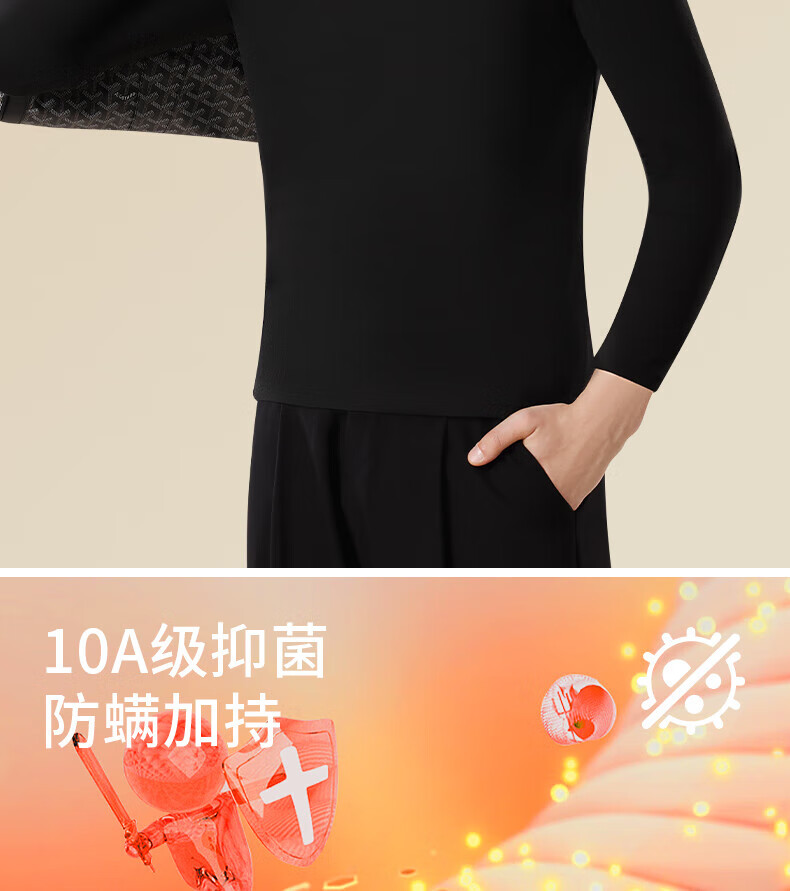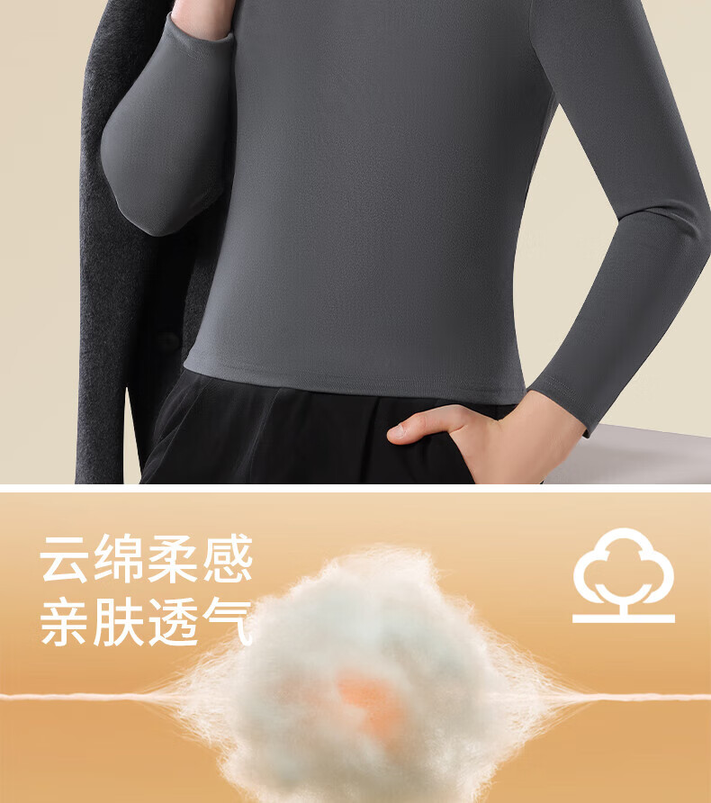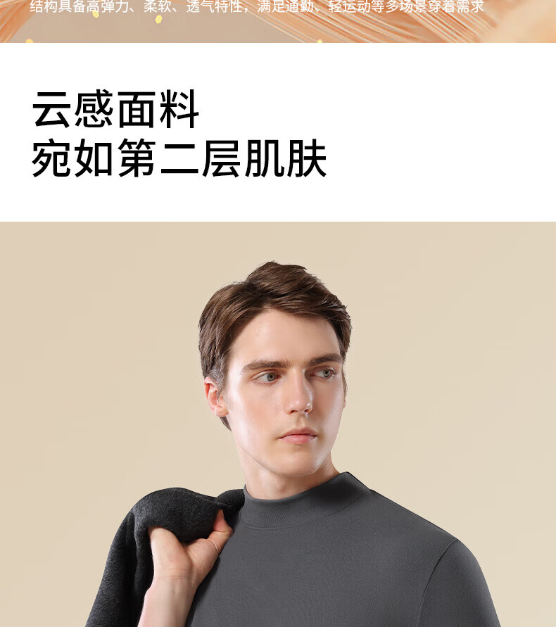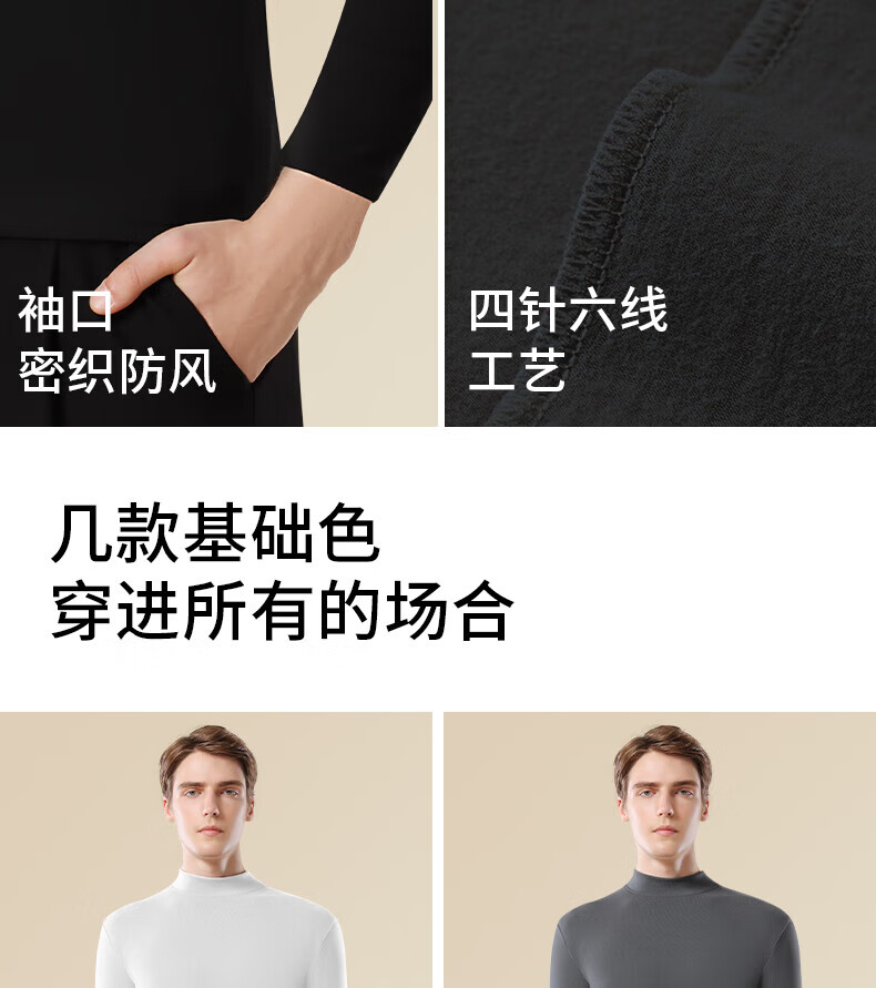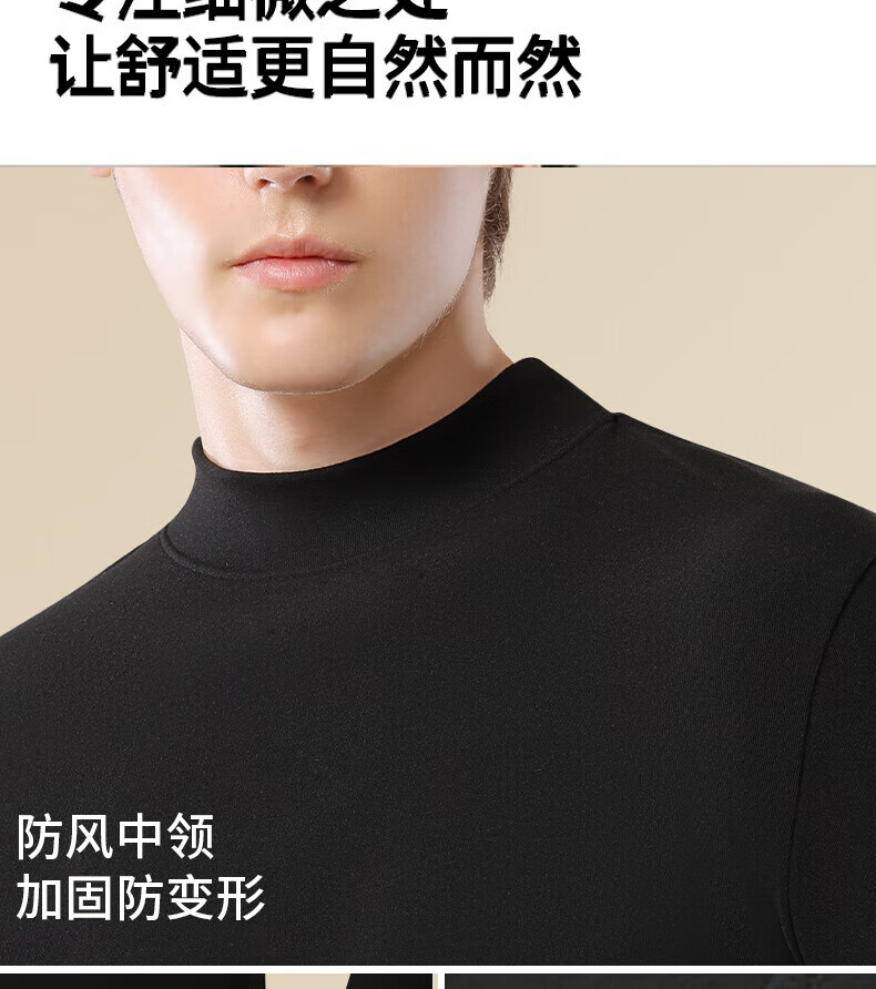 雪中飞保暖内衣男加绒加厚2025年新款秋冬防寒蓄热高弹贴身秋衣打底衫 XZFZX-8188黑色 【轻暖绒打底衫】 XL 【建议120-150斤】