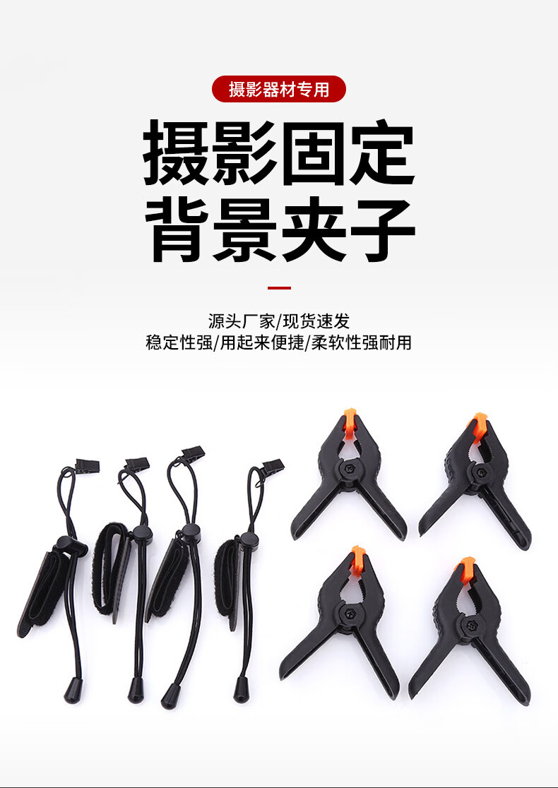 摄像拍照背景布侧边夹摄影龙门架套装配件背景架固定夹子影棚器材 黑色