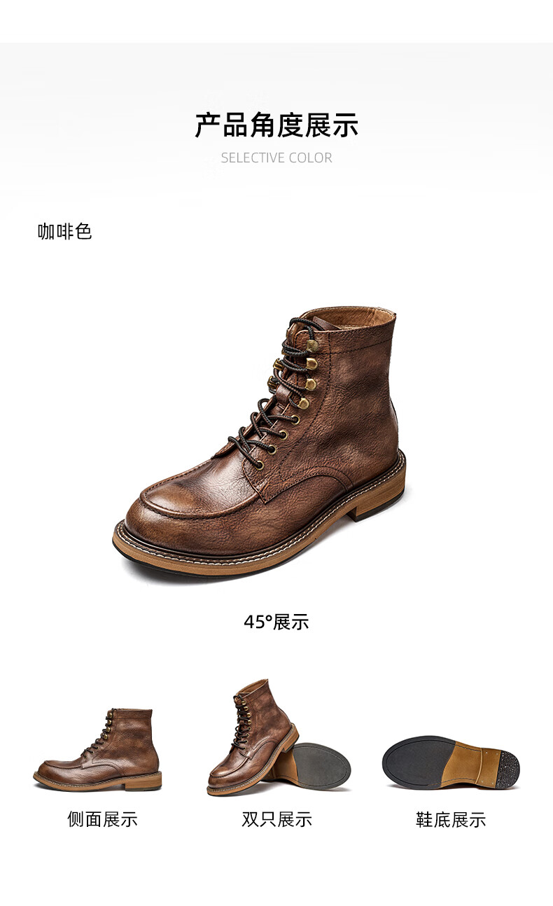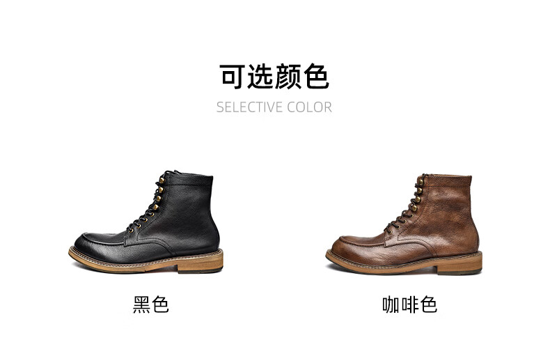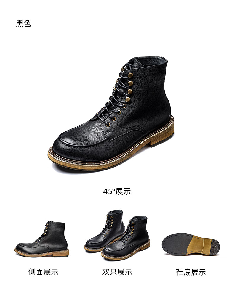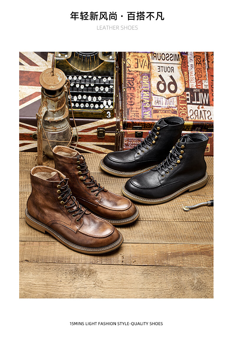 15分钟马丁靴男高帮休闲皮鞋短靴英伦工装靴潮流复古男靴 黑色 41