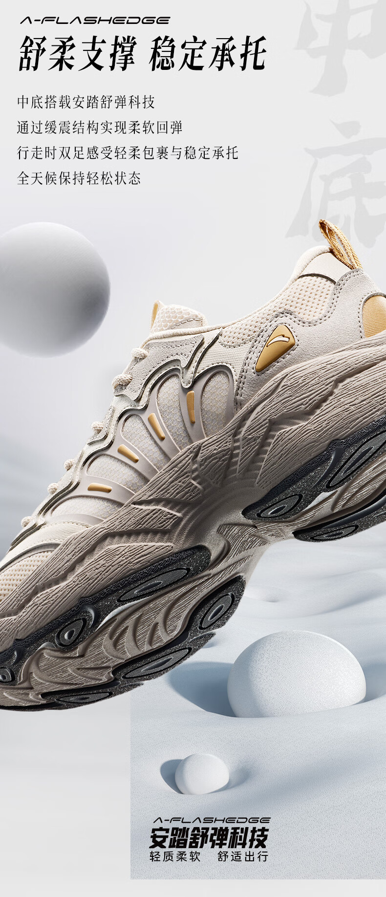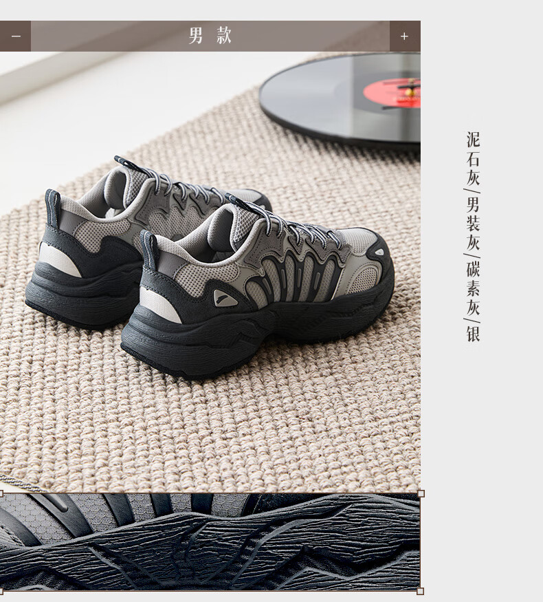 安踏陨石3丨林孝埈同款复古老爹鞋男鞋厚底休闲鞋软底运动鞋112538851