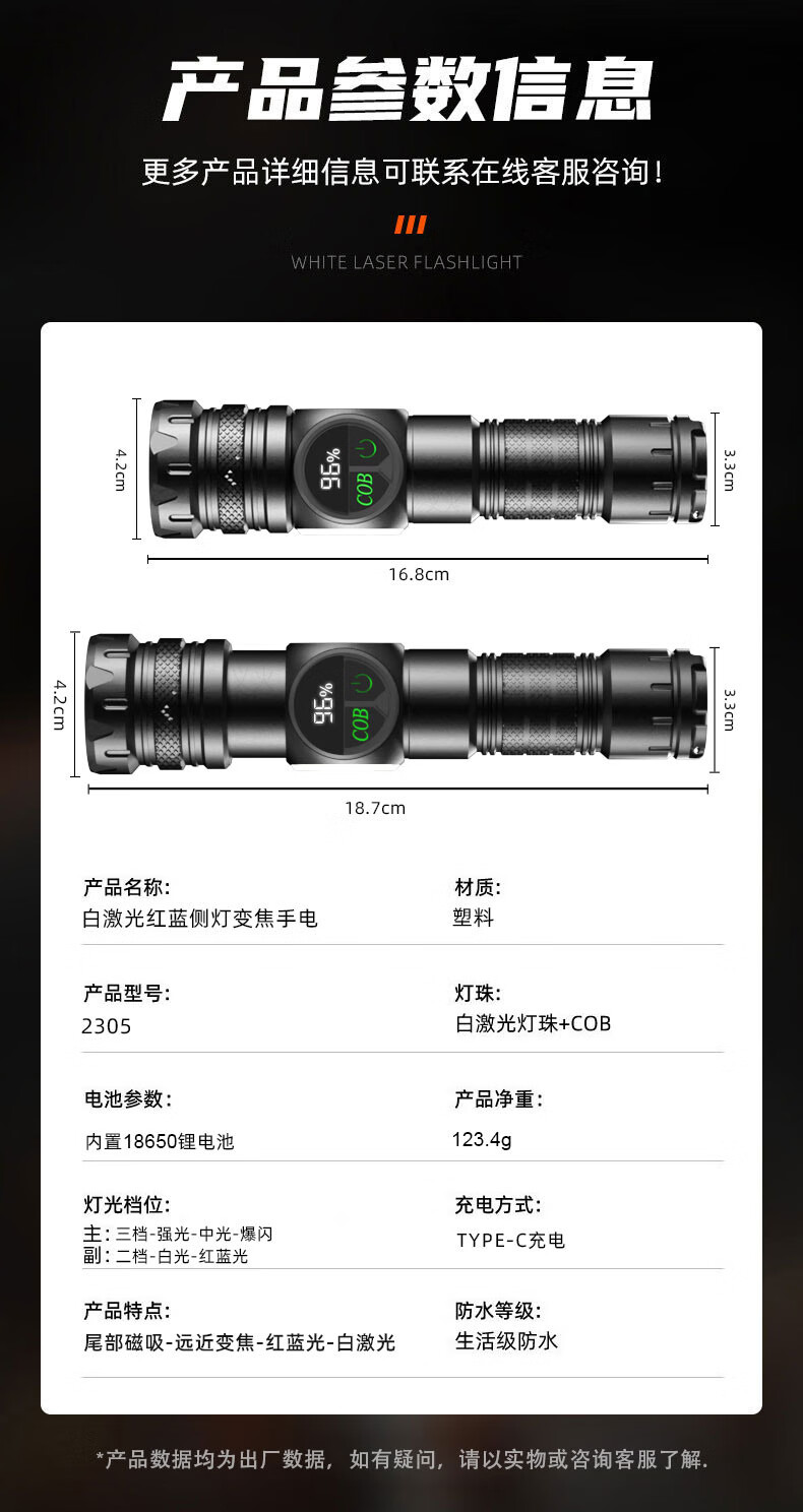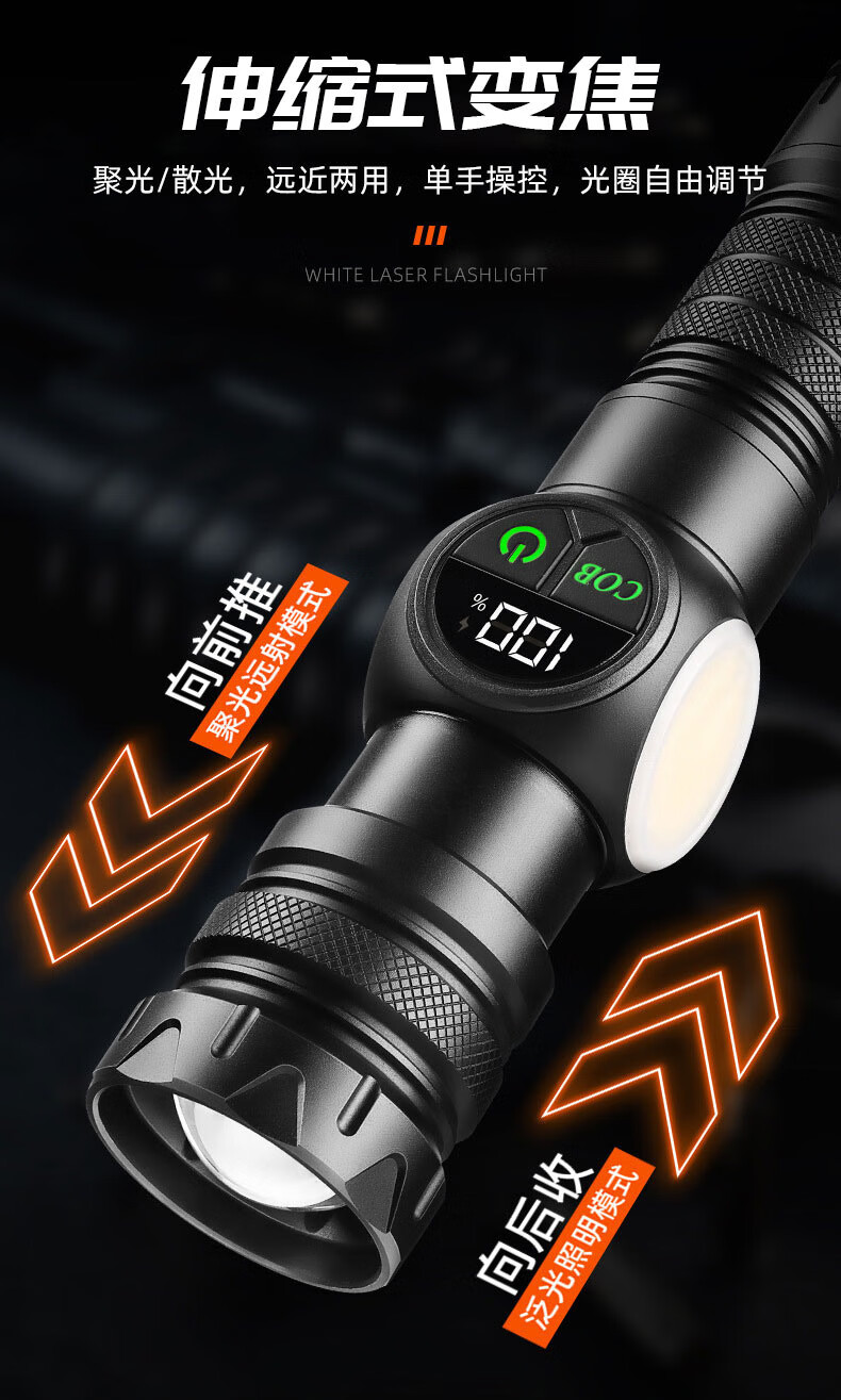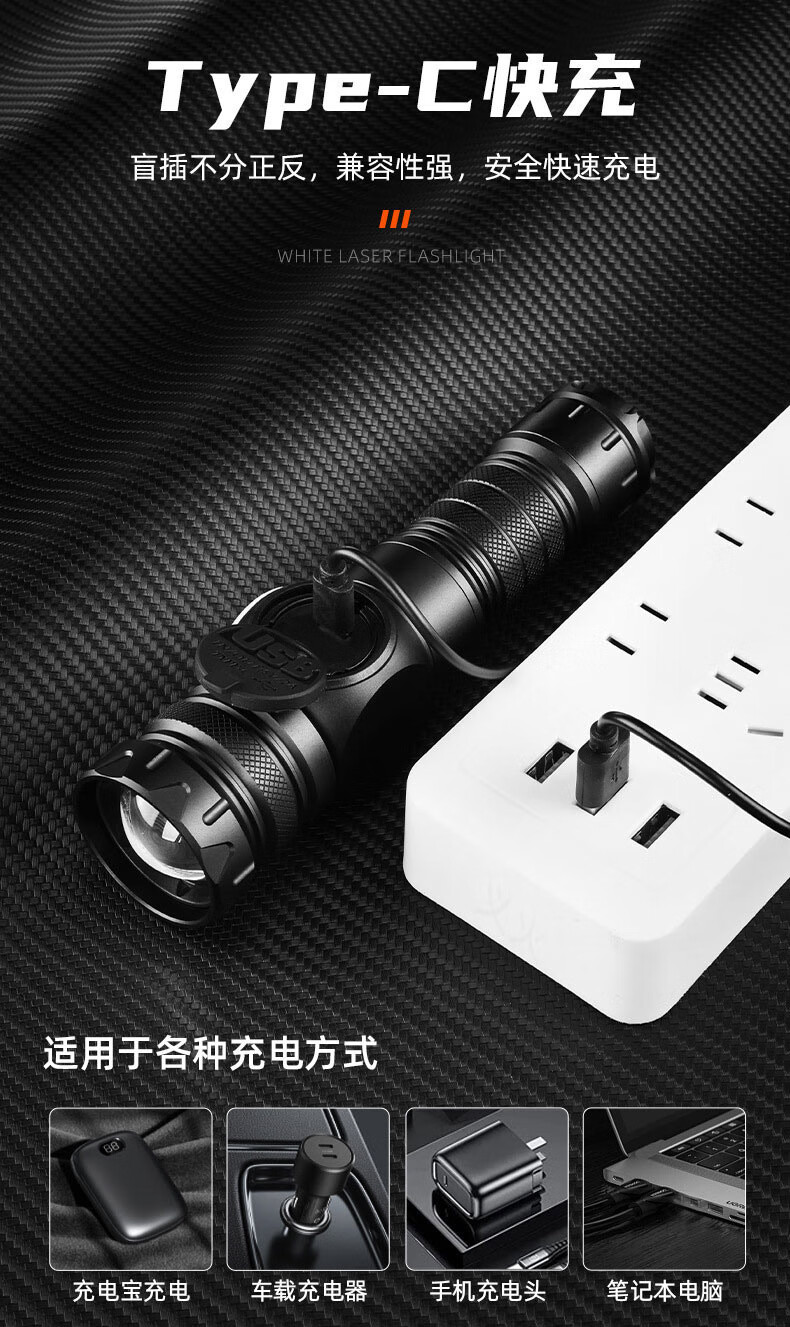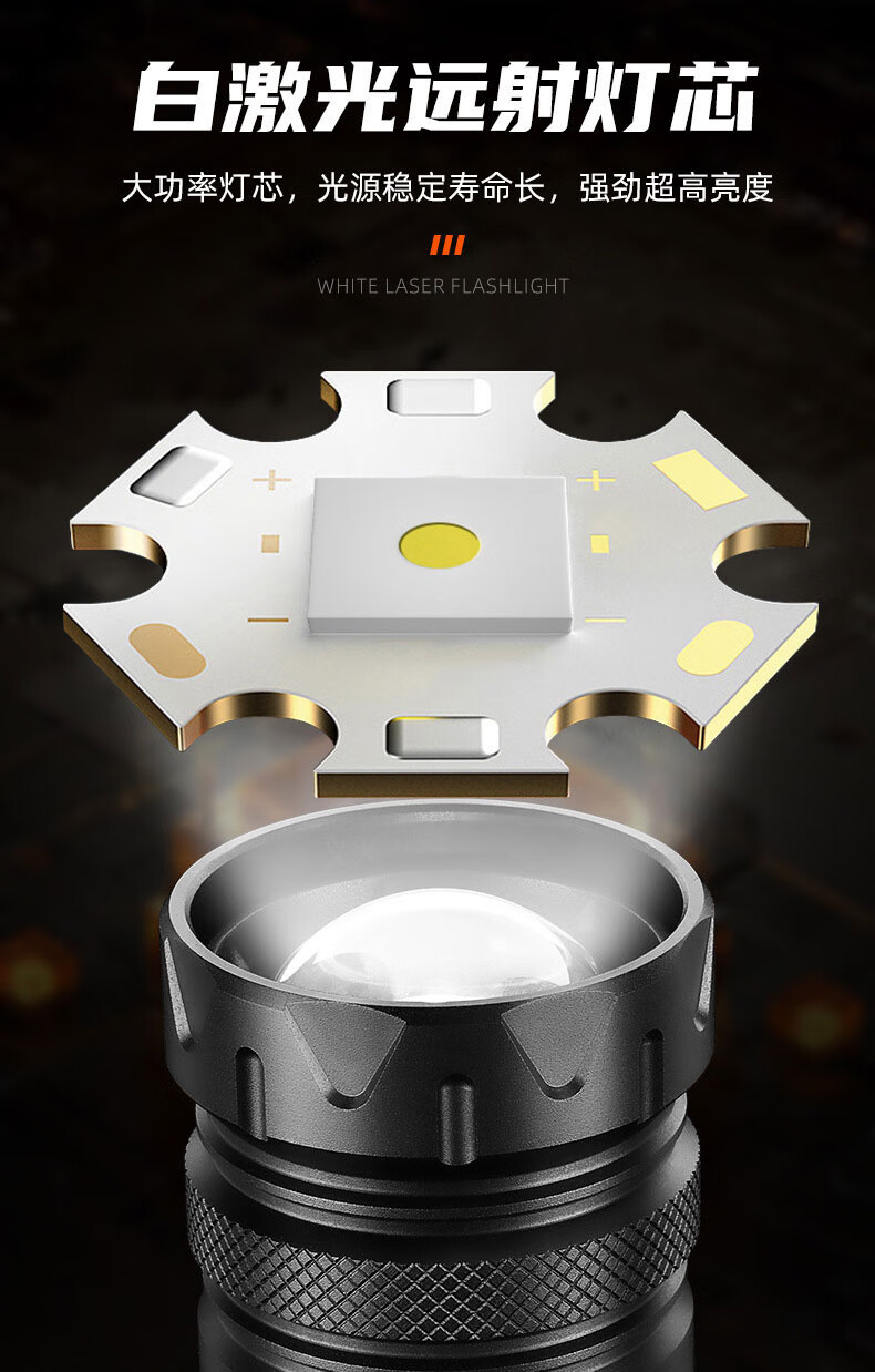悠梵萌农用手电筒白激光超亮远射强光超长续航军户外专用充电野外应急