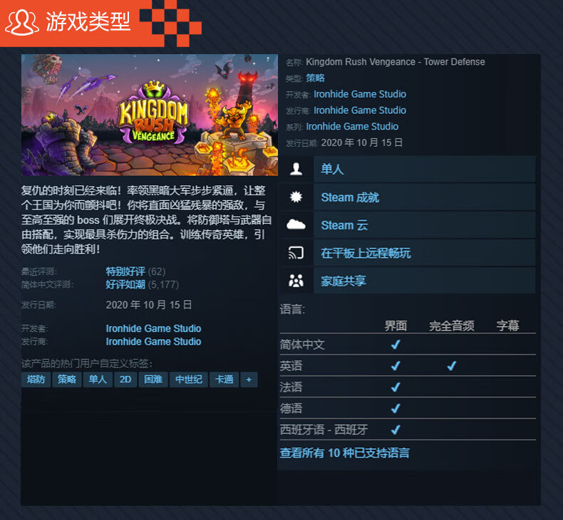 Steam游戏 王国保卫战 复仇 国区激活码CDKey PC正版游戏 标准版
