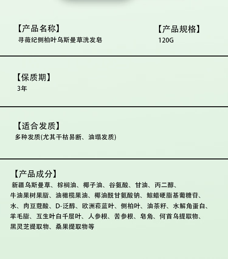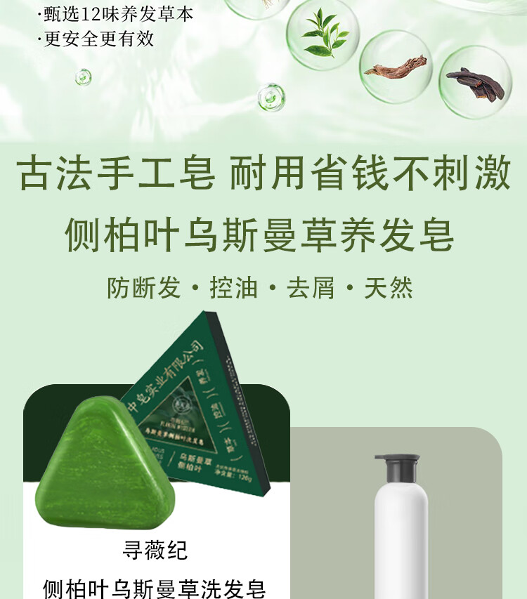 寻薇纪侧柏叶洗发皂乌斯曼草手工洗头皂何首乌中草药固发防断发去油去屑