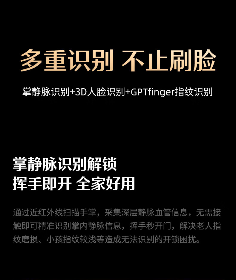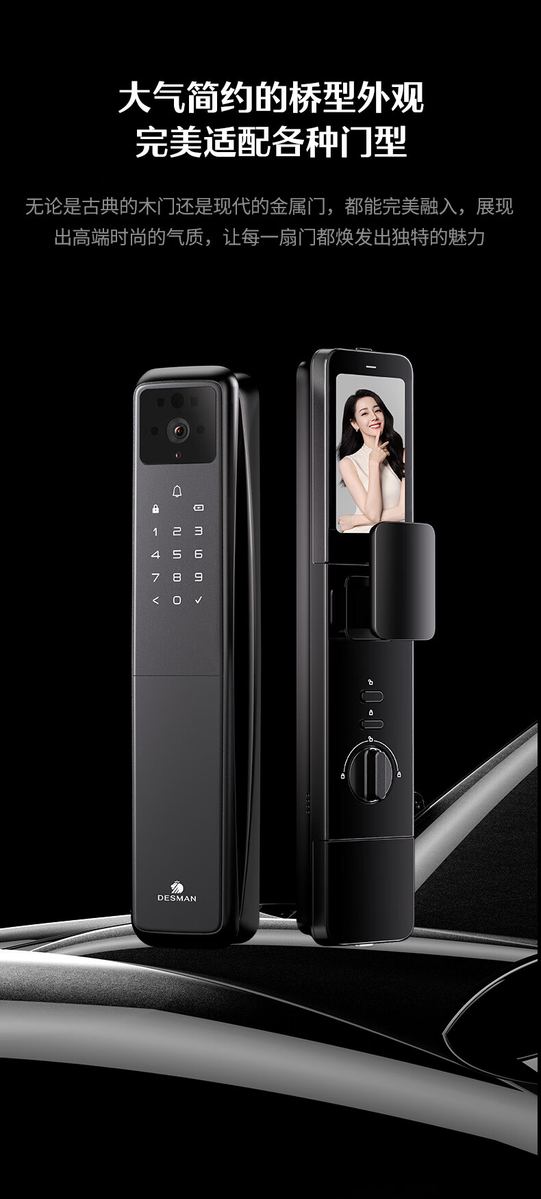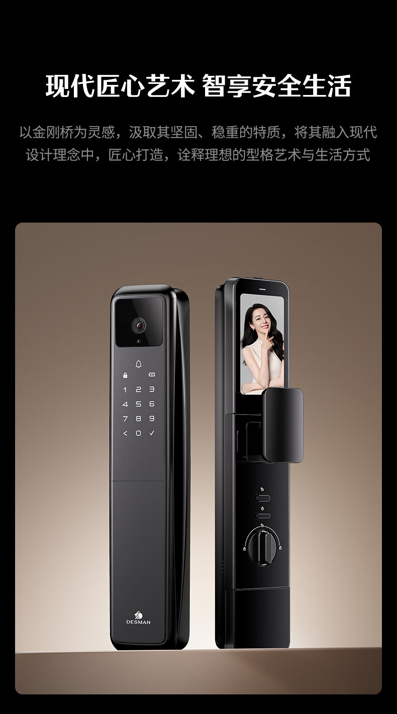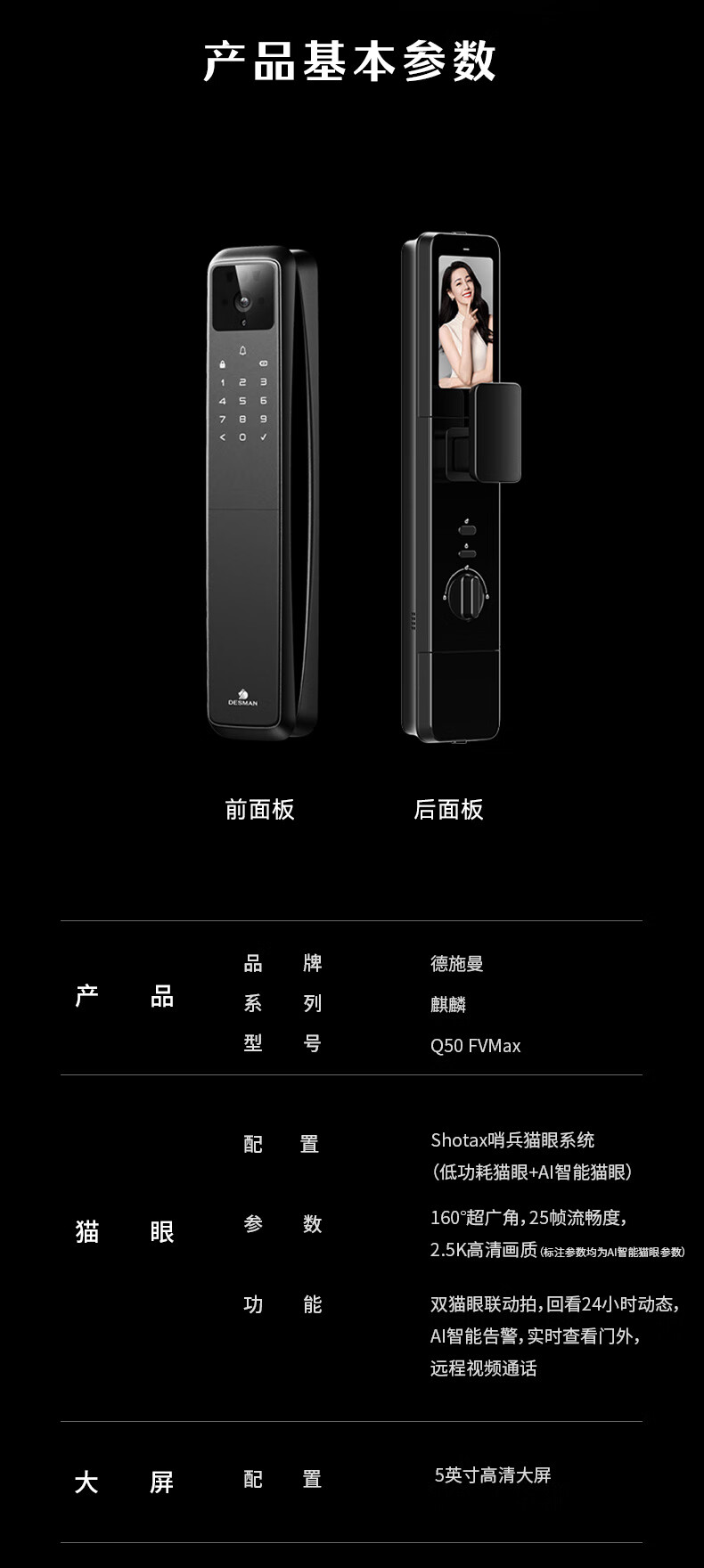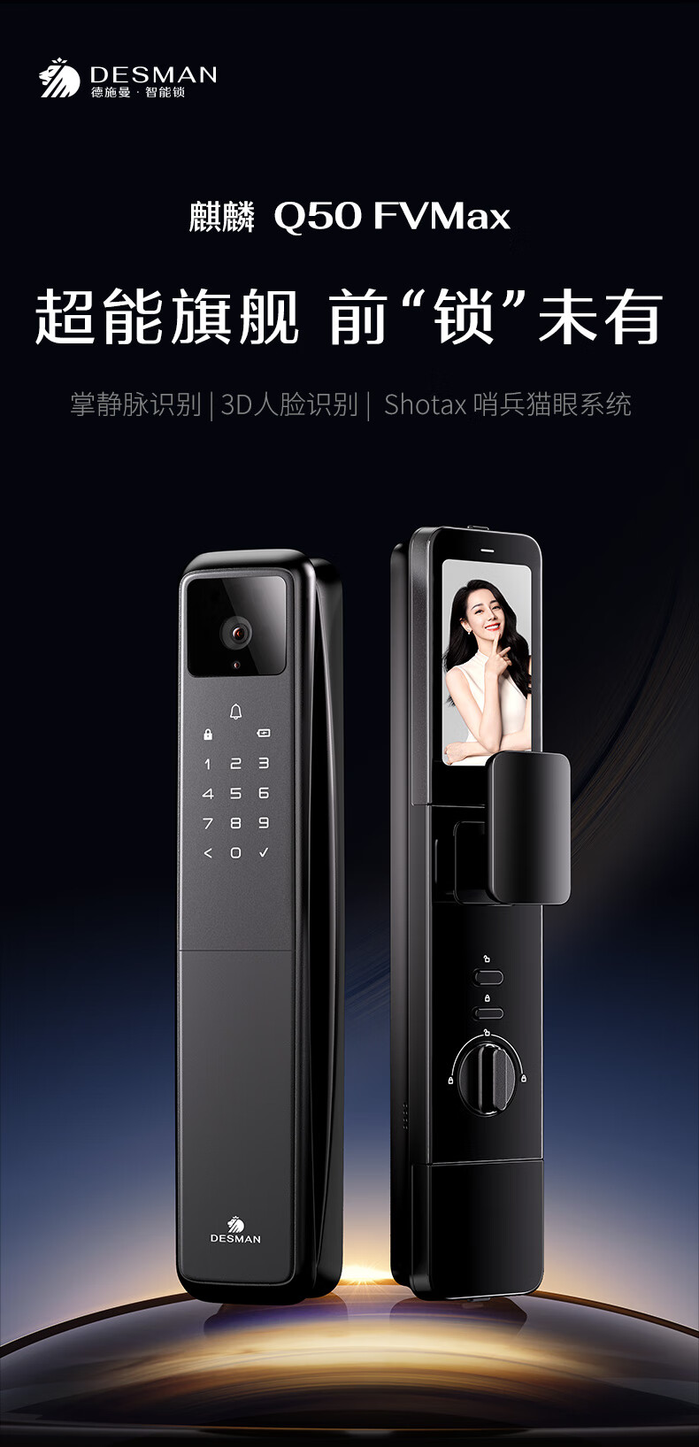 德施曼(DESMAN)智能门锁人脸掌静脉识别 哨兵可视猫眼大屏电子锁 麒麟Q50FVMax