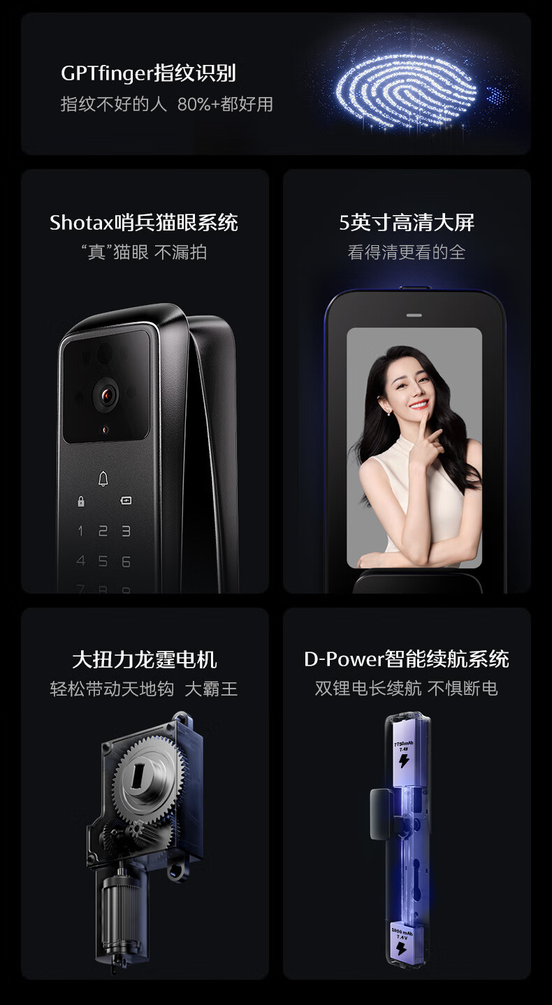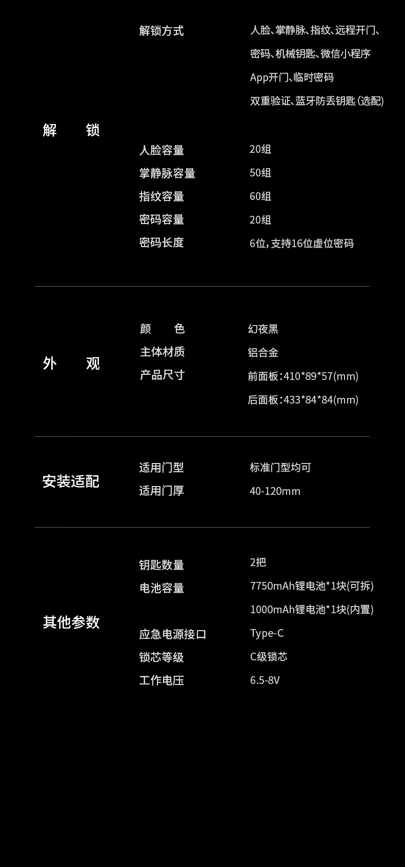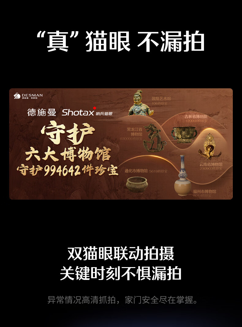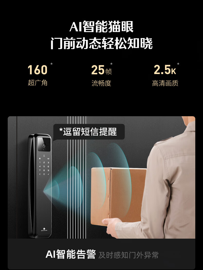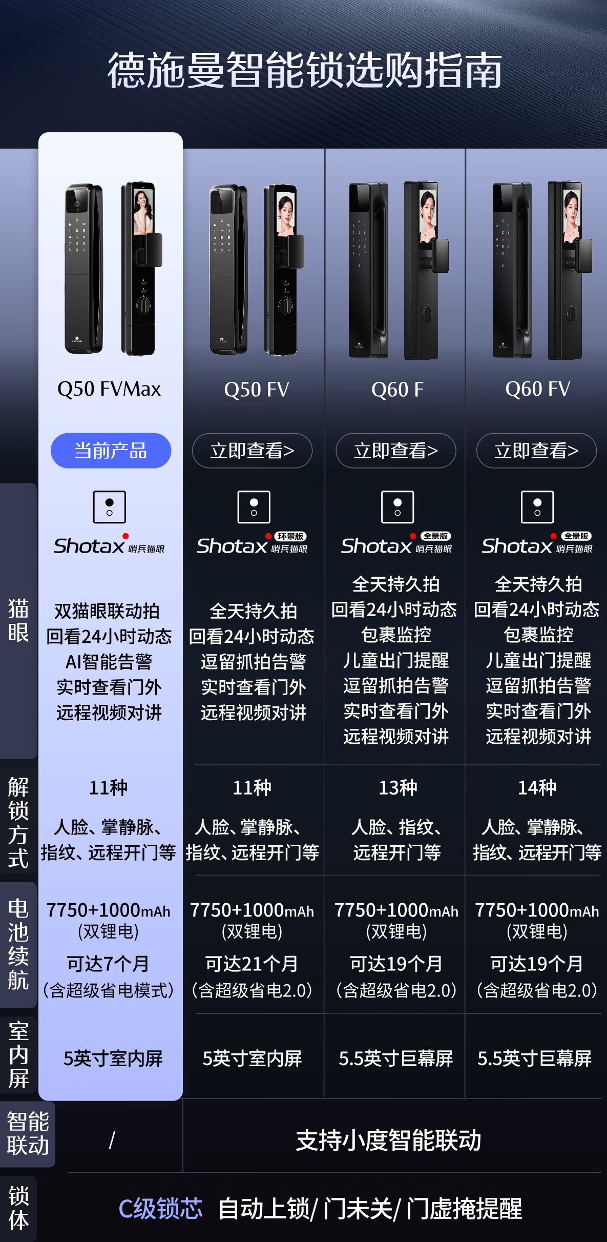 德施曼(DESMAN)智能门锁人脸掌静脉识别 哨兵可视猫眼大屏电子锁 麒麟Q50FVMax