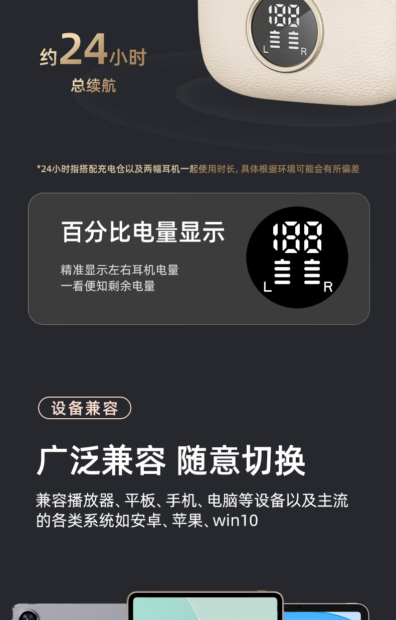无线蓝牙耳机J16B数显电量入耳式小巧便携高音质降噪耳机 黑色