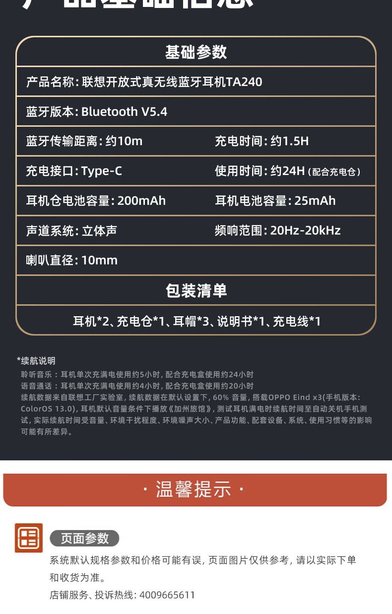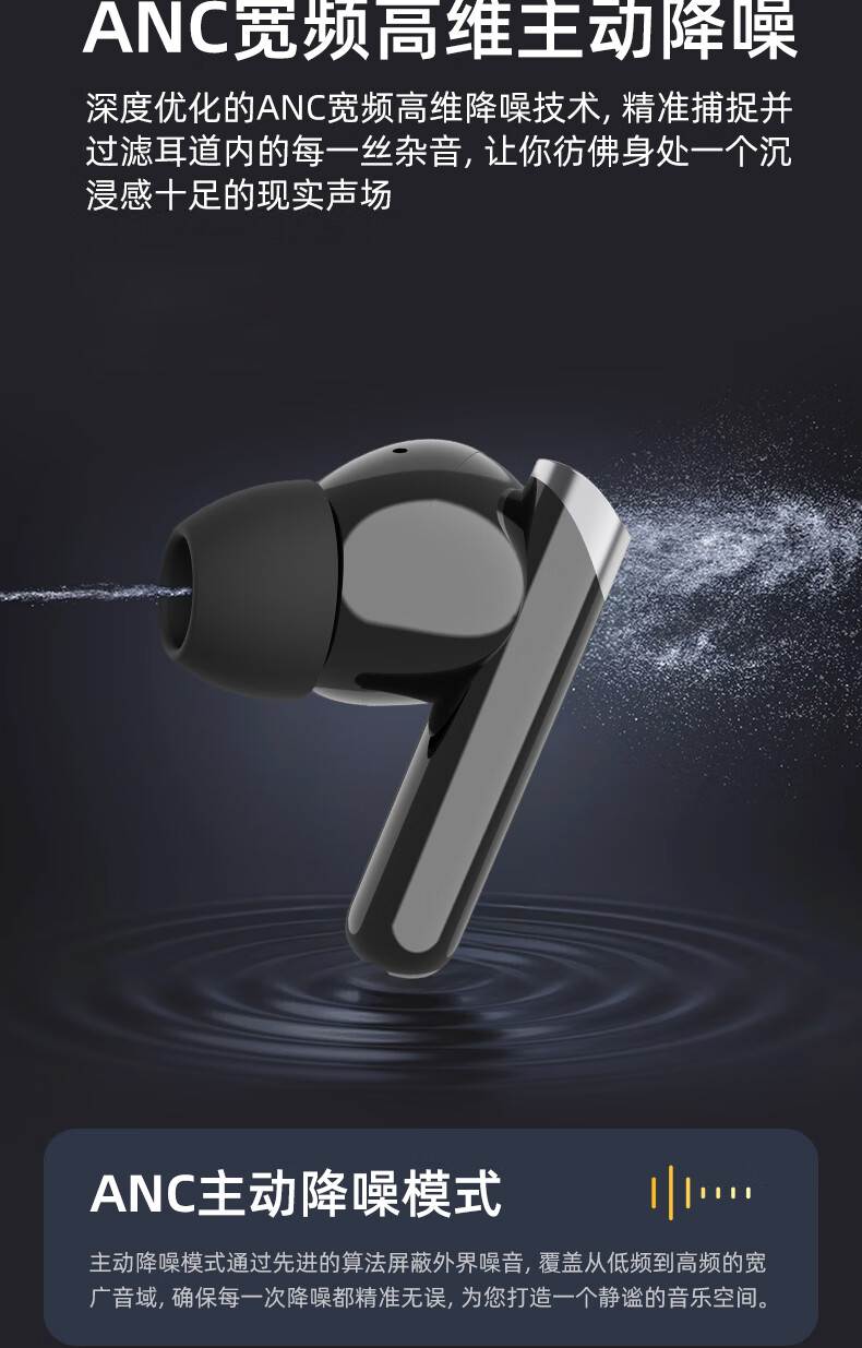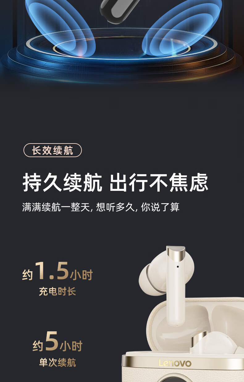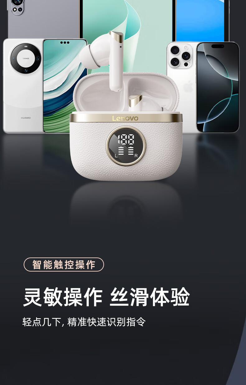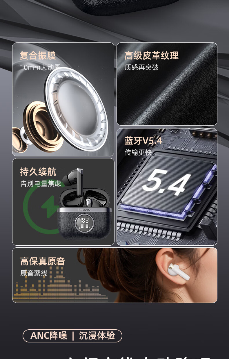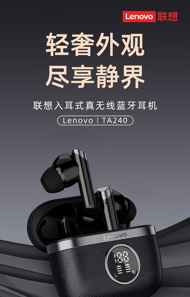联想(lenovo)蓝牙耳机2025新款ANC主动降噪入耳式蓝牙5.4音乐游戏运动数显无线耳机适用苹果华为小米手机TA240